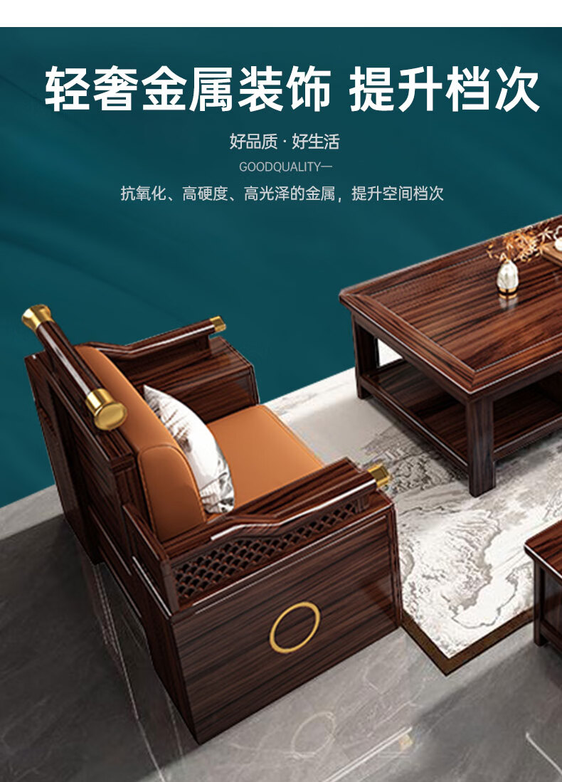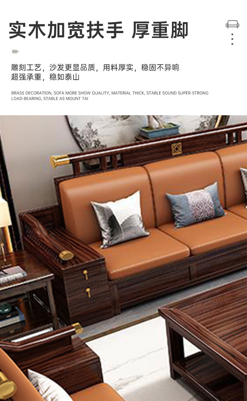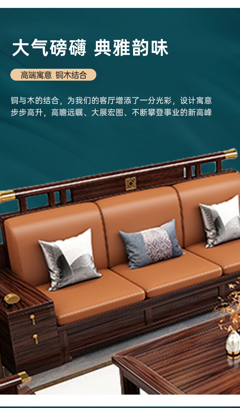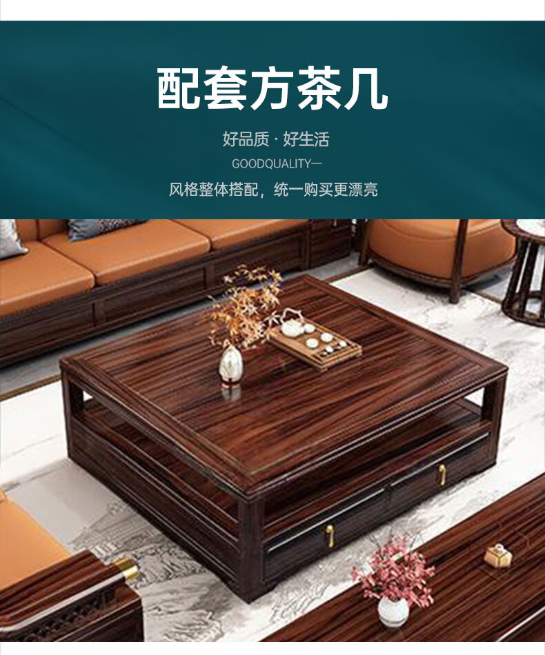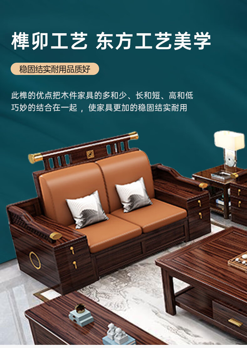 Zihua solid wood sofa, new Chinese style ebony wood single and double three-person combination, imperial concubine winter and summer dual-use living room furniture LY1002# 1+2+3+ coffee table (with drawer), storage model, cat scratching leather cushion