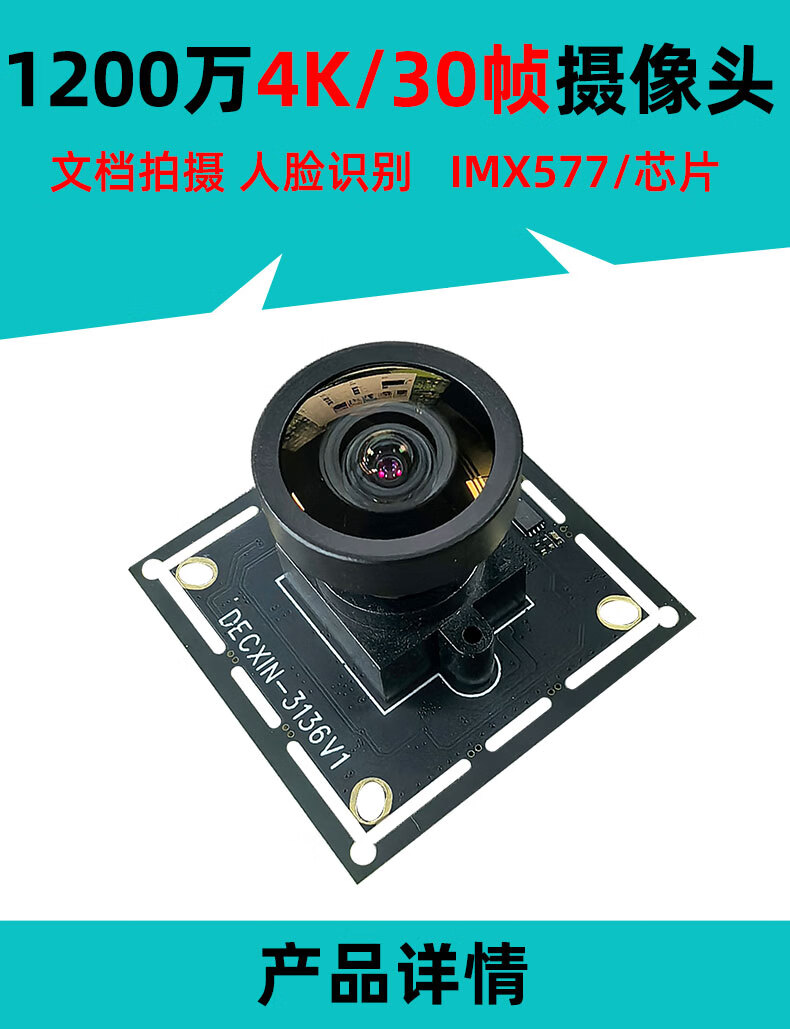 Imx577 high-definition 12 million 4K USB camera module industrial camera video conferencing without distortion and driver-free 150 degrees - with distortion