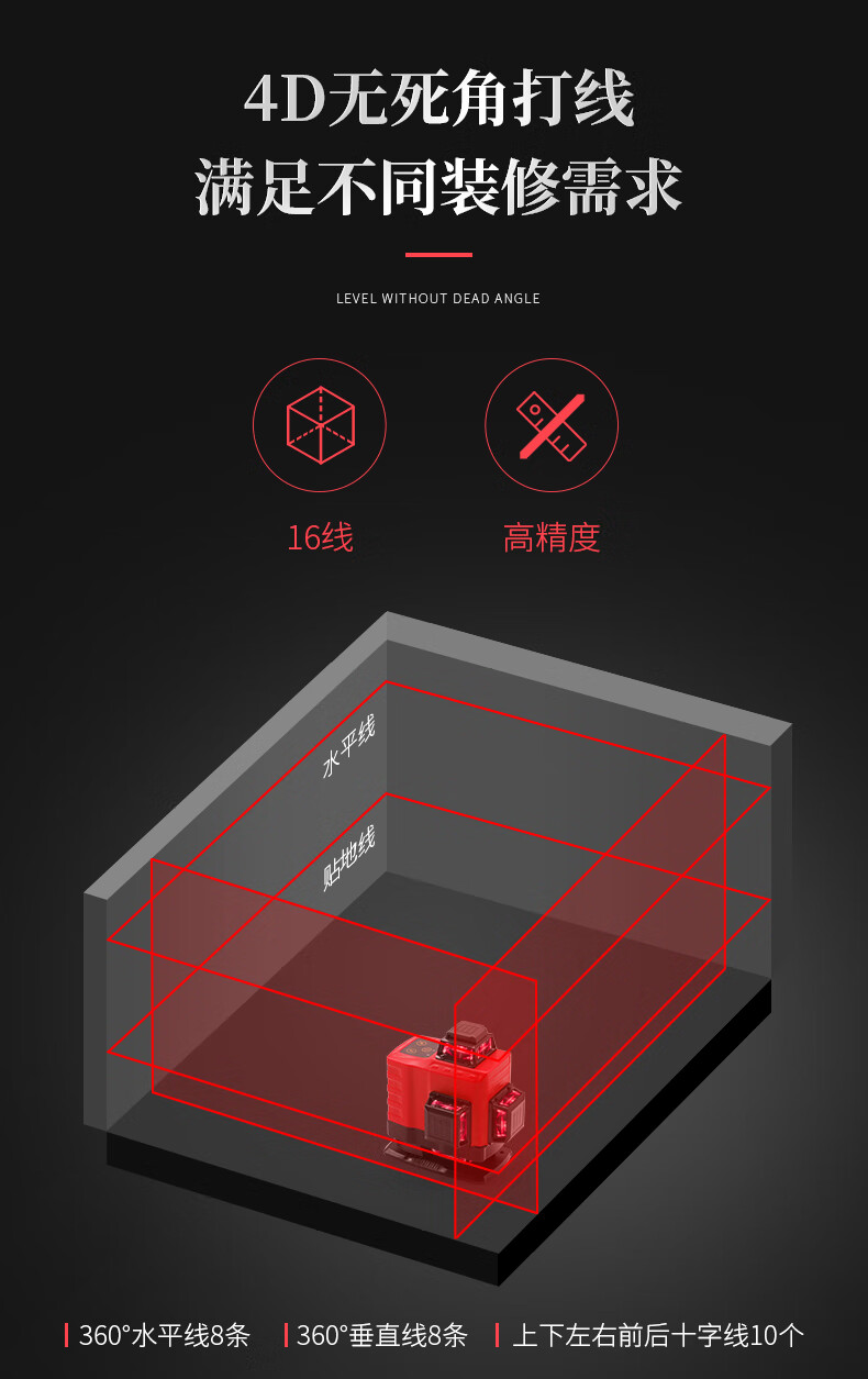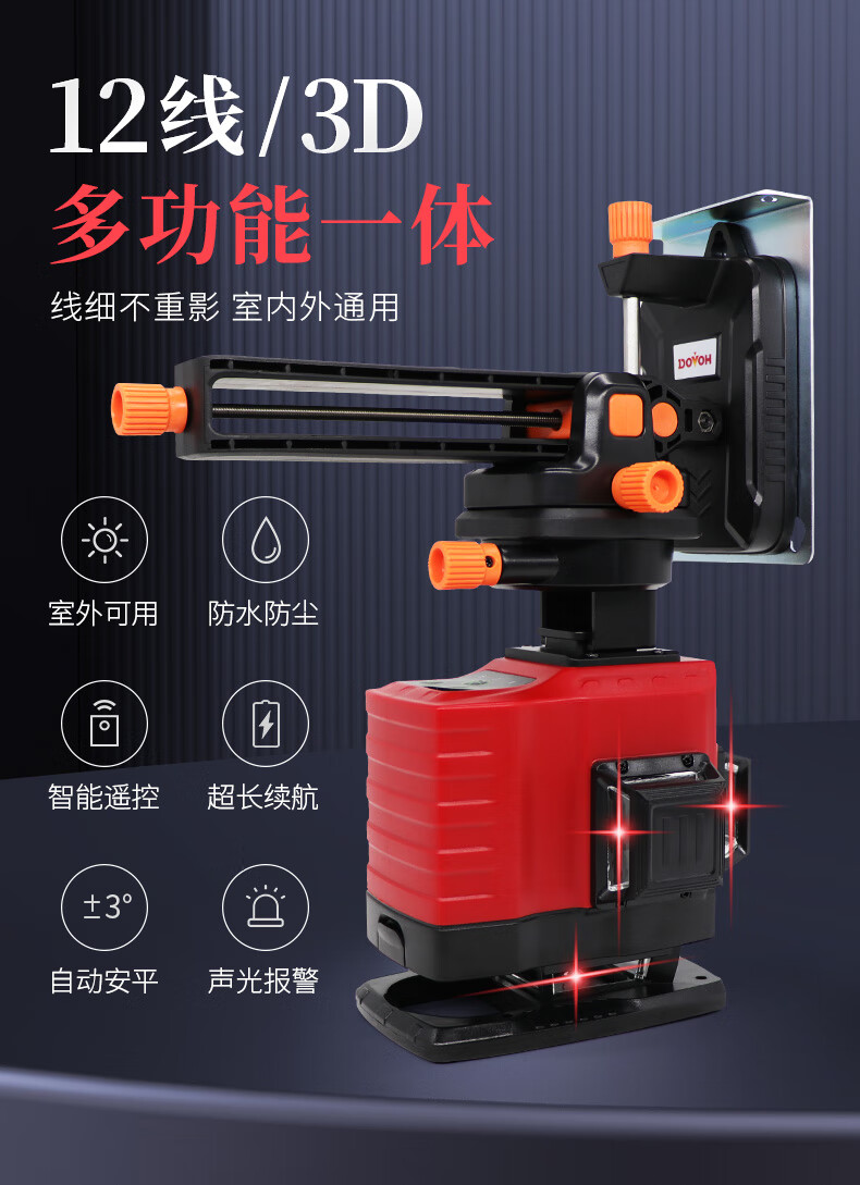 Duwei W2-360R Duwei level red light 8-line line wall-building artifact high-precision strong light thin line line automatic adjustment 4 lines_line red light outdoor dedicated single machine_gold