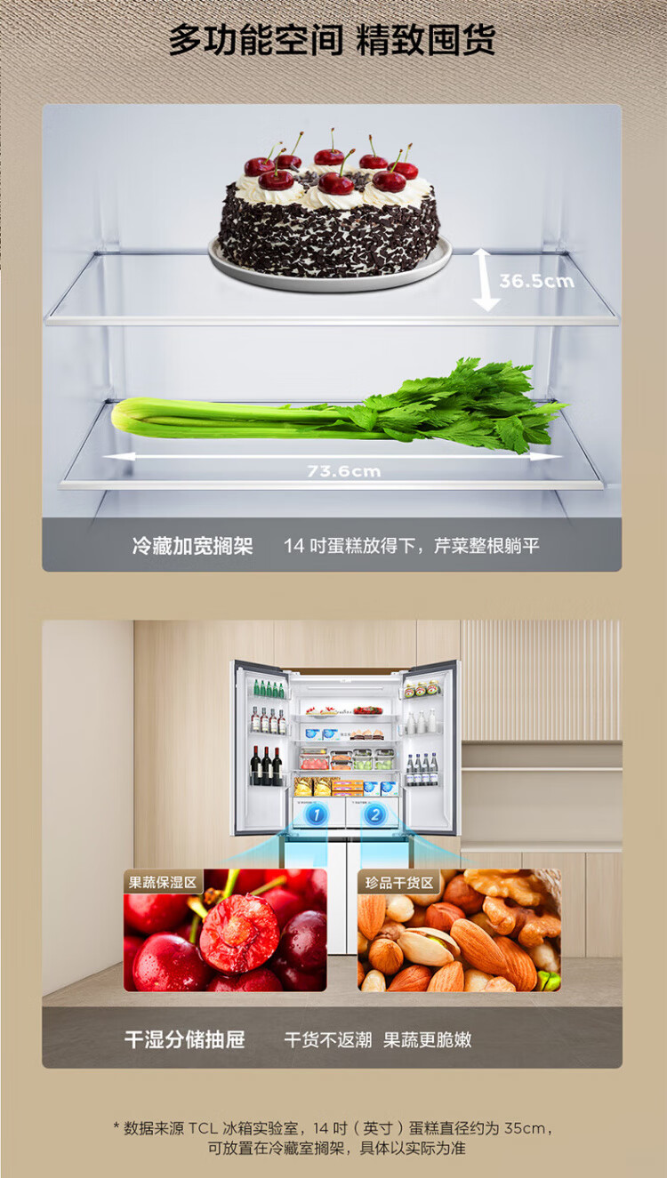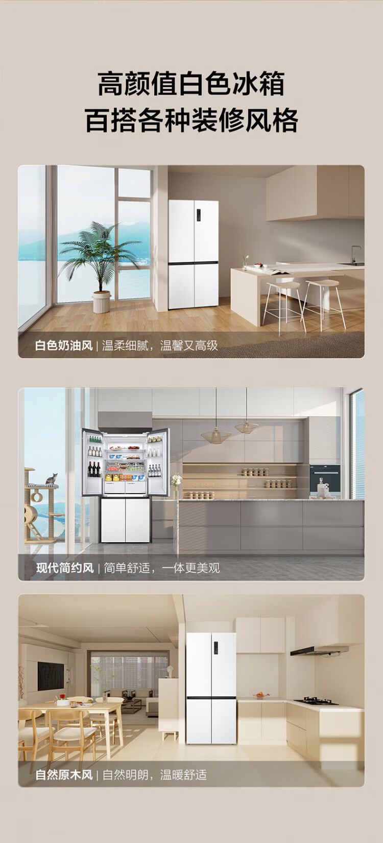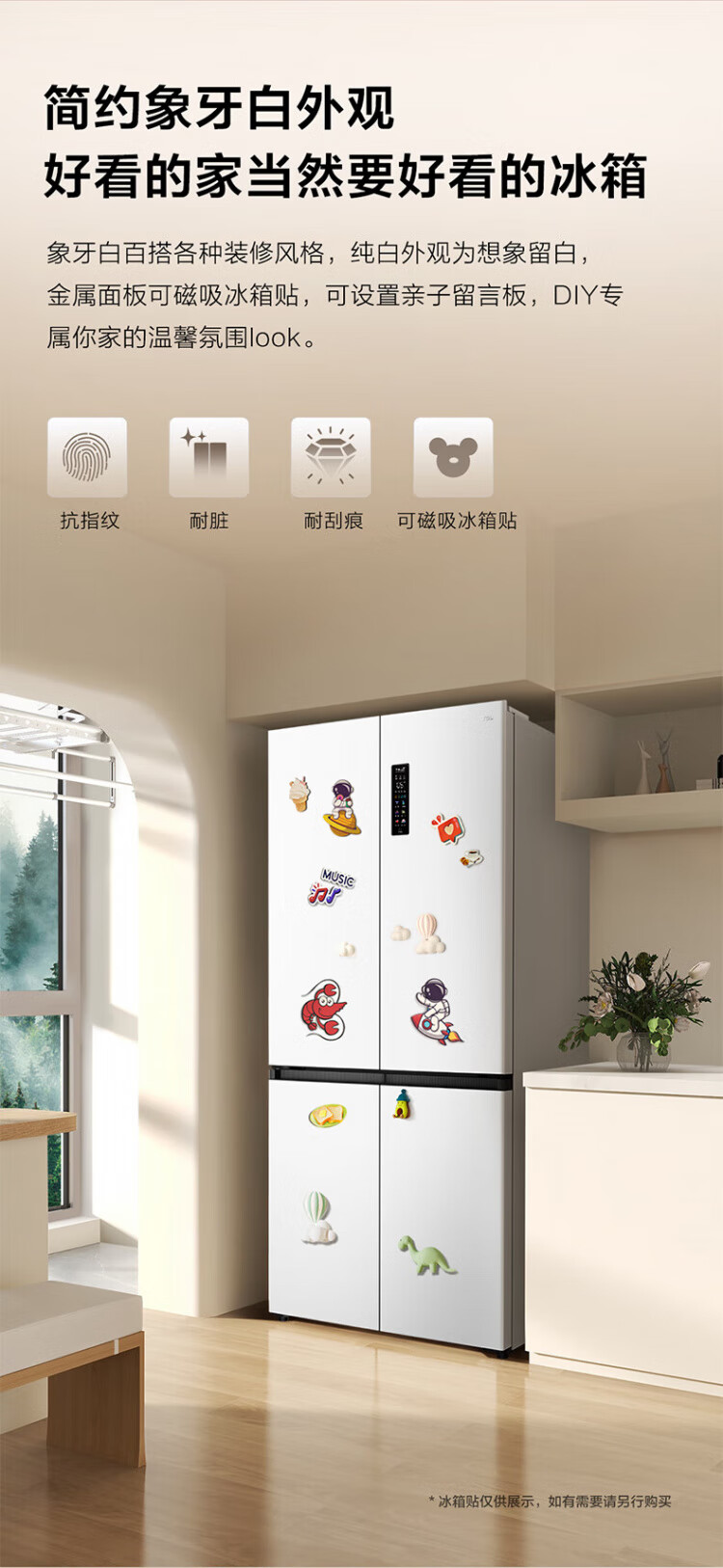 TCL Household Cross Four Door 1.7/1.9 Meter High First Level Energy Efficiency Air Cooling Dual Cycle System Flat-Inset Large Capacity Refrigerator Ivory White 409L Cross Four Door First Level Air Cooling Dual Cycle