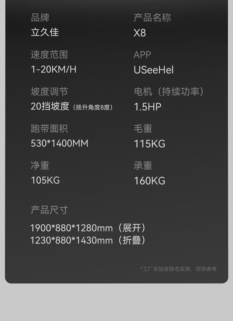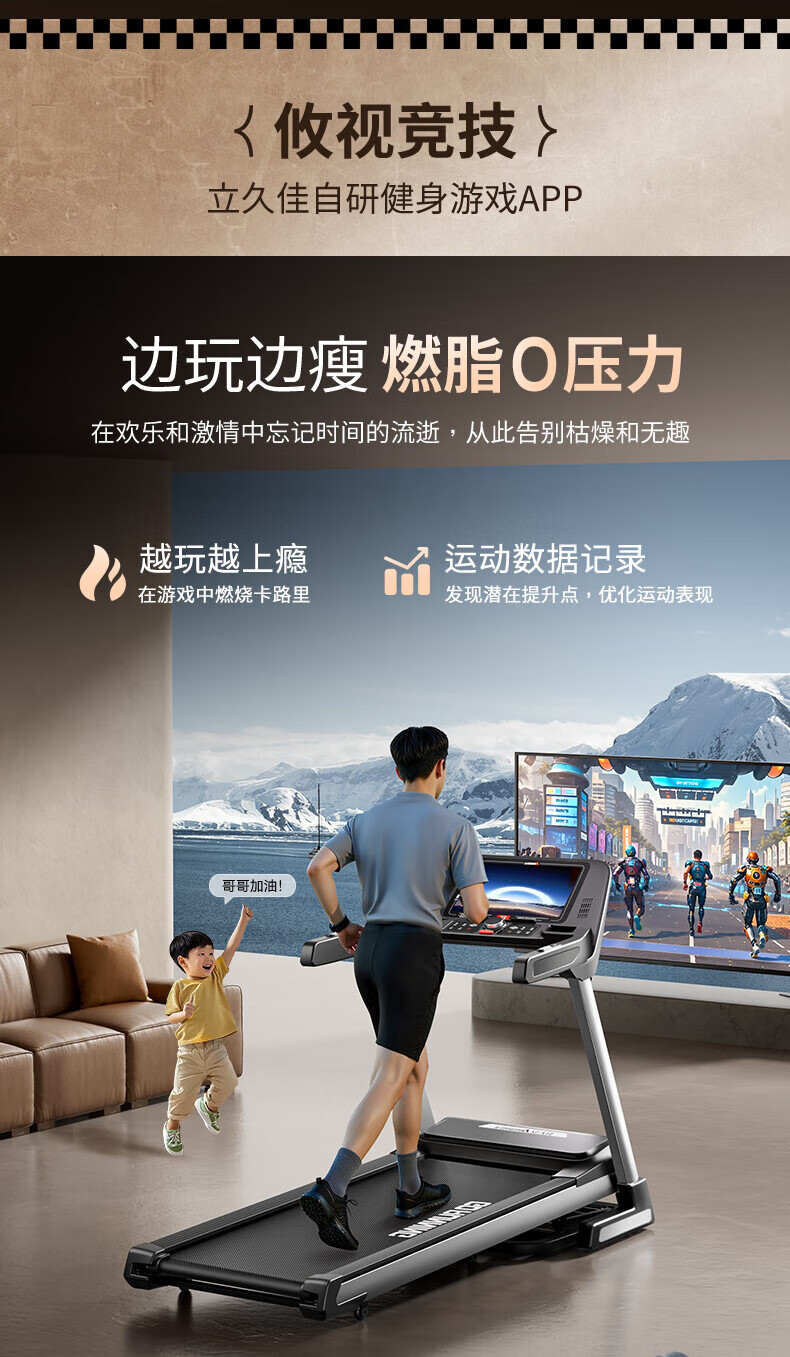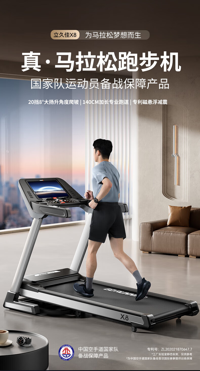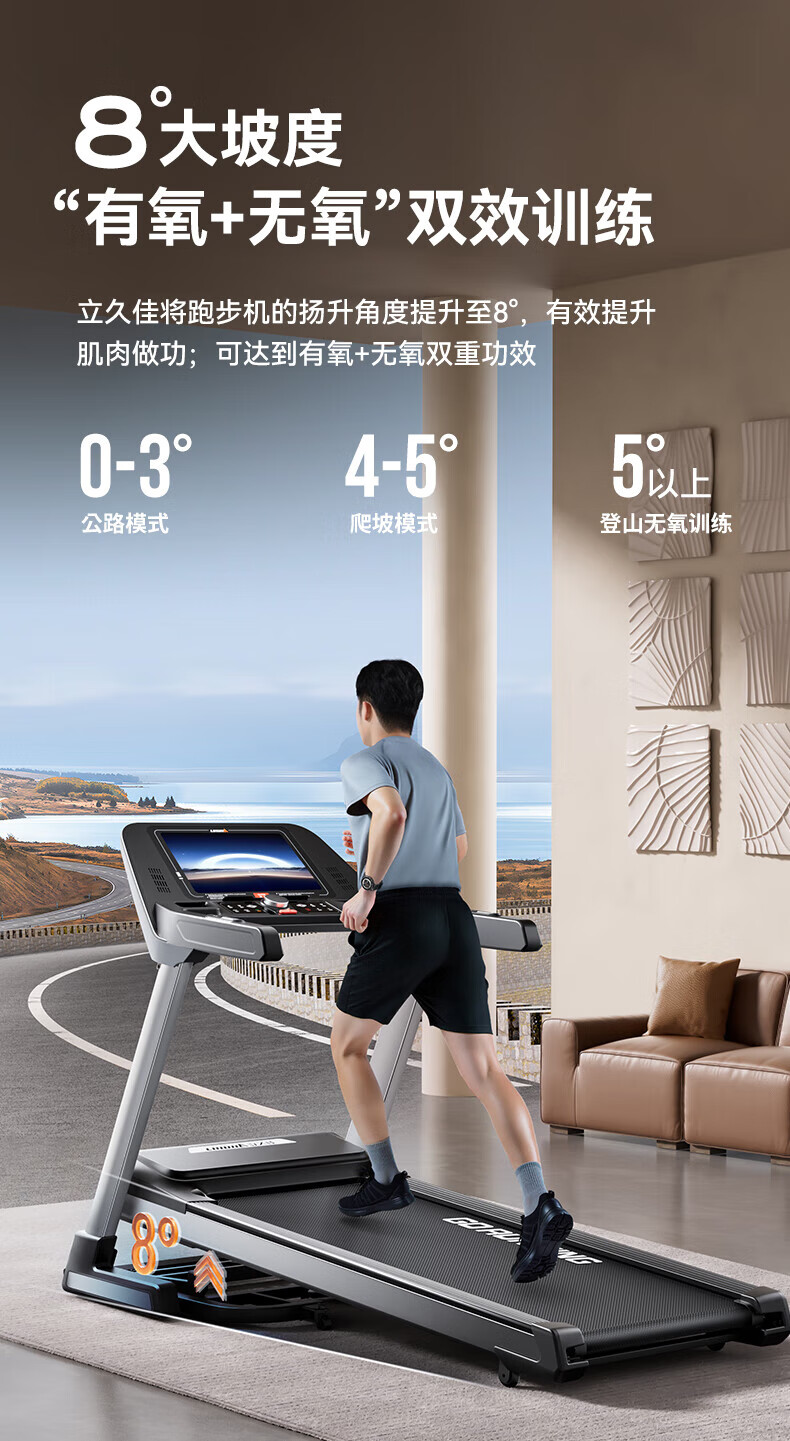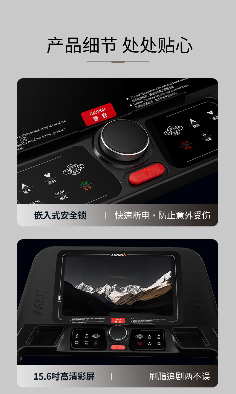 Lijiujia treadmill, foldable high-end smart gym climbing equipment for home use, 15.6-inch multi-function, 15.6-inch color screen, multi-function/20-speed electric slope
