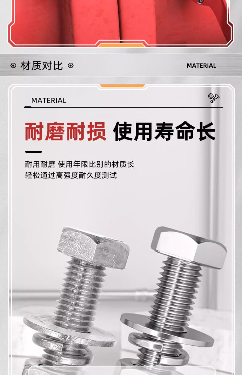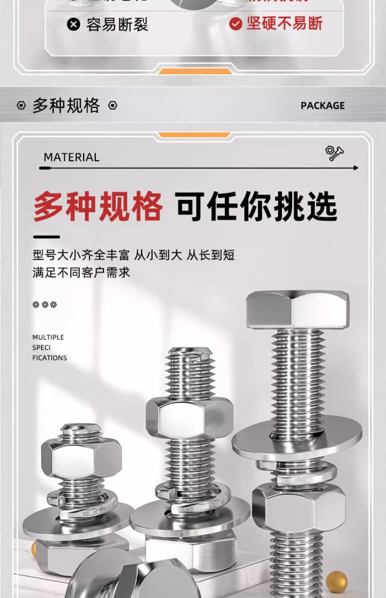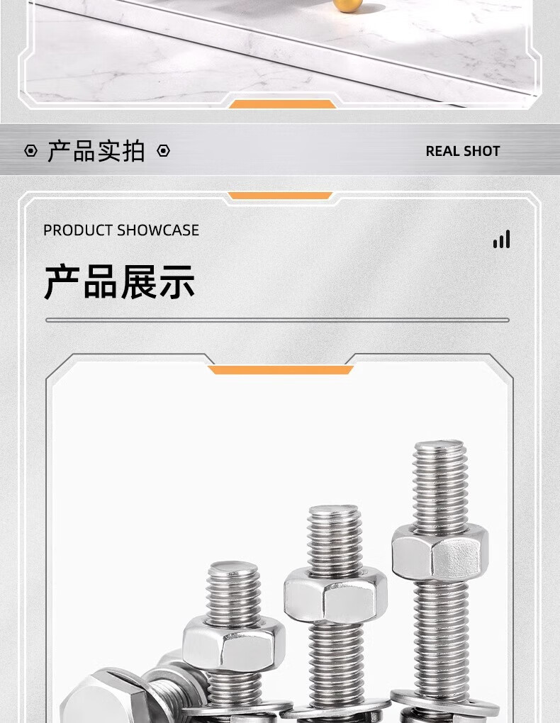 Tianzhuo Hardware 201 stainless steel external hexagonal bolt and nut set screw flat elastic washer combination M6M8M10-M20mm M18*200 half thread-1 set