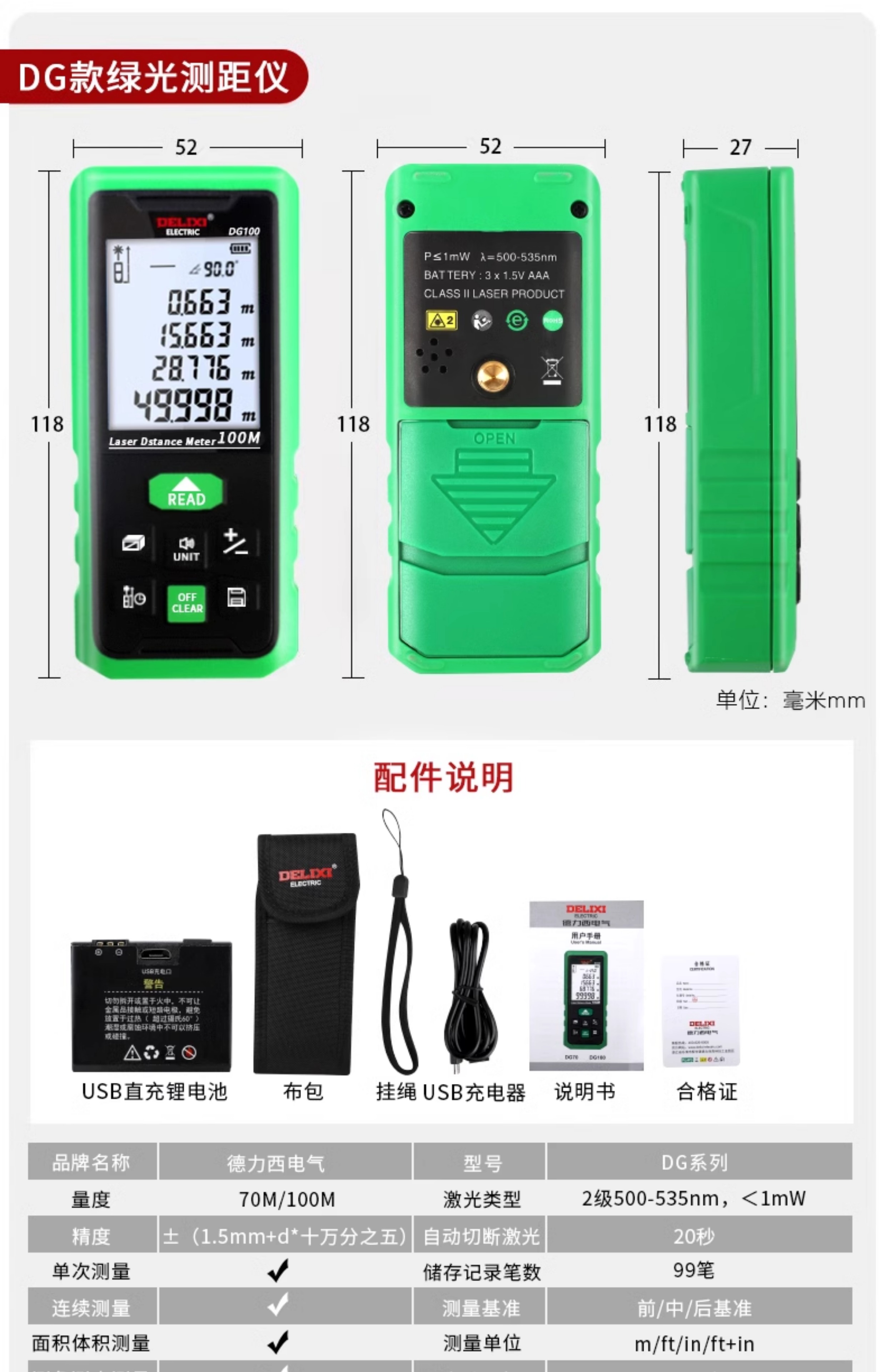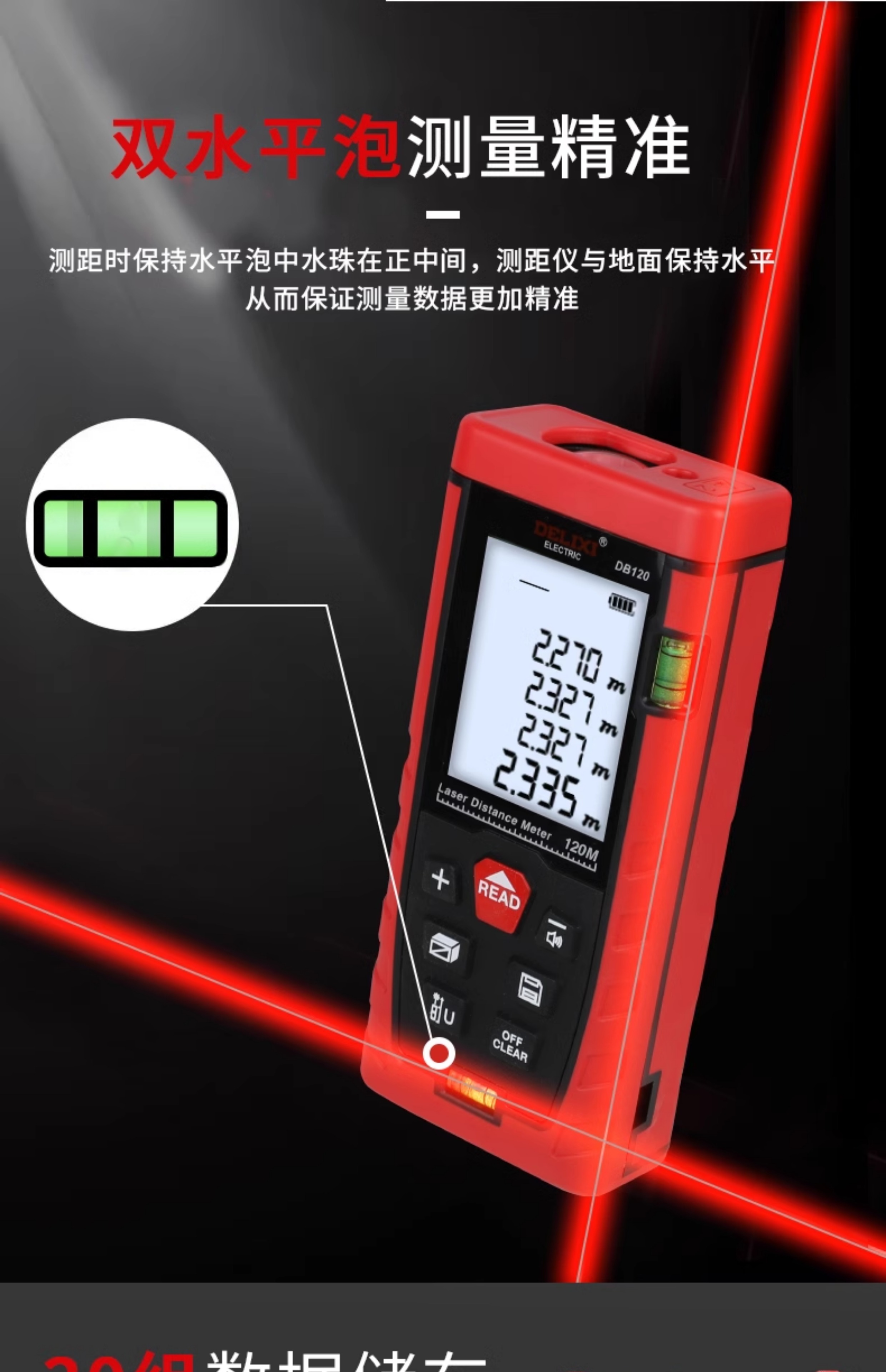 Delixi laser rangefinder infrared line measuring instrument room measuring instrument electronic ruler high-precision level handheld artifact light gray