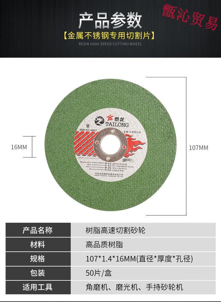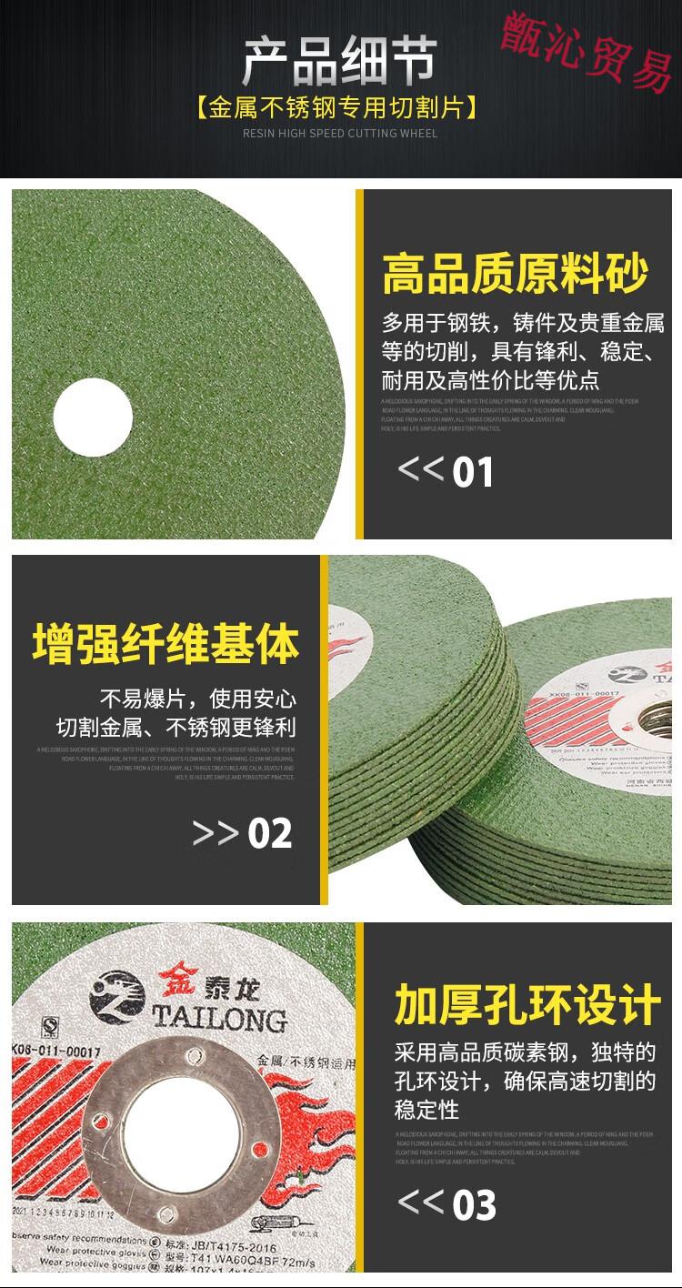 Jintailong 100 angle grinder cutting blade stainless steel metal grinding wheel grinding wheel polishing machine saw blade Jintailong green sheet 107*1.4*1625 pieces