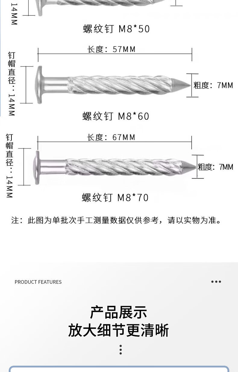 Bingyu galvanized invisible expansion anti-theft nails threaded nails 8*50 (about 2350 pieces in a box of 15 bags)