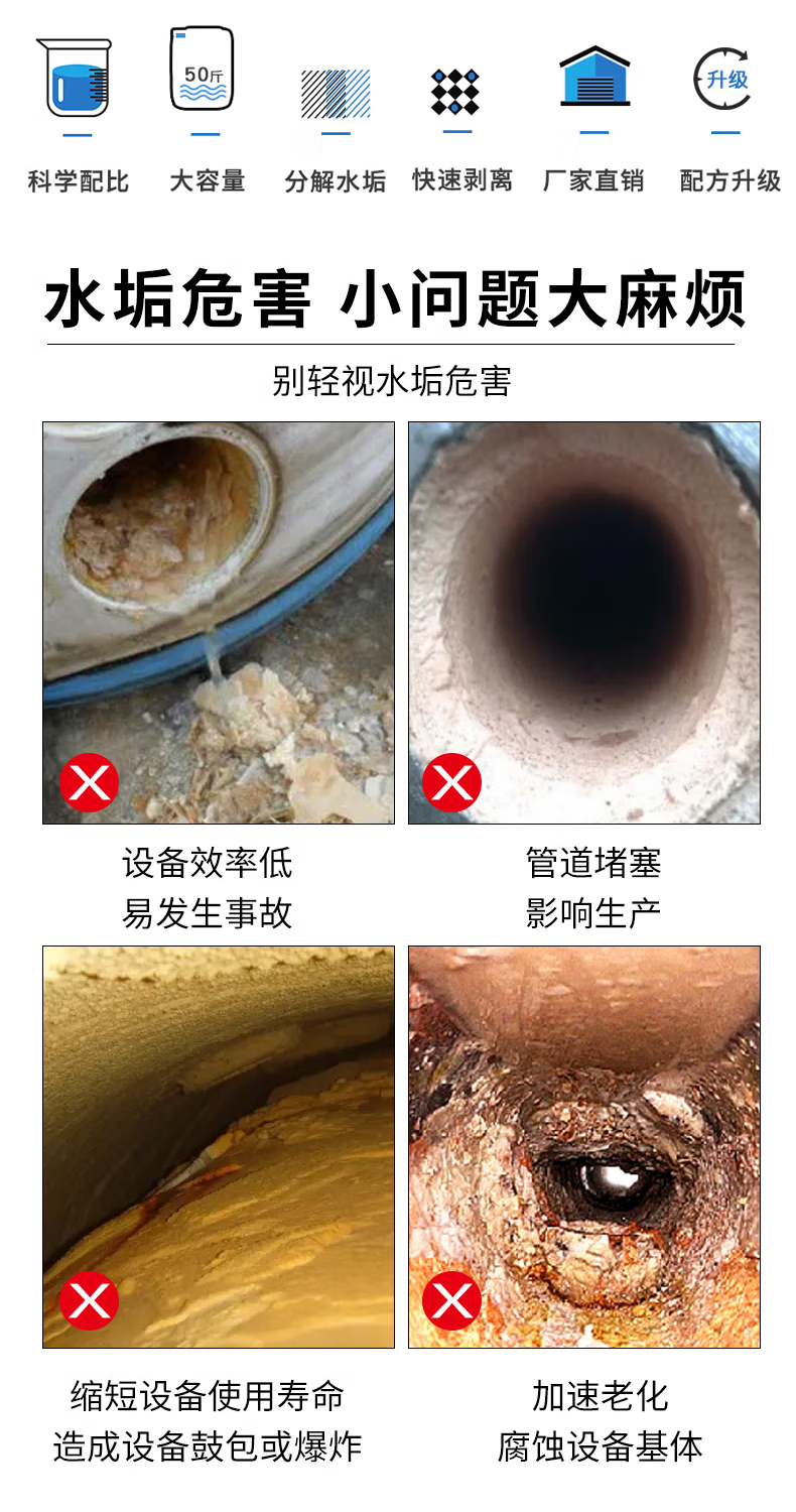 Boiler descaling agent for cleaning industrial pipes, solar water heaters, rust and powerful descaling special cleaning artifact 2.6kg boiler descaling agent 1 barrel