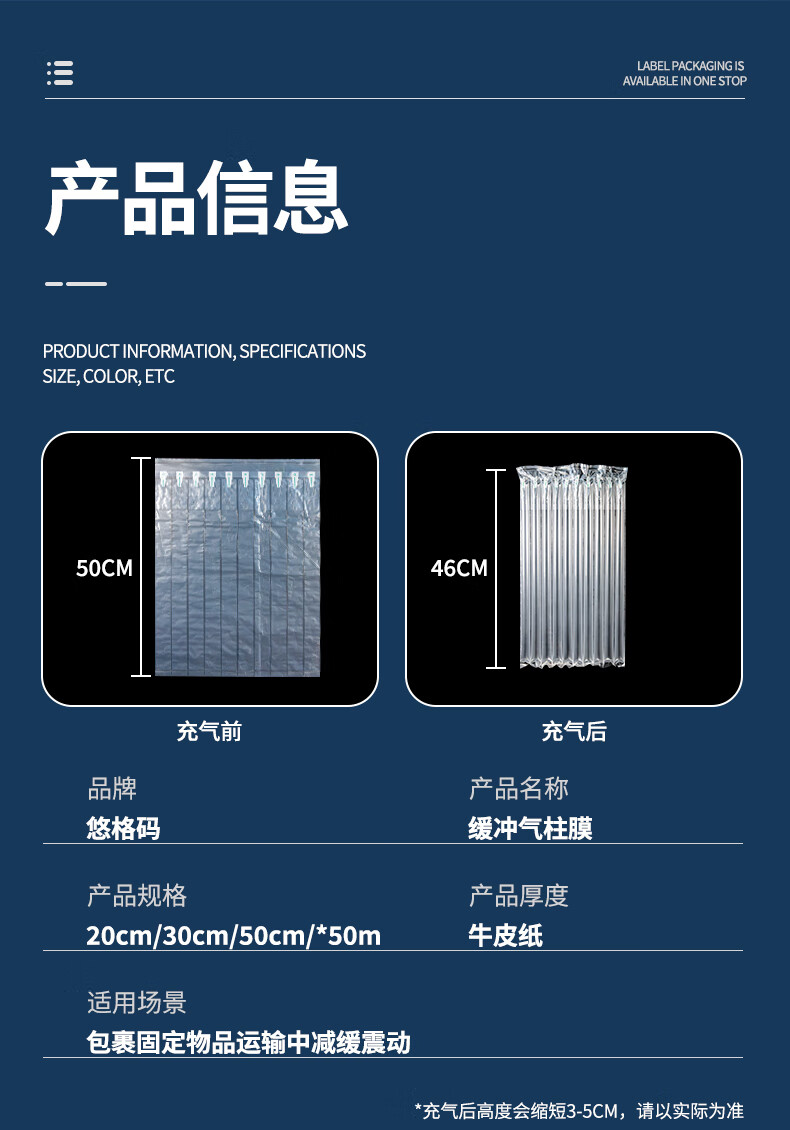 Yuge code air column bag roll material buffer inflatable bag express packaging shock-proof and anti-fall inflatable column ultra-thick air pump 20cm*50m