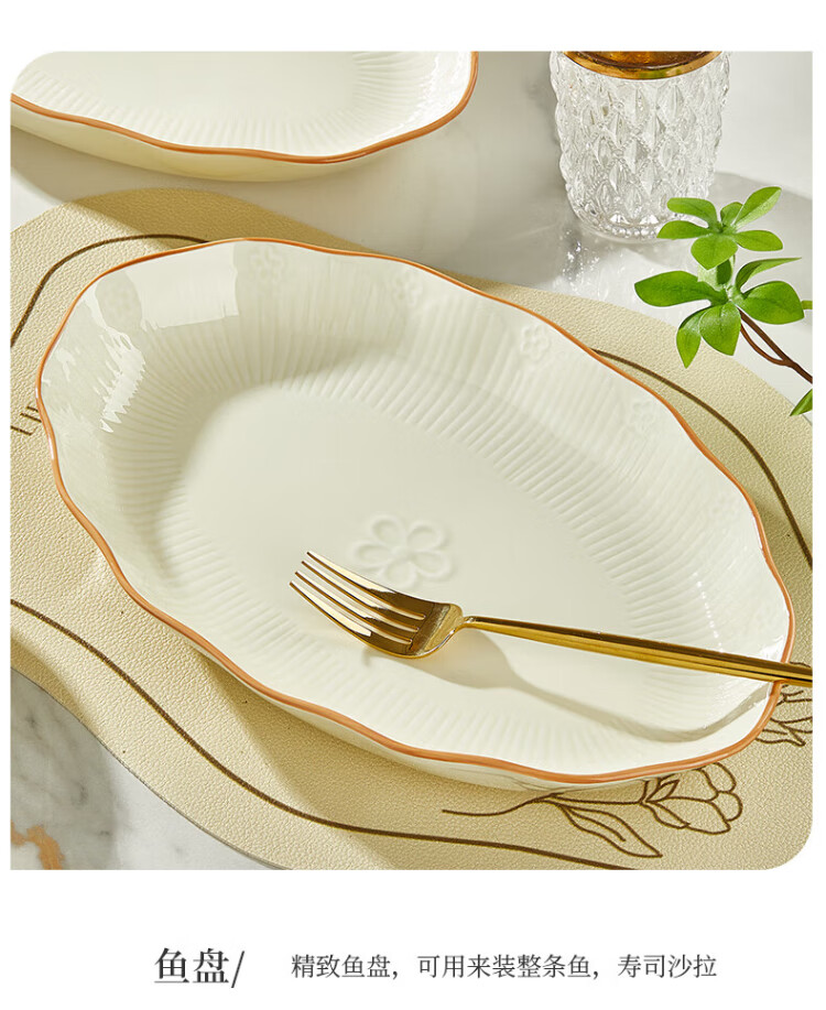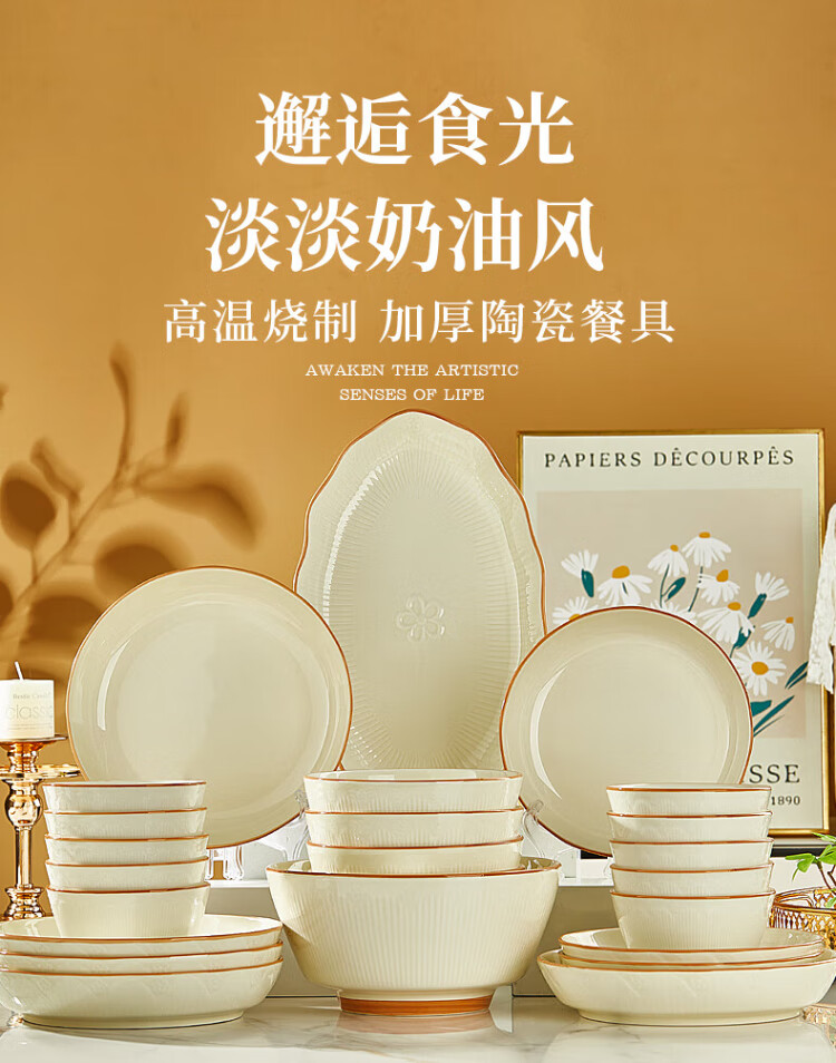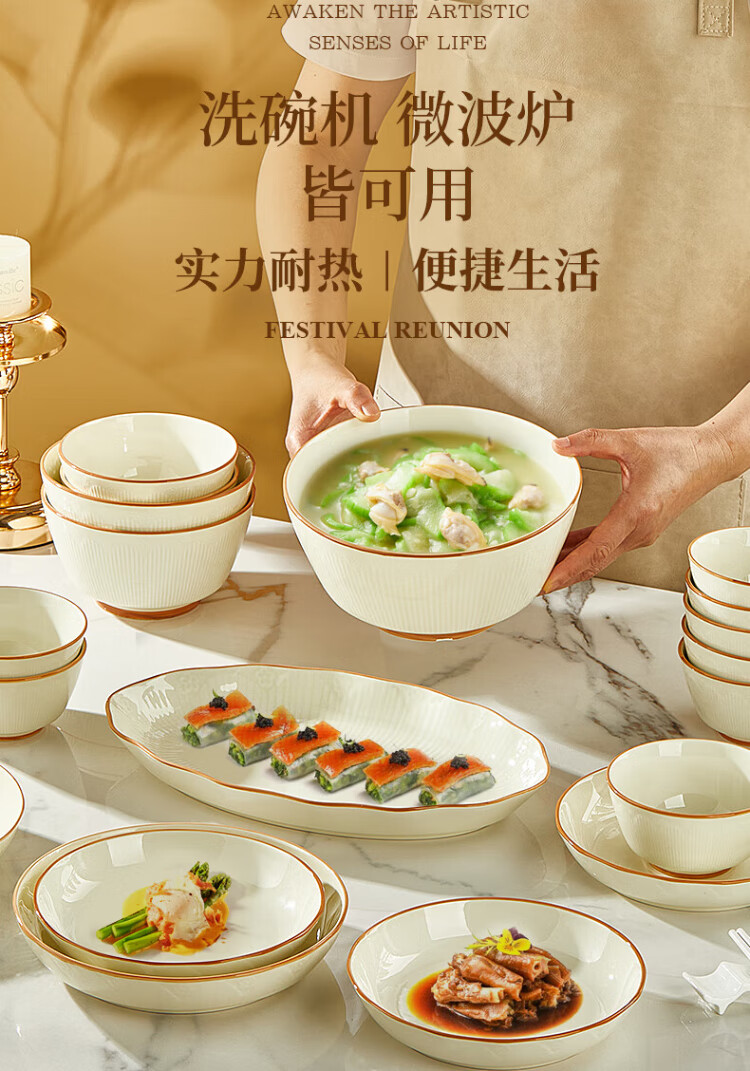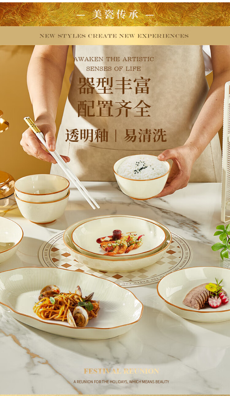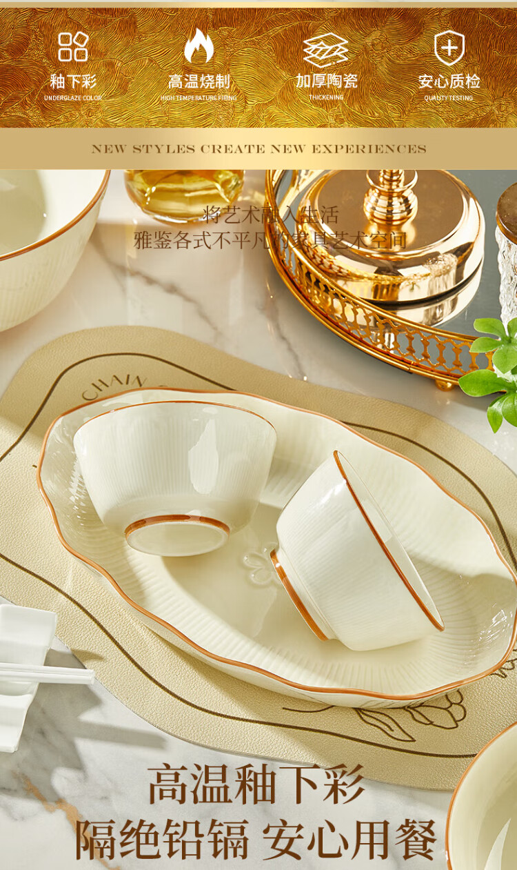 Guoyue light luxury simple bowl and dish set Jingdezhen underglaze color cream style tableware complete set of high-looking housewarming tableware and plates Encounter Shiguang underglaze color 56-piece gift box