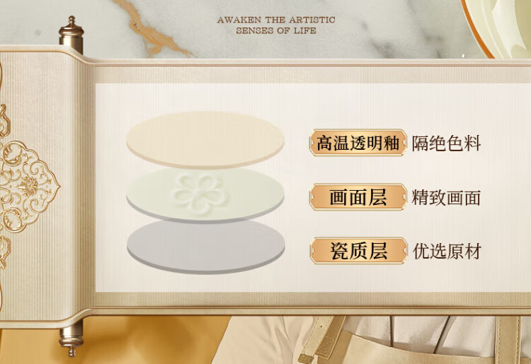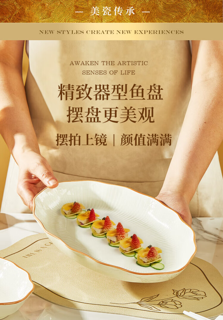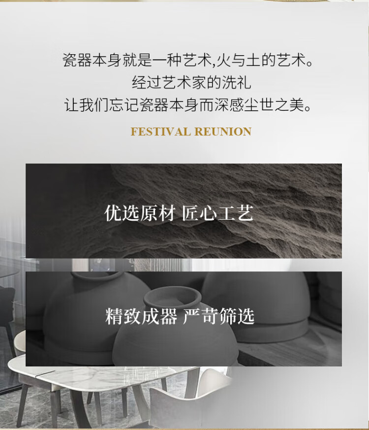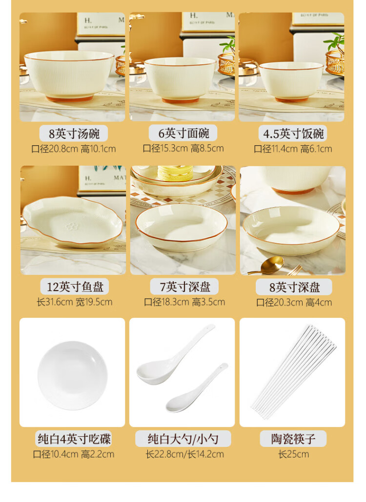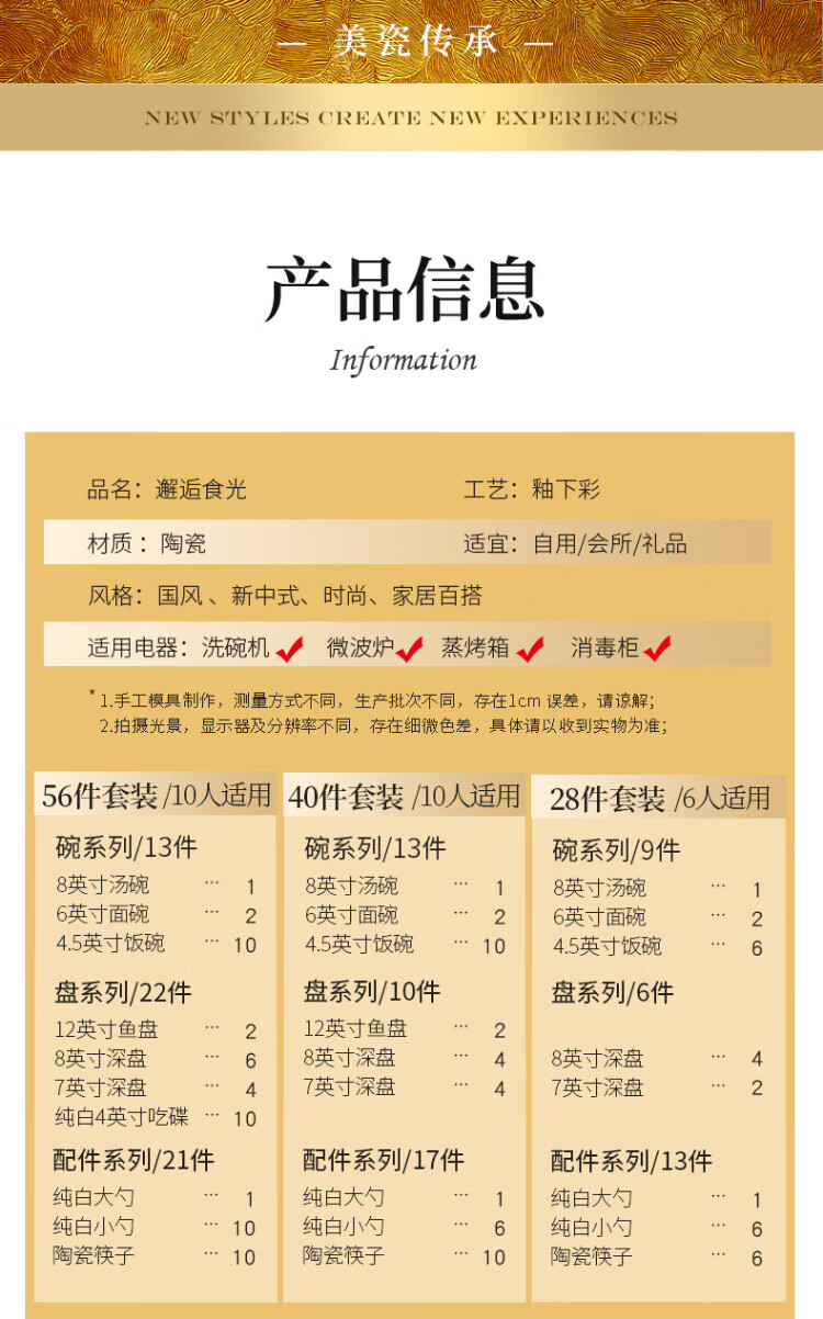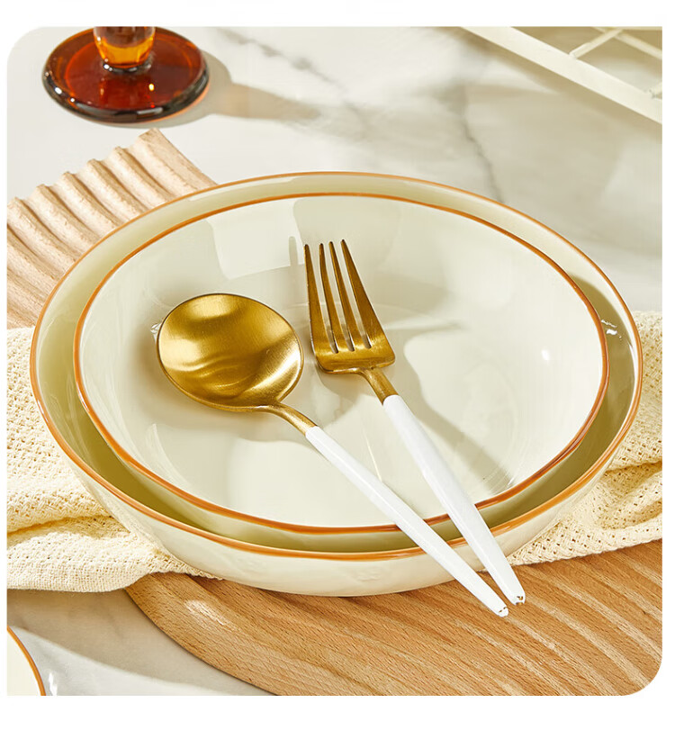 Guoyue light luxury simple bowl and dish set Jingdezhen underglaze color cream style tableware complete set of high-looking housewarming tableware and plates Encounter Shiguang underglaze color 56-piece gift box