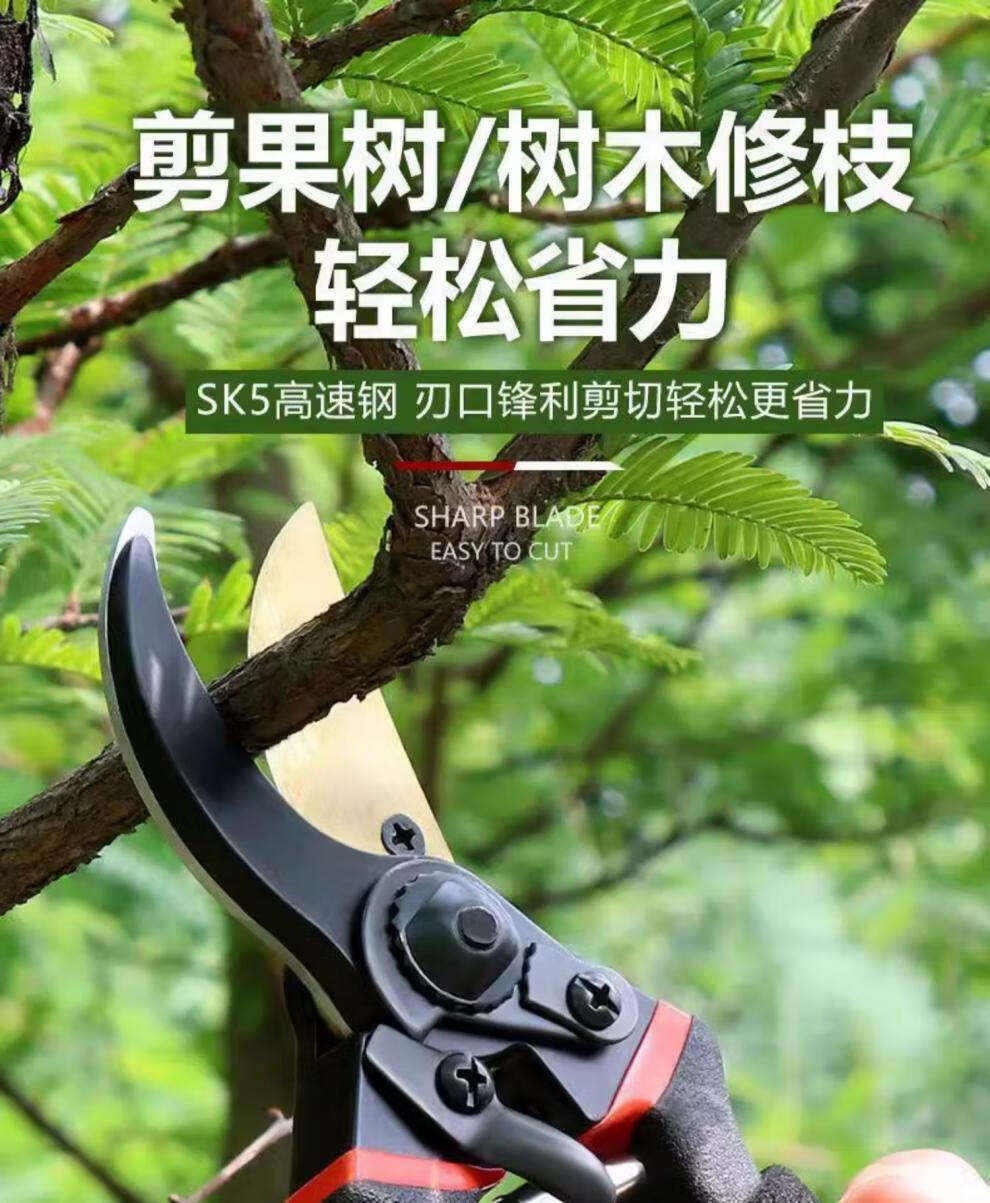 JCZS German craft garden scissors, special scissors for branch cutting, pruning shears, fruit tree shears, gardening scissors, black diamond, 6th generation SK5 steel finely ground blade, free ordinary pruning shears