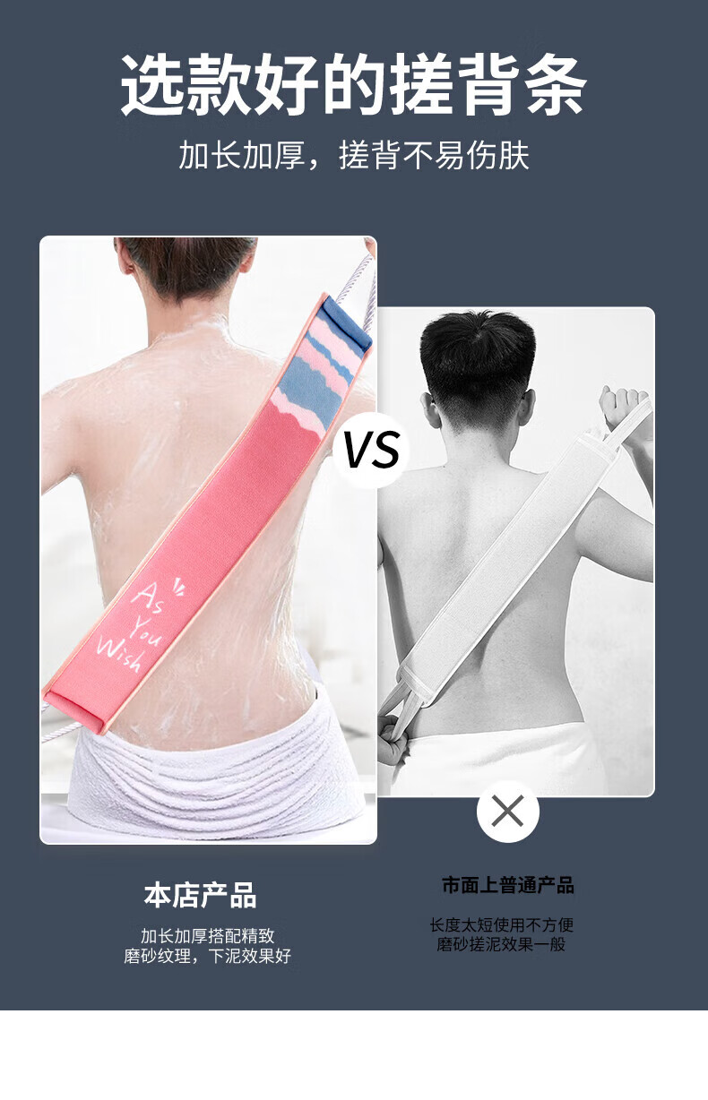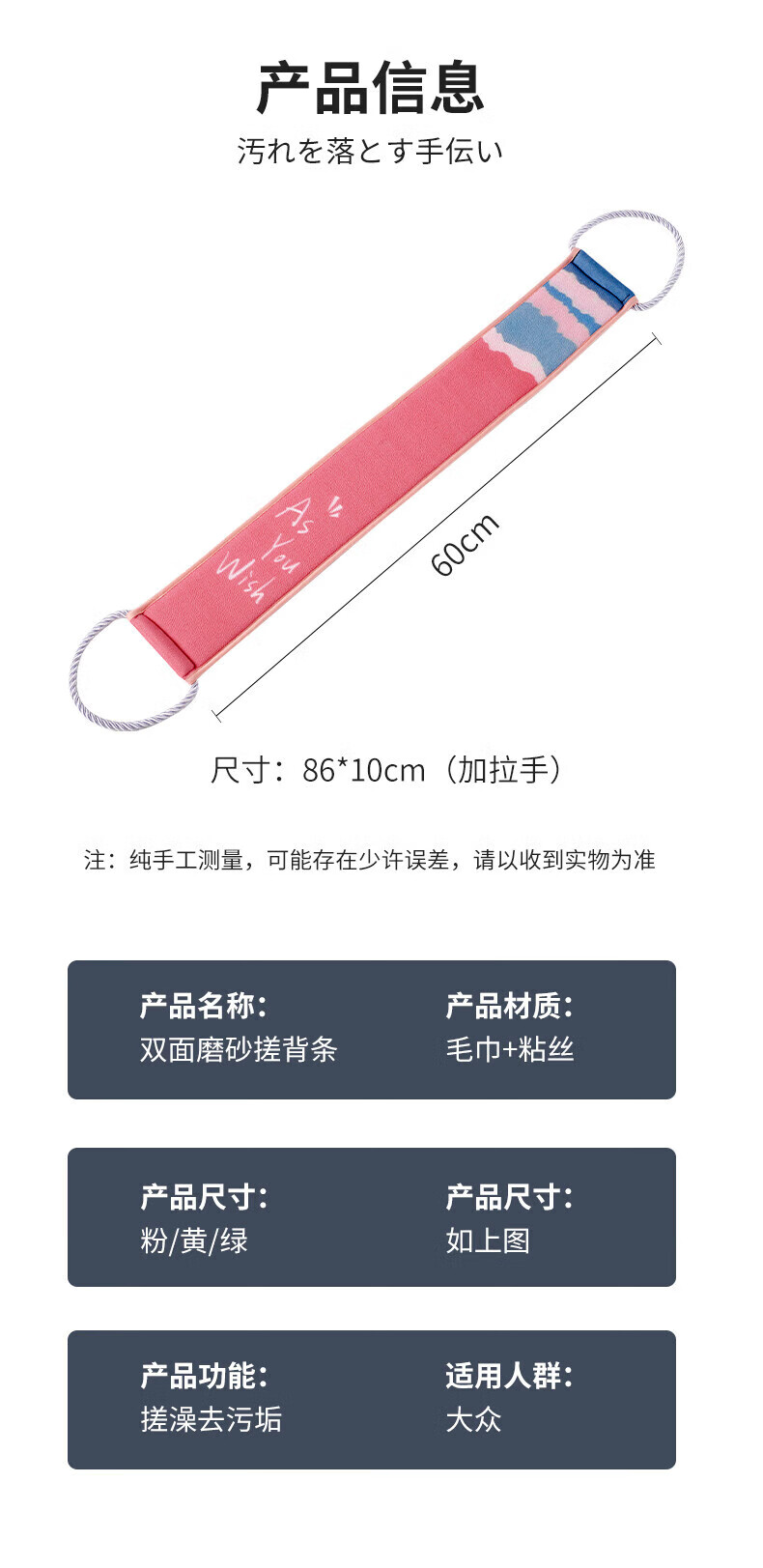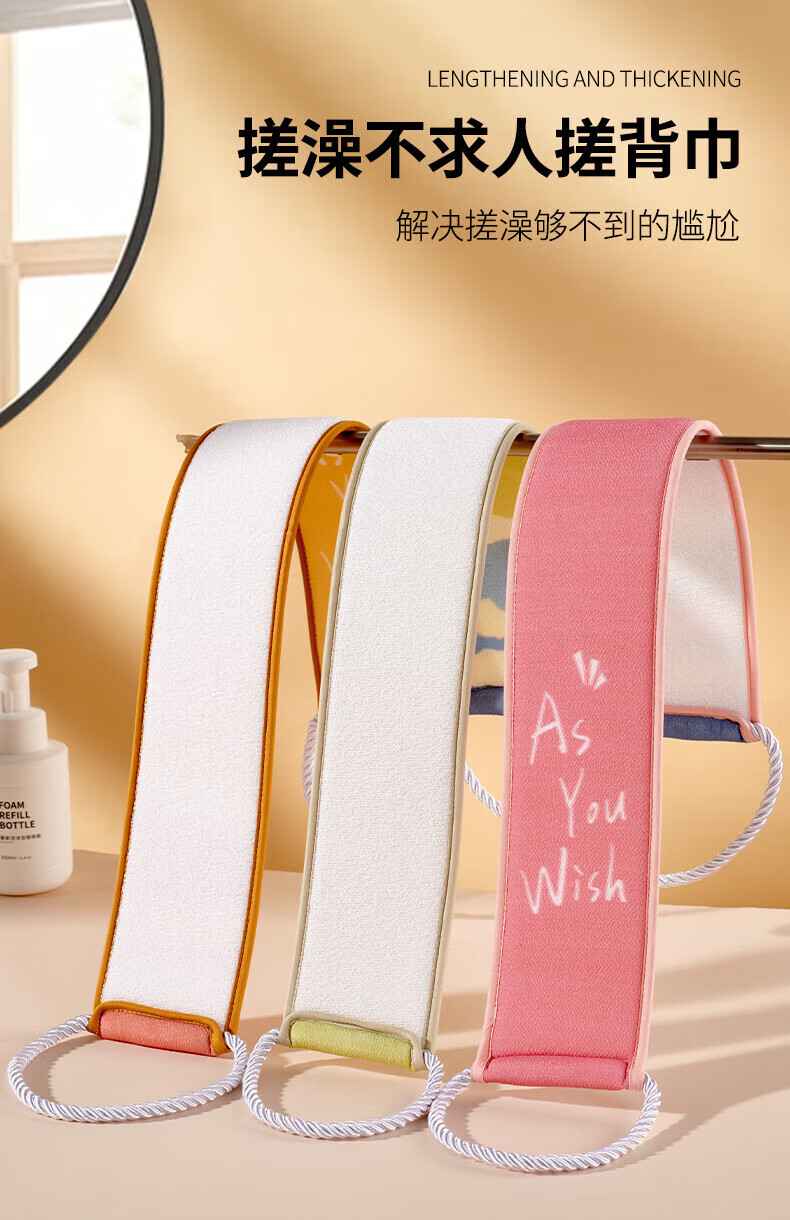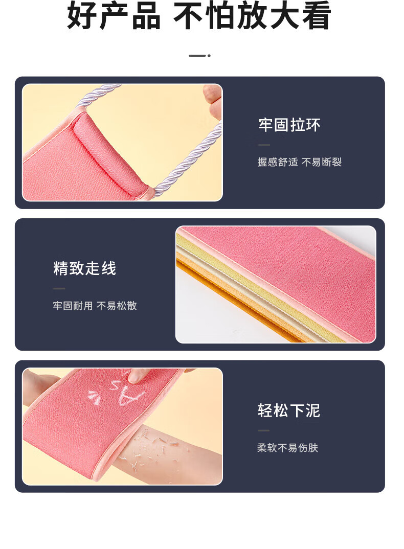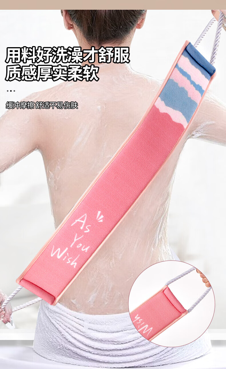 Pu Lian bath towel, double-sided strong back rub, back strip, men and women's back rub mud artifact, long back bath towel, new style, firm handle, pink double-sided back rub strip