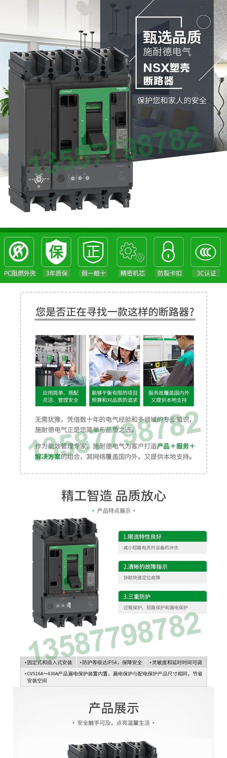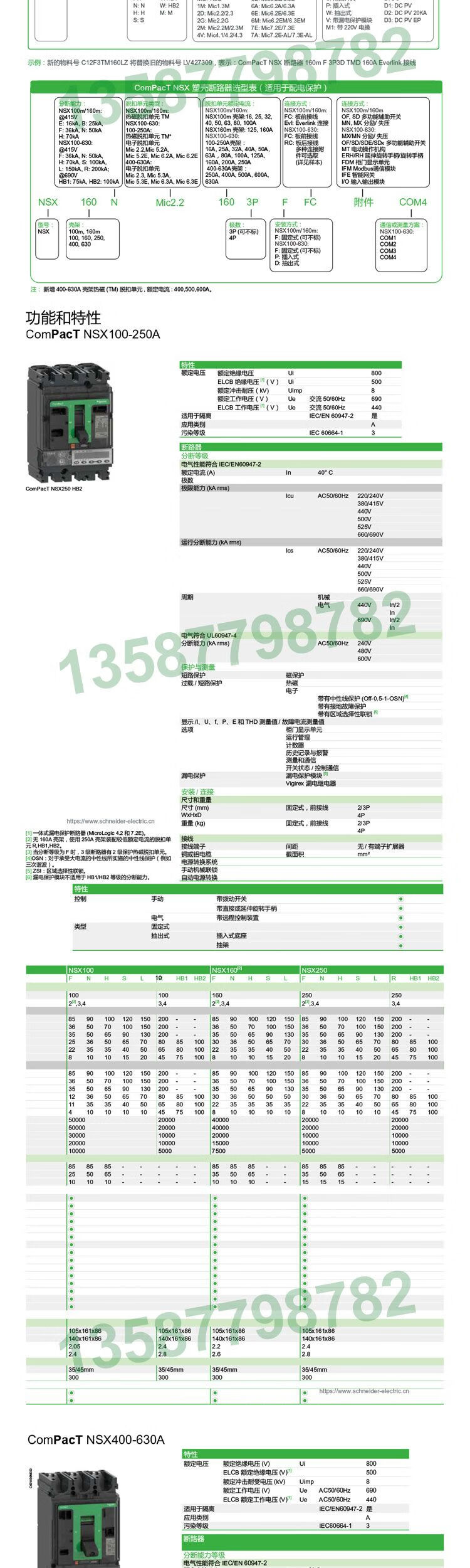 Schneider plastic case circuit breaker NSX250F3P/nsx400n marine circuit breaker air open 250A 4p