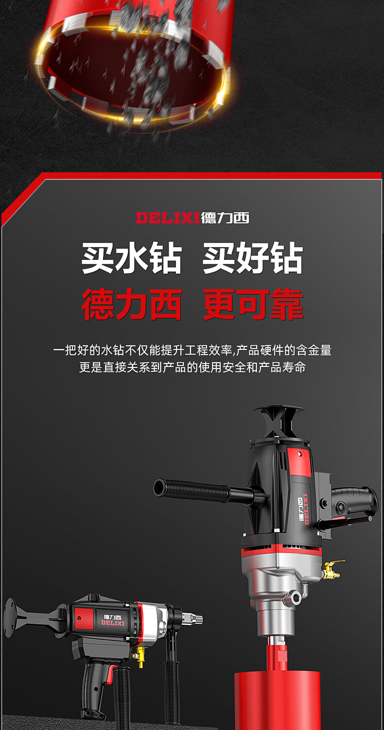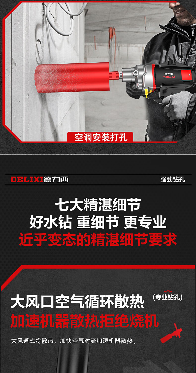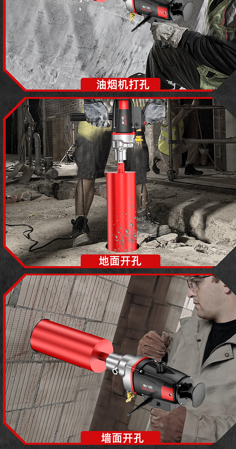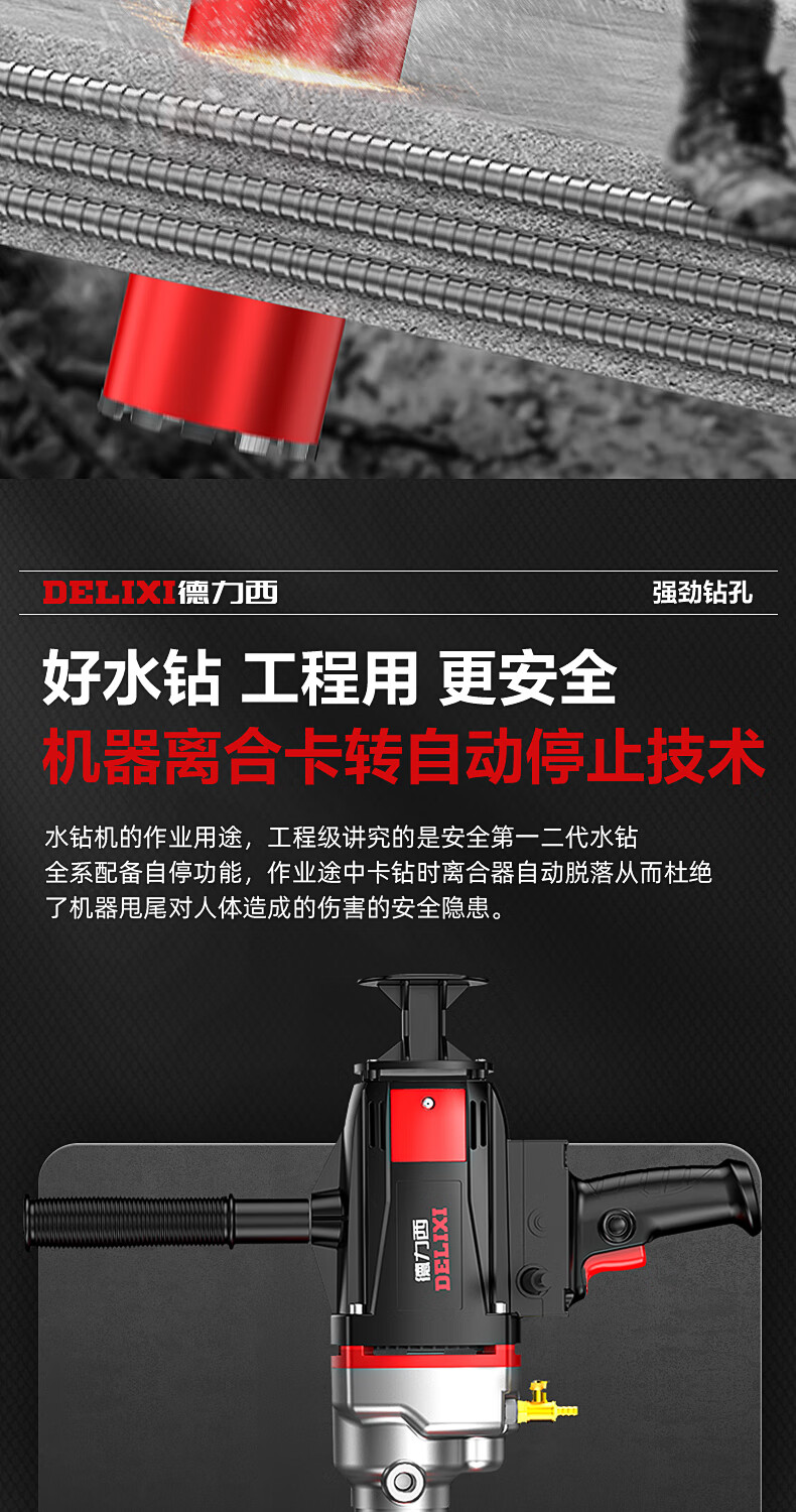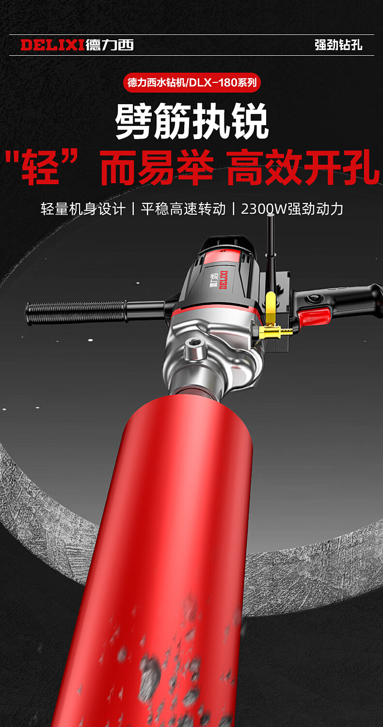 Delixi High Power Diamond Drilling Bracket Water Drilling Rig Center Drill Floor Drilling Press Wall Air Conditioning Hole Opening Machine Mixer 2300W丨180 Type + Water Pump + Water Pipe + Bracket