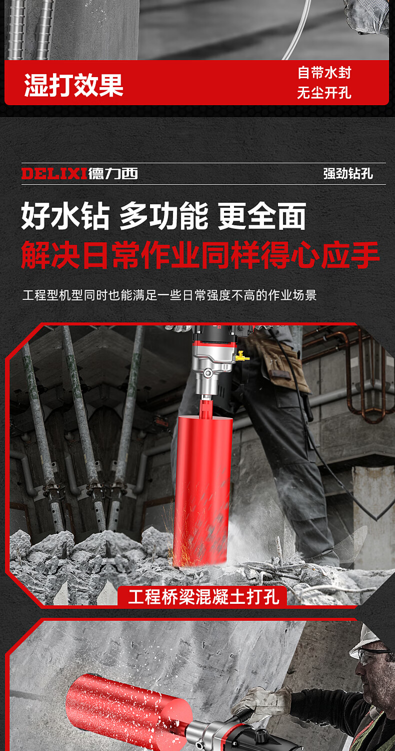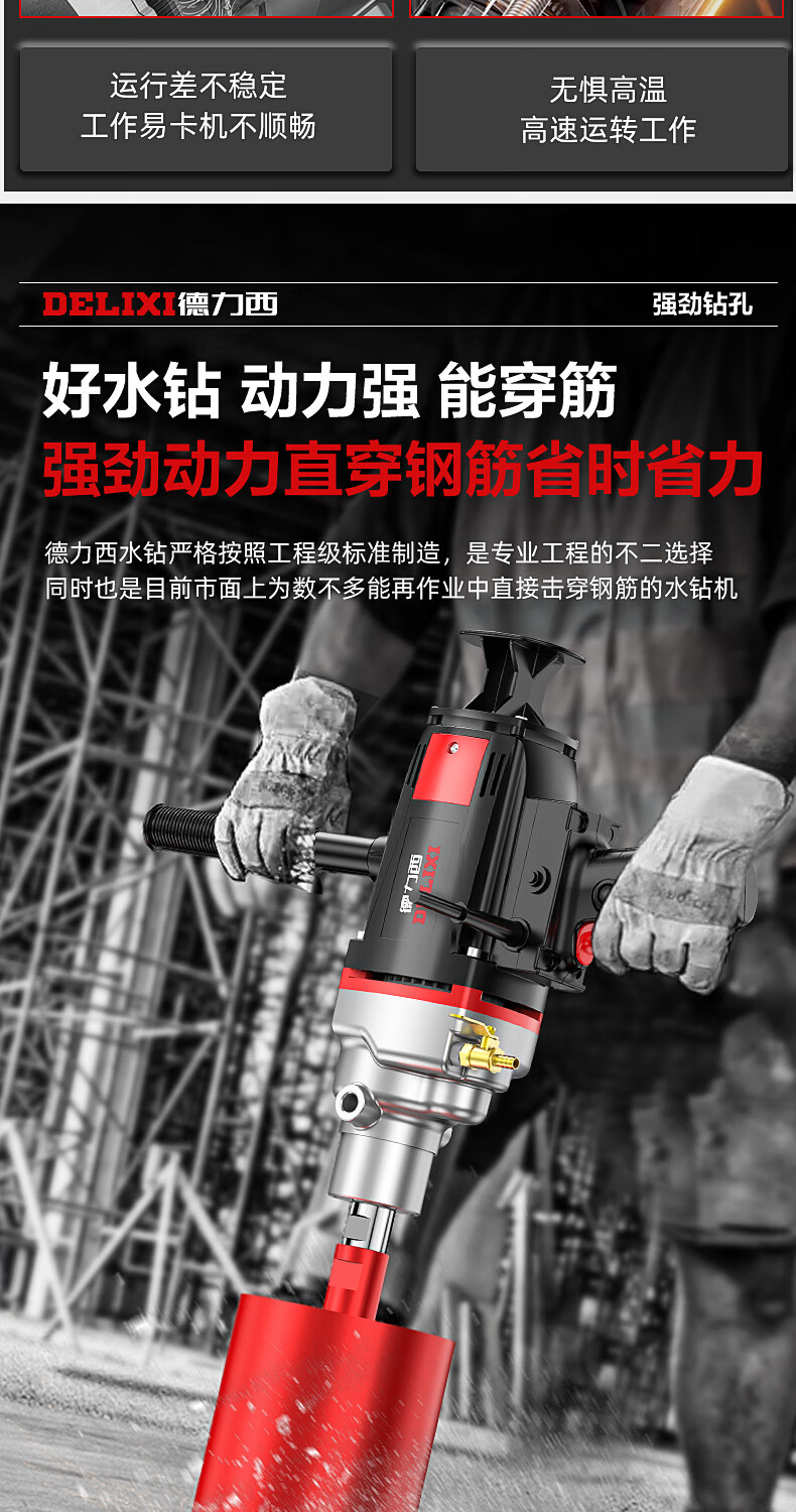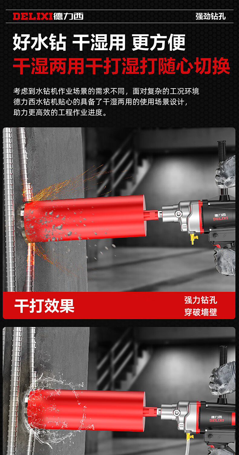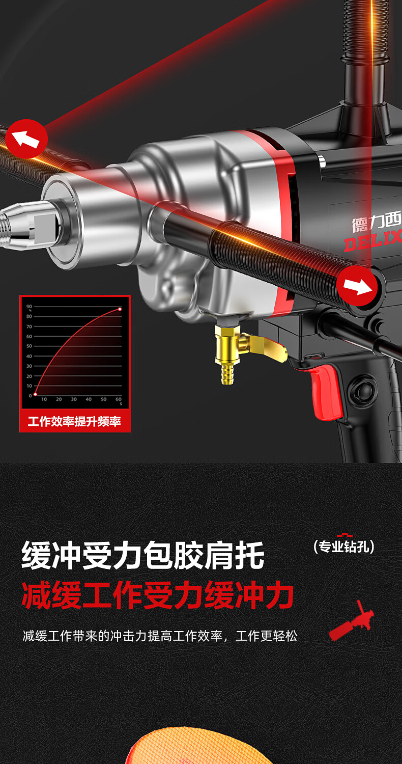 Delixi High Power Diamond Drilling Bracket Water Drilling Rig Center Drill Floor Drilling Press Wall Air Conditioning Hole Opening Machine Mixer 2300W丨180 Type + Water Pump + Water Pipe + Bracket