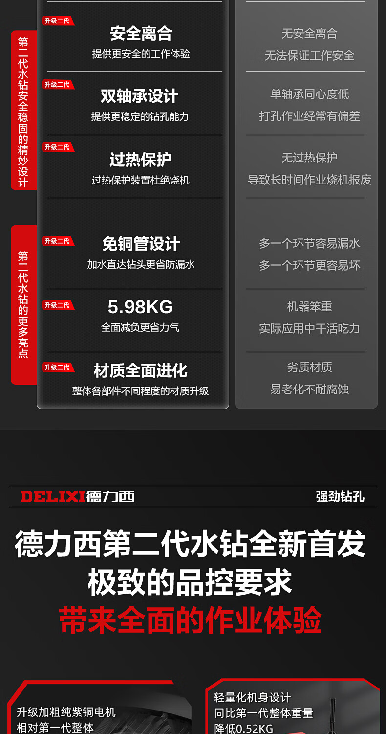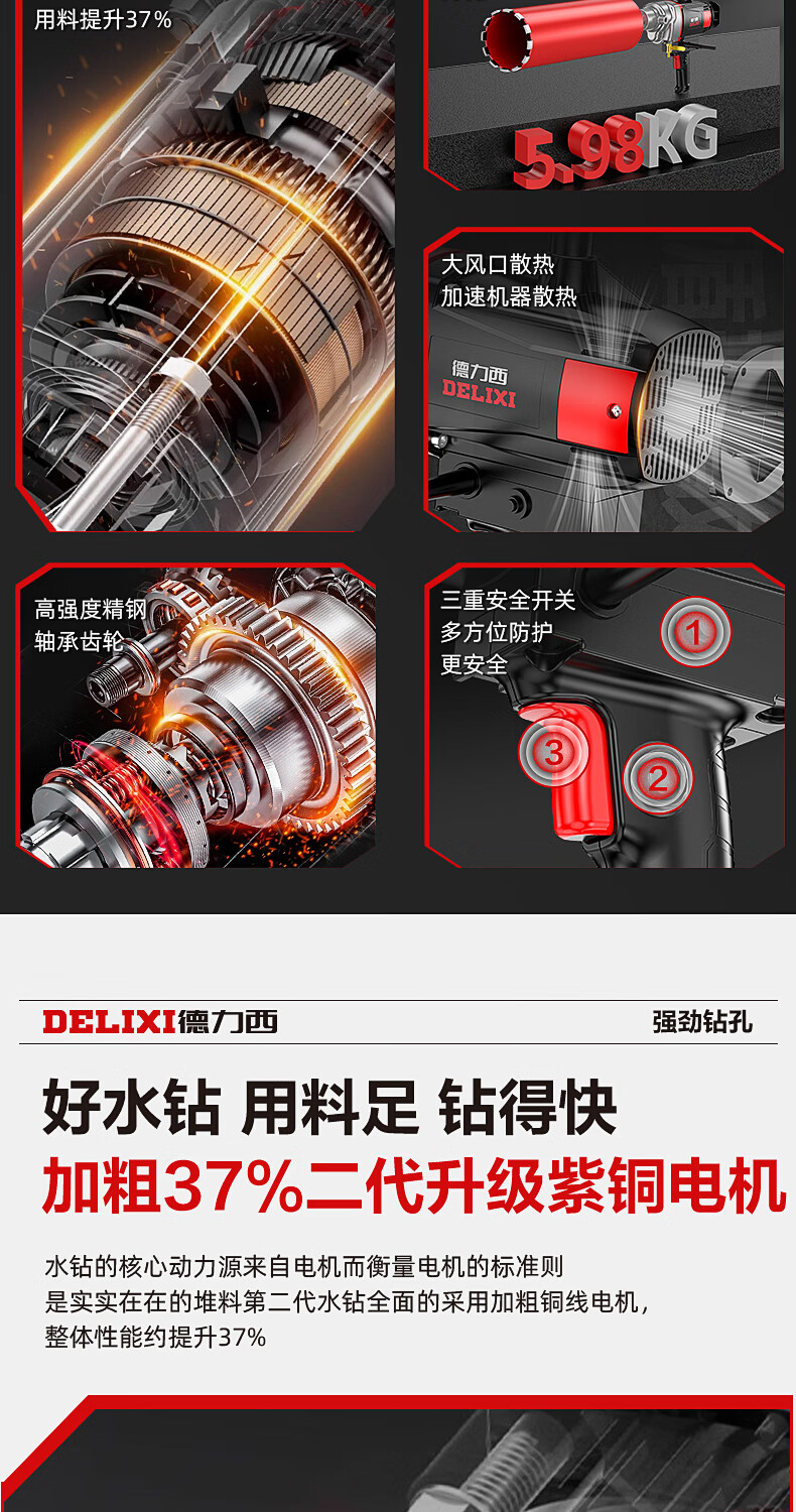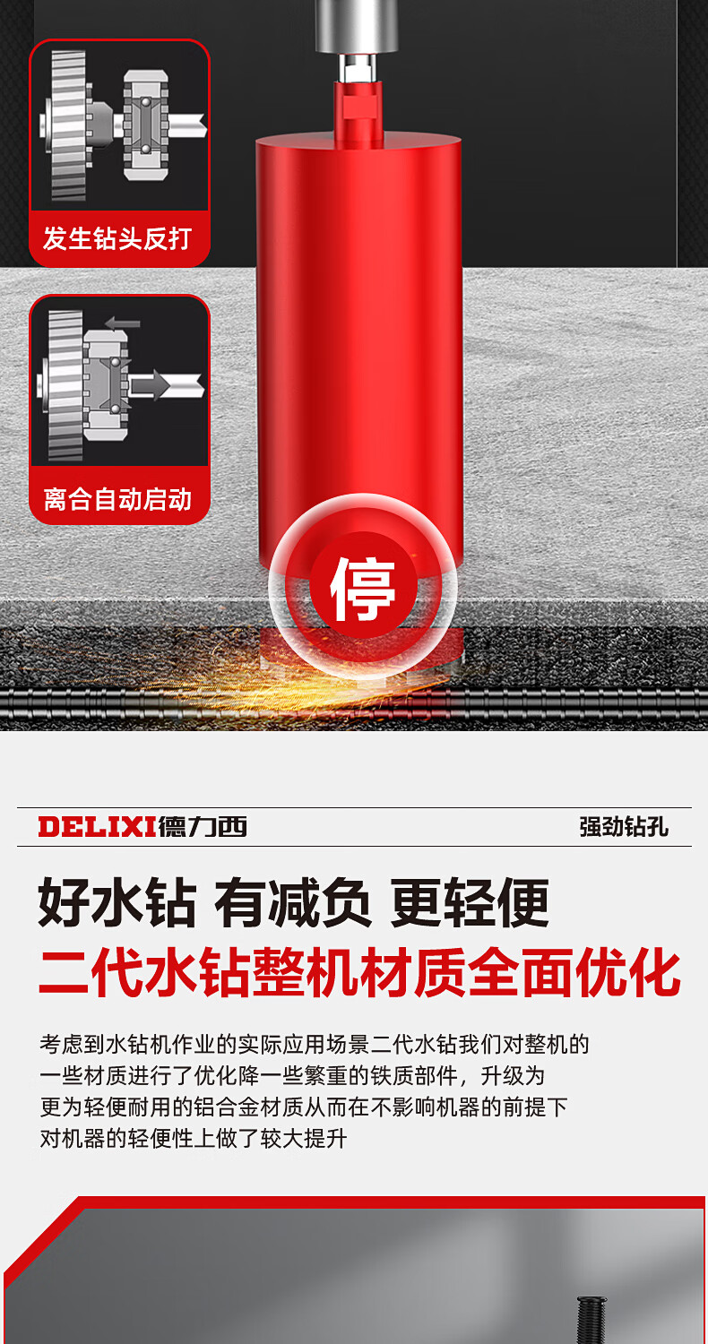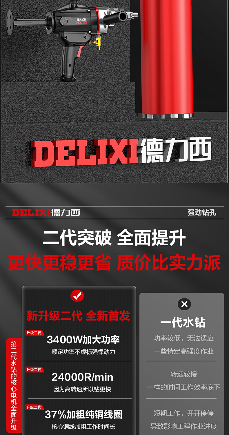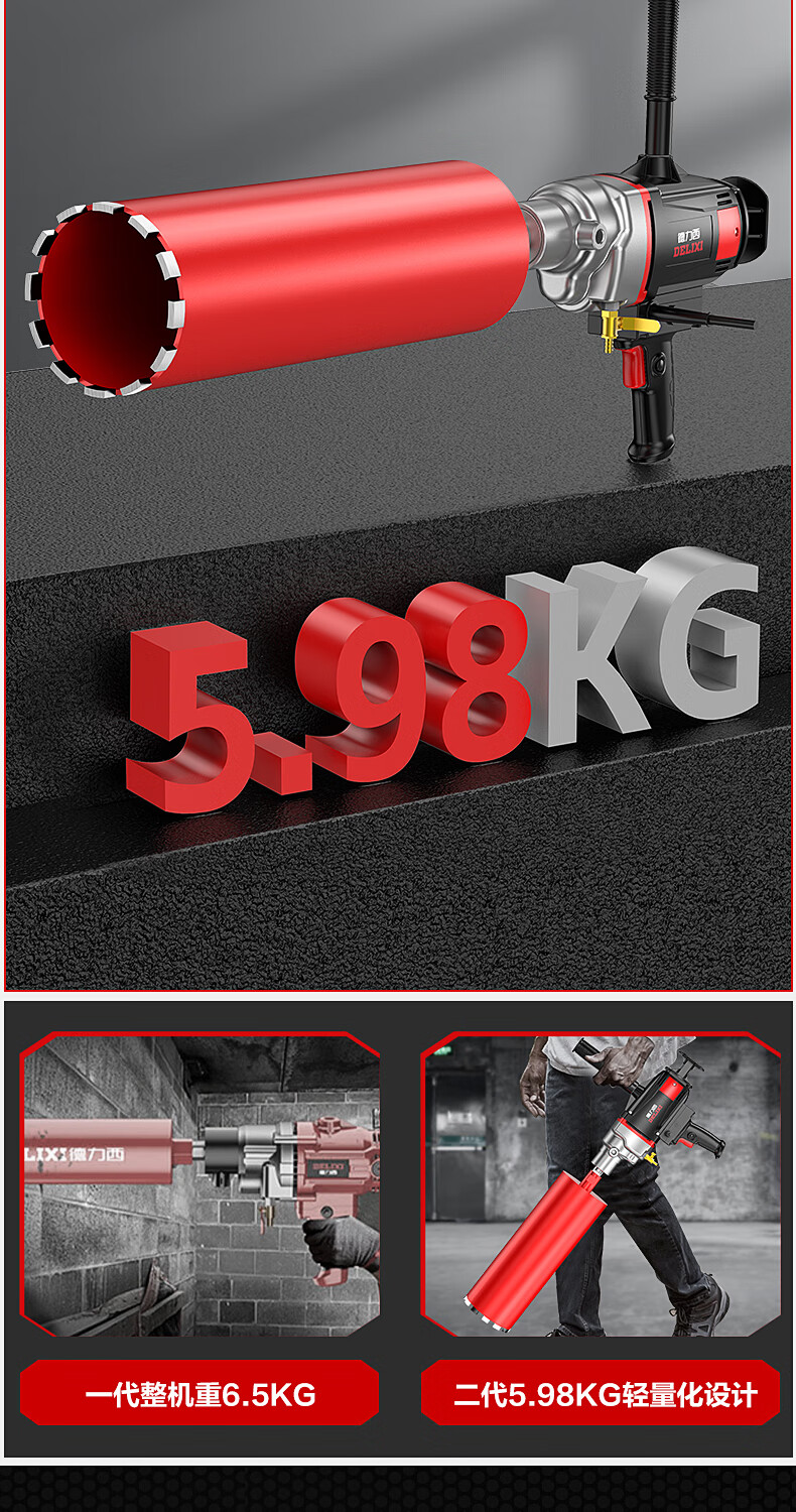 Delixi High Power Diamond Drilling Bracket Water Drilling Rig Center Drill Floor Drilling Press Wall Air Conditioning Hole Opening Machine Mixer 2300W丨180 Type + Water Pump + Water Pipe + Bracket