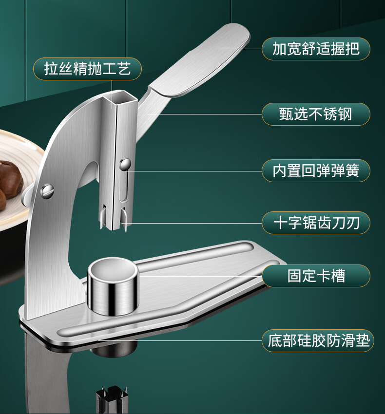 HUYO chestnut opener household sugar-fried chestnut shelling machine stainless steel chestnut cross opening clip special shelling artifact upgraded second generation lever chestnut opener