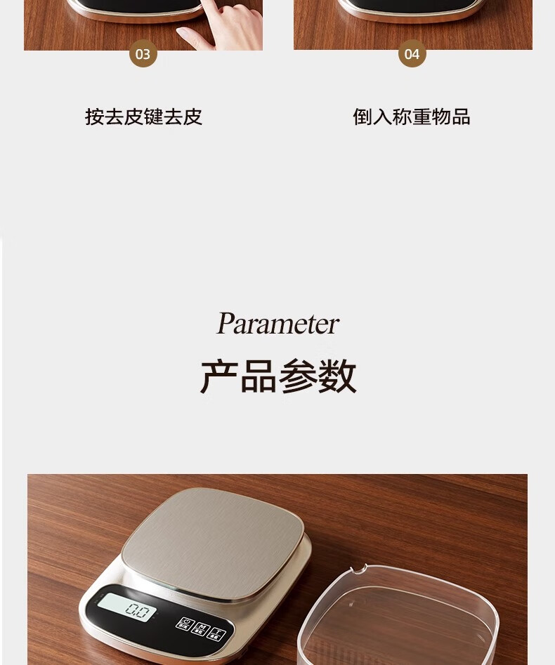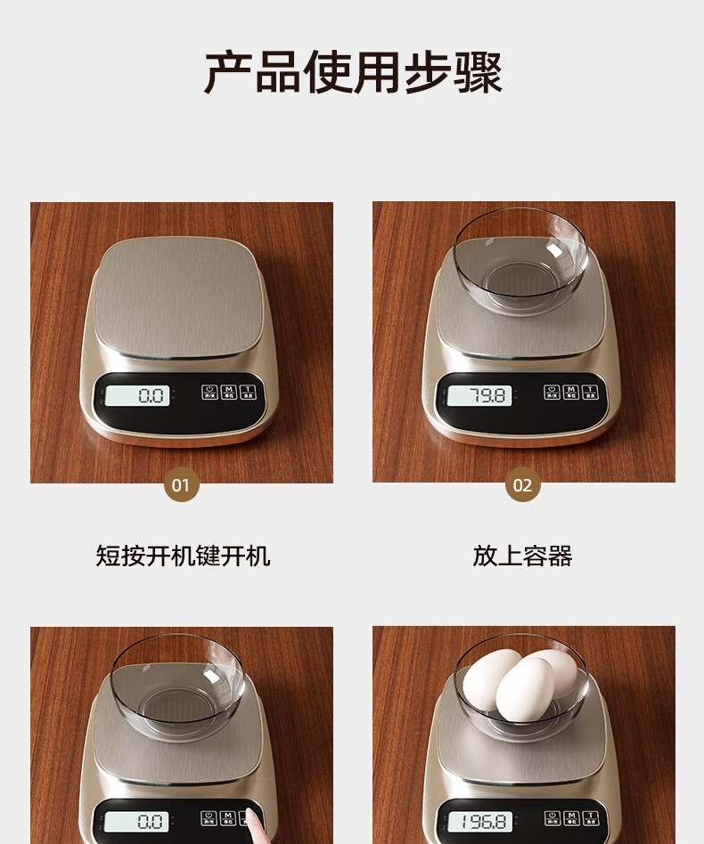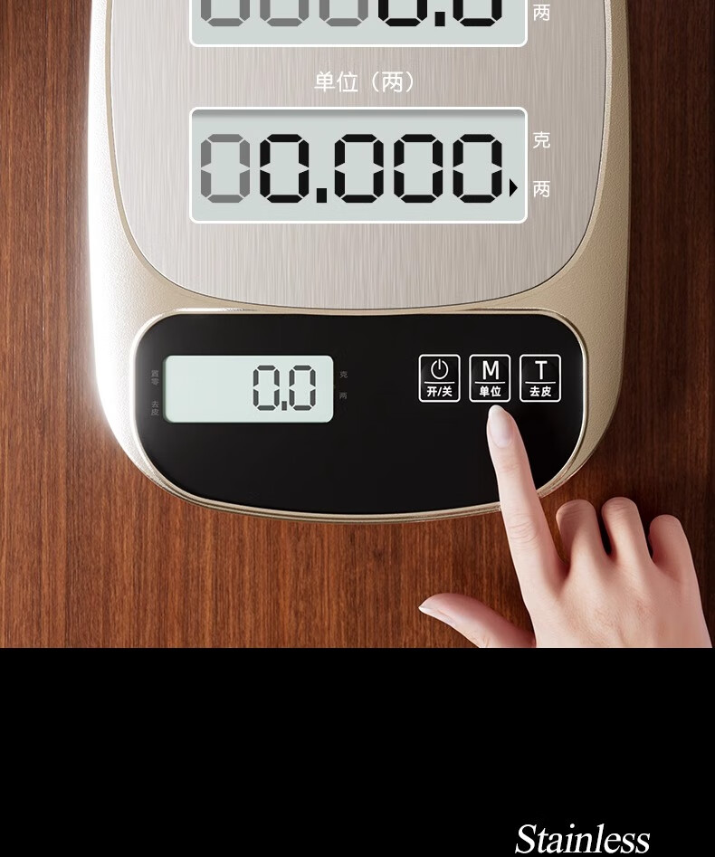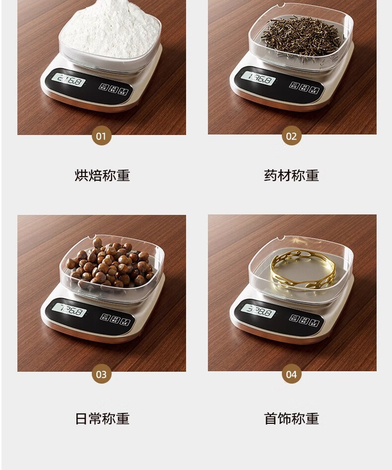 JCZS Japanese brand kitchen scale electronic scale small precision coffee scale food scale high precision battery model 3kg/0.1g 304 stainless steel panel (comes with tray