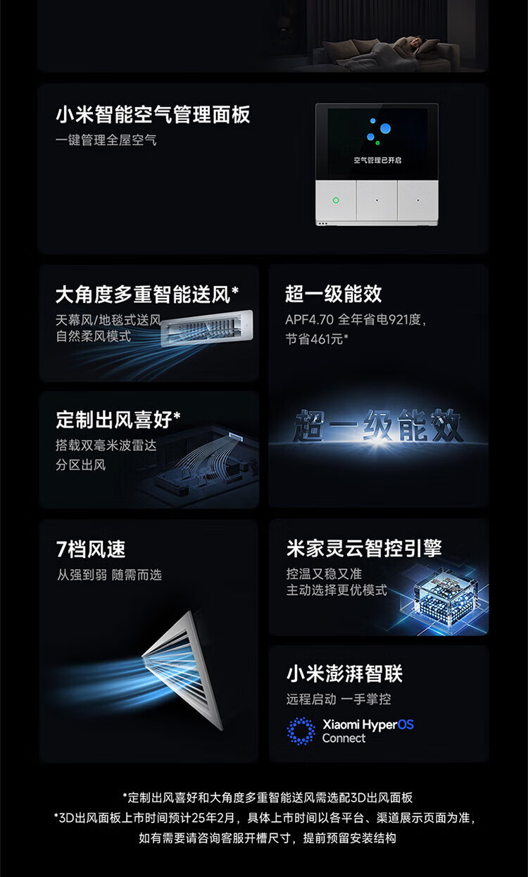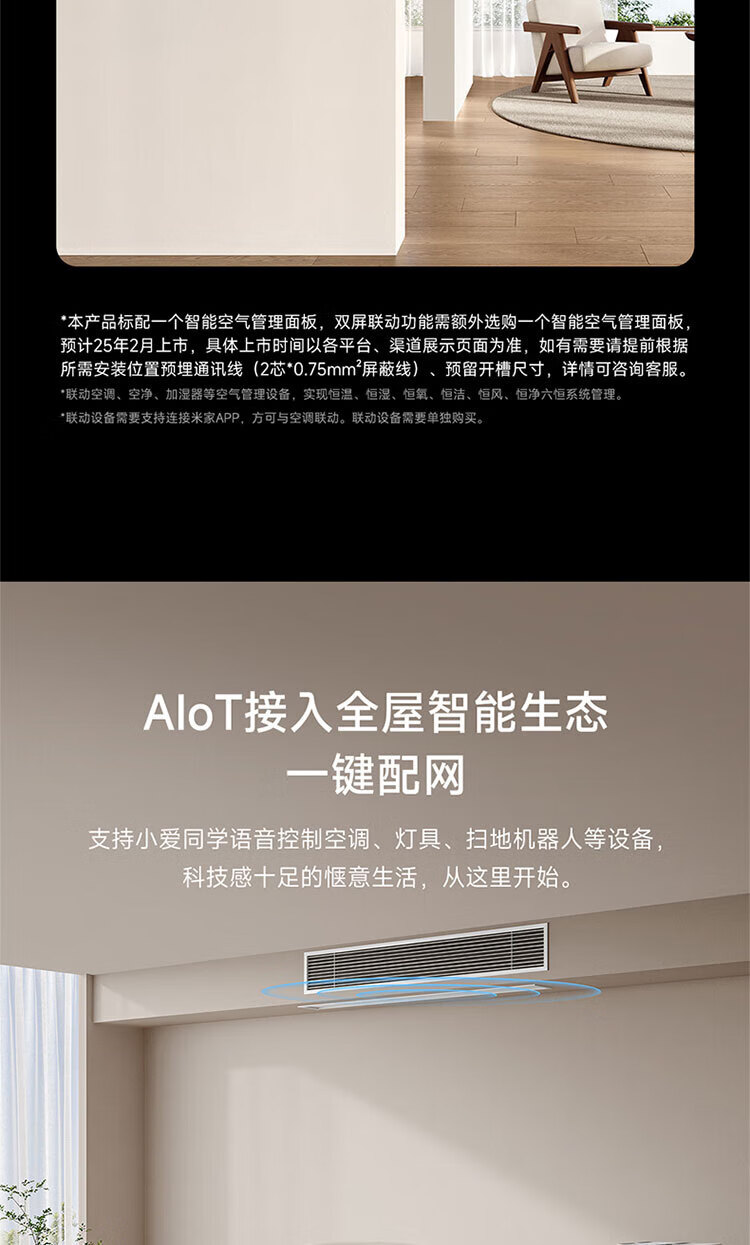 Xiaomi (MI) central air conditioner 3 hp Pro one-to-one duct machine Mijia full DC variable frequency multi-split air conditioner super first-class energy efficiency 75FW-OC20/N1B1 4 hp first-class energy efficiency 90FW-OC20/N2B1