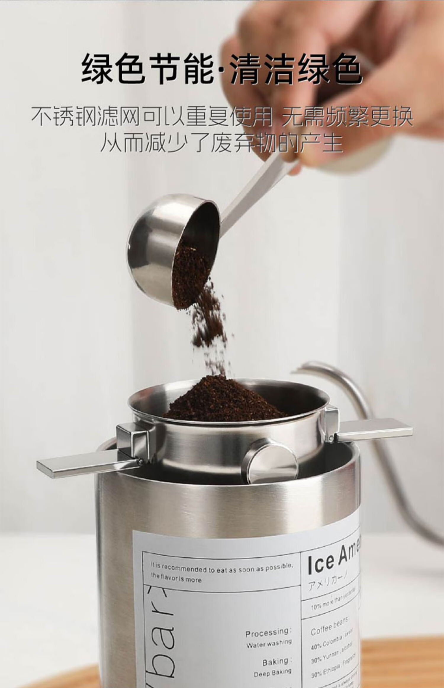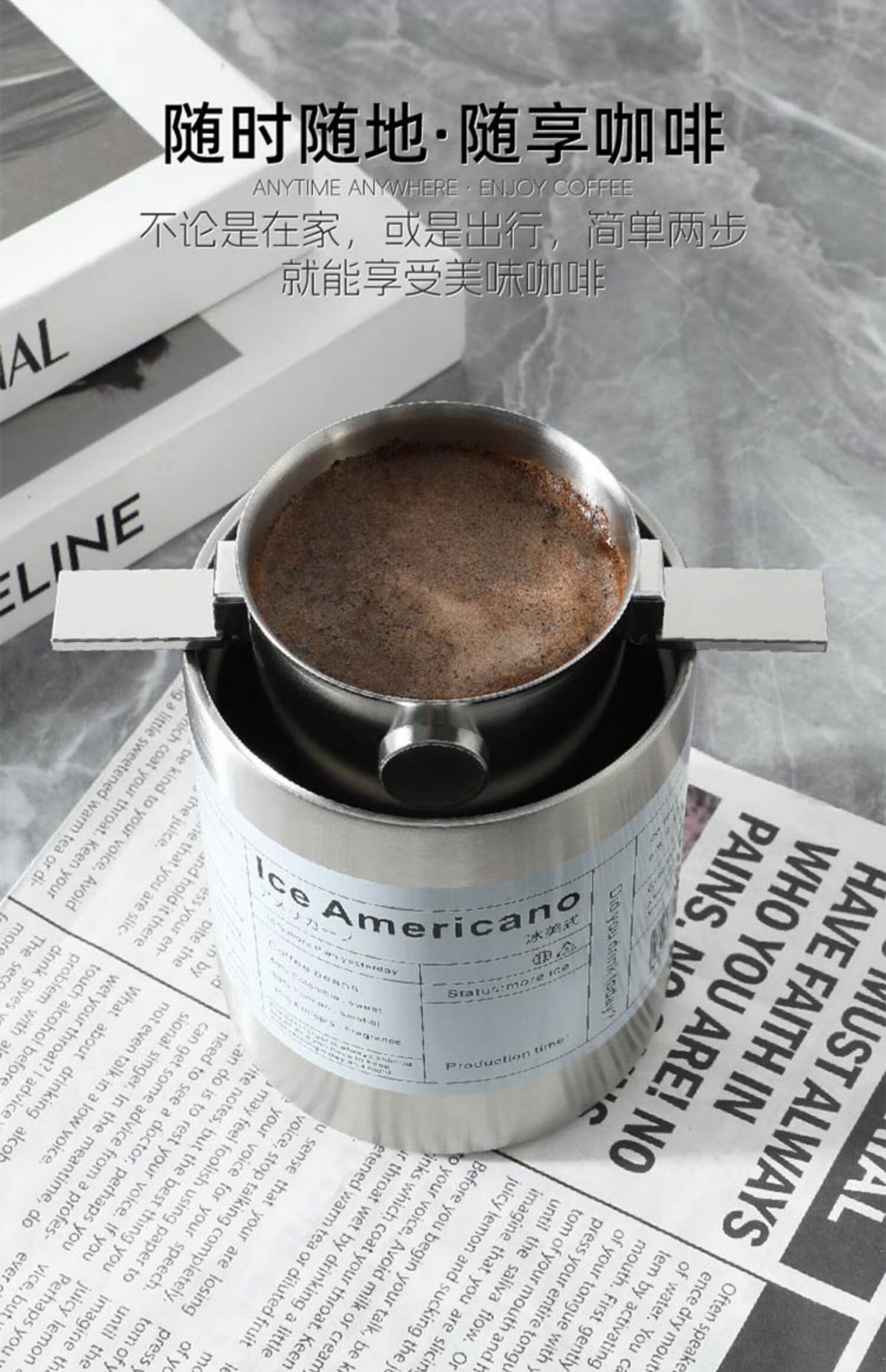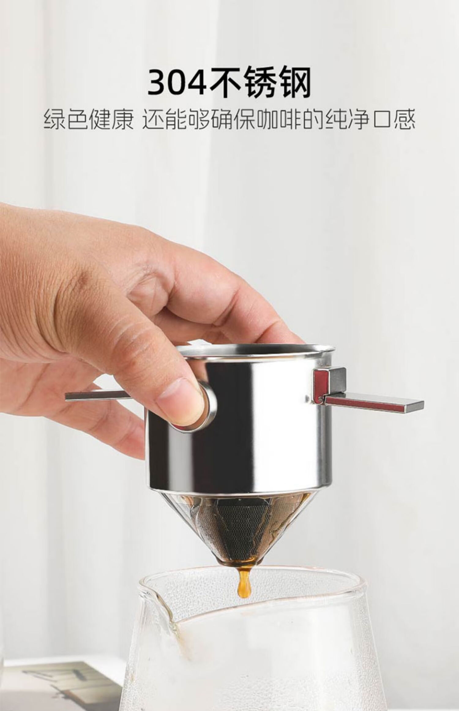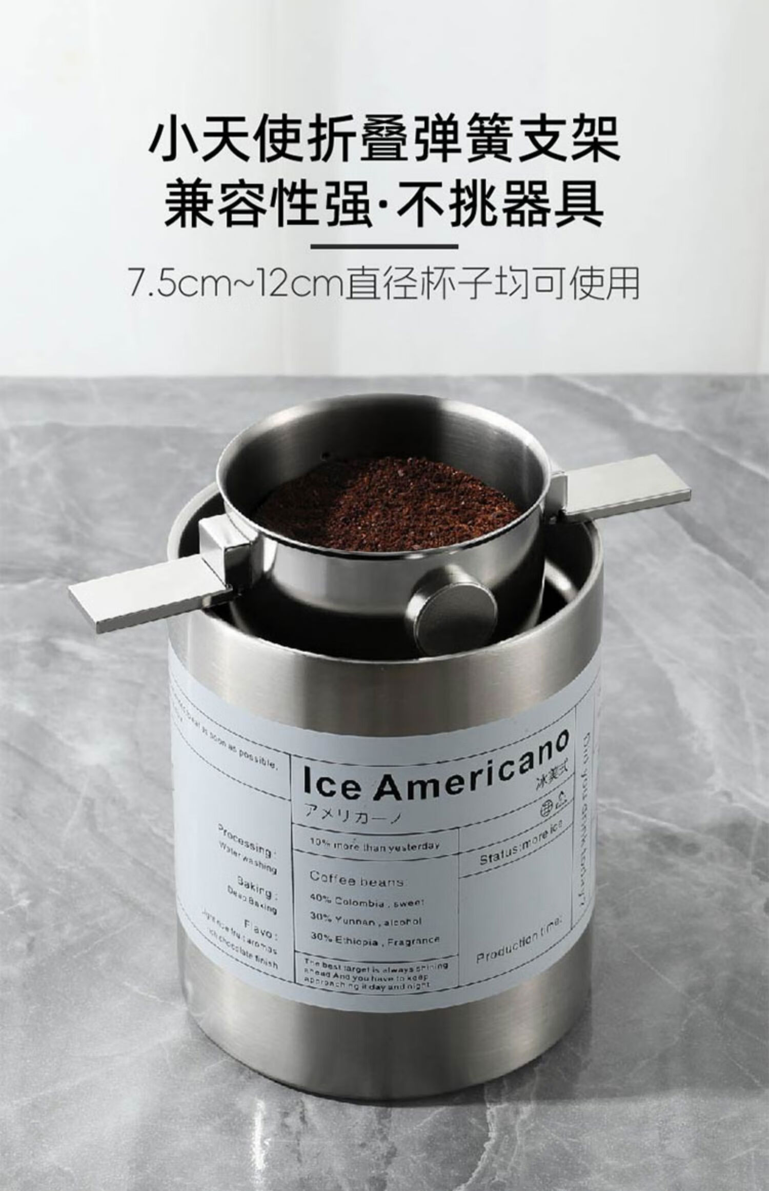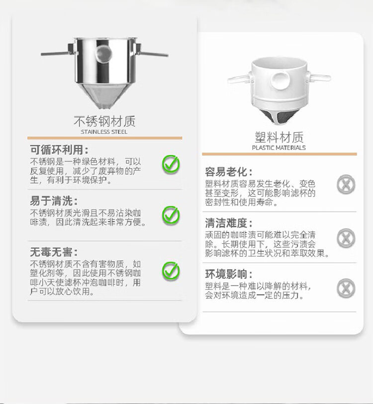 MONDINO stainless steel coffee filter, foldable ear filter cup, portable hand-brewed coffee filter, filter-free funnel, stainless steel filter cup + stainless steel straw cup (steel color)