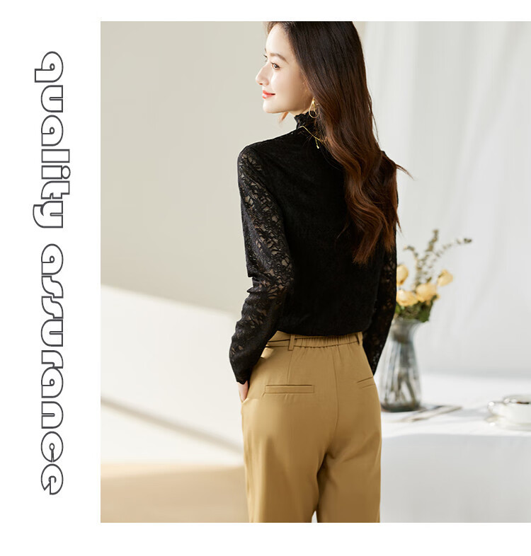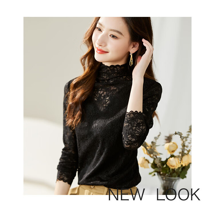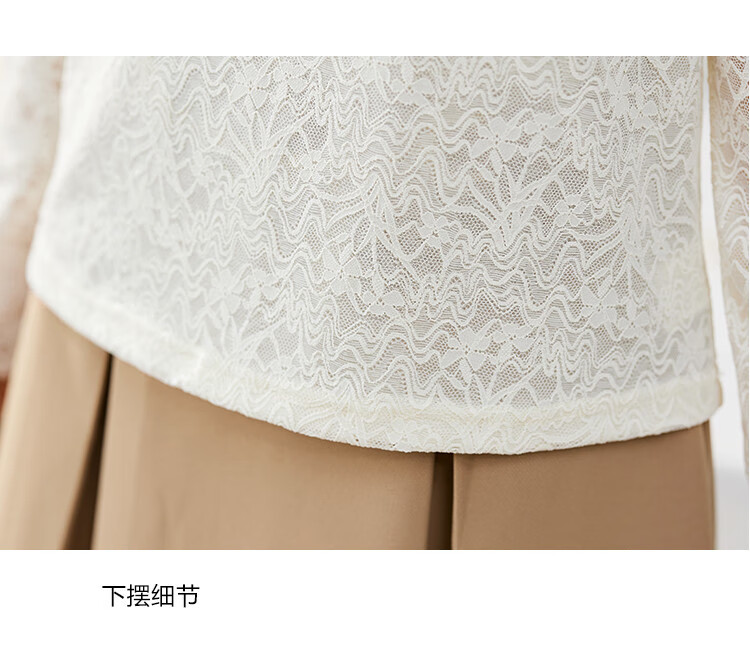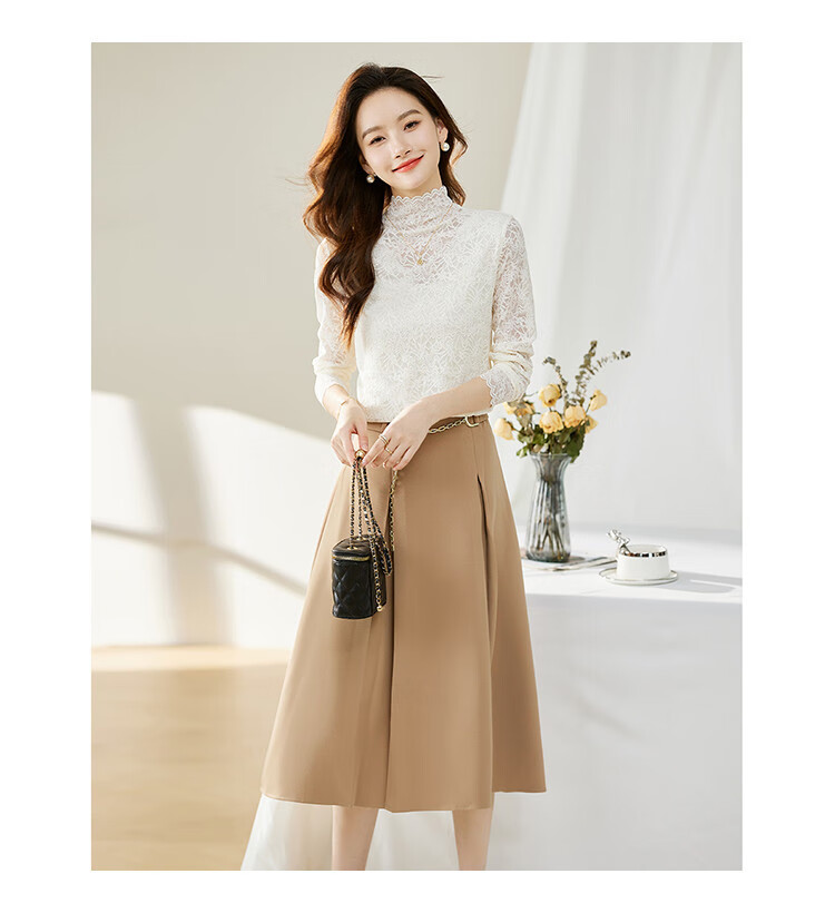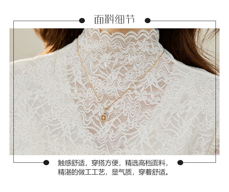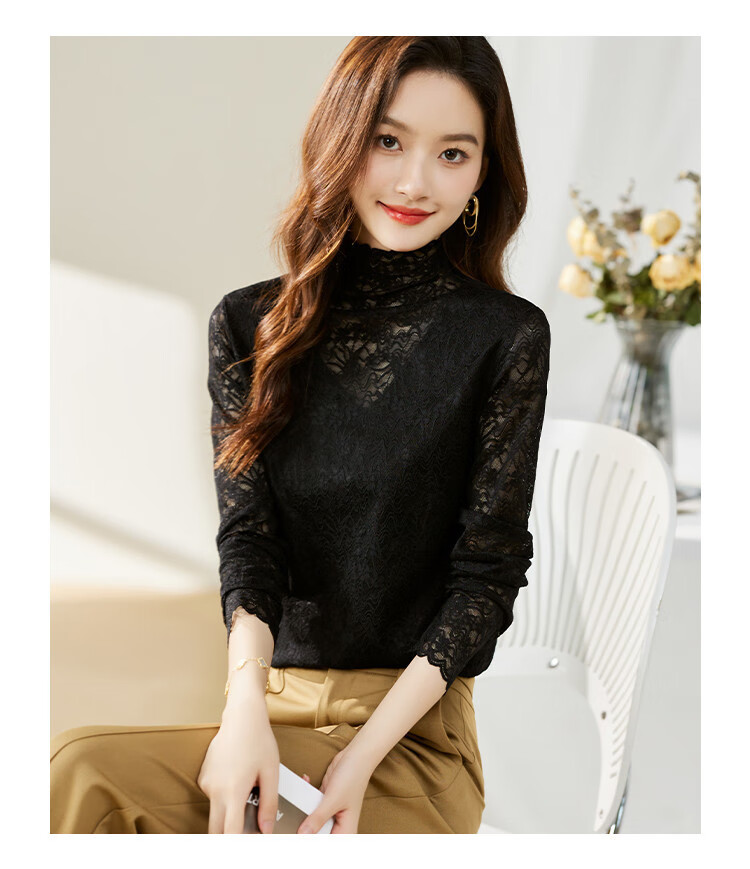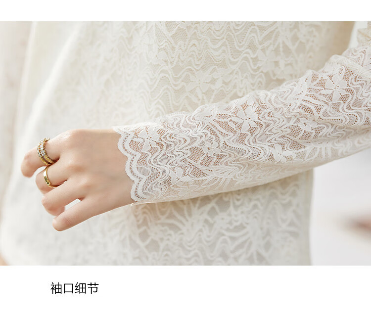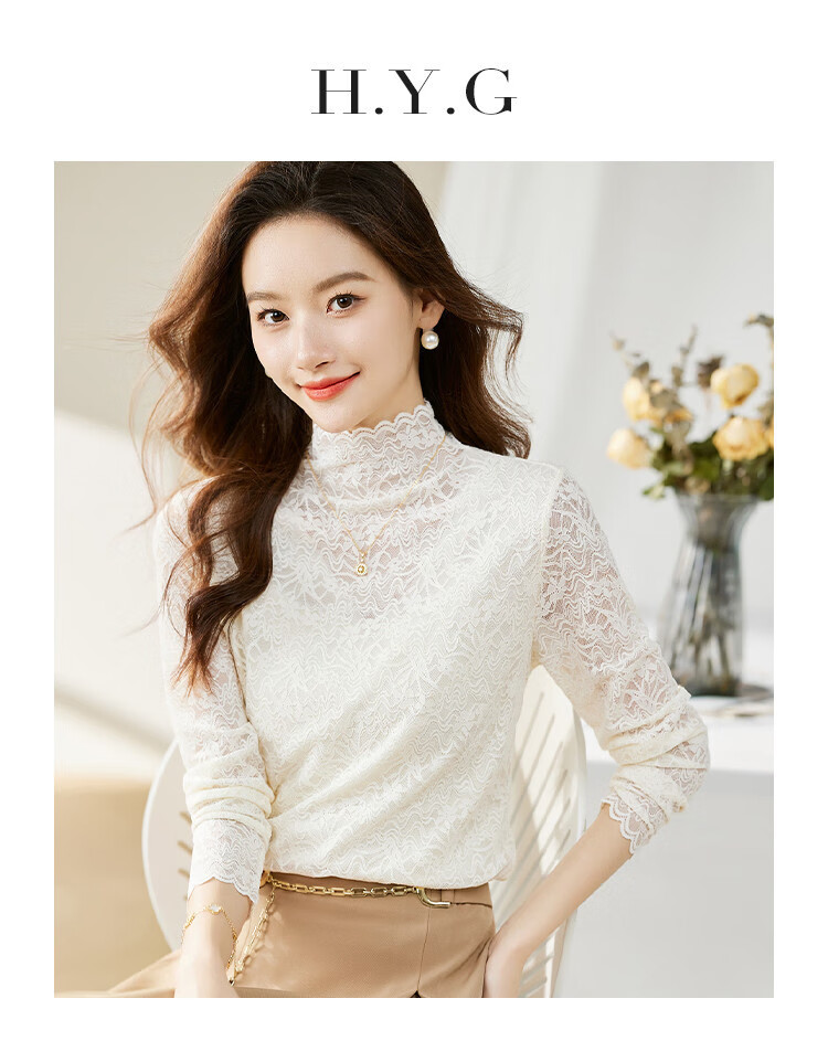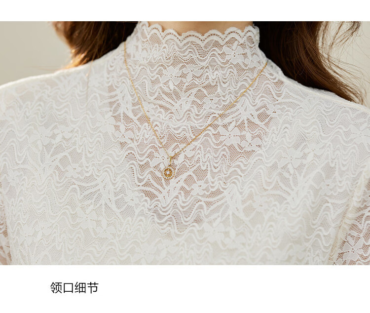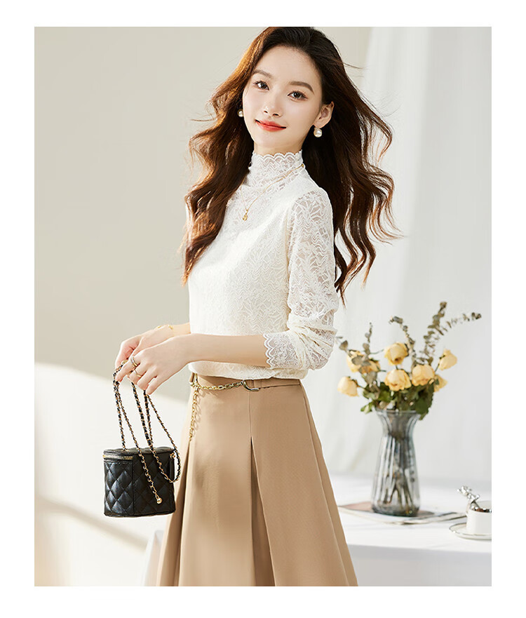 Hangyige hollow lace bottoming shirt, autumn and winter, western style, slimming, discreet, high collar, fashionable inner long-sleeved shirt, off-white M (85-100)