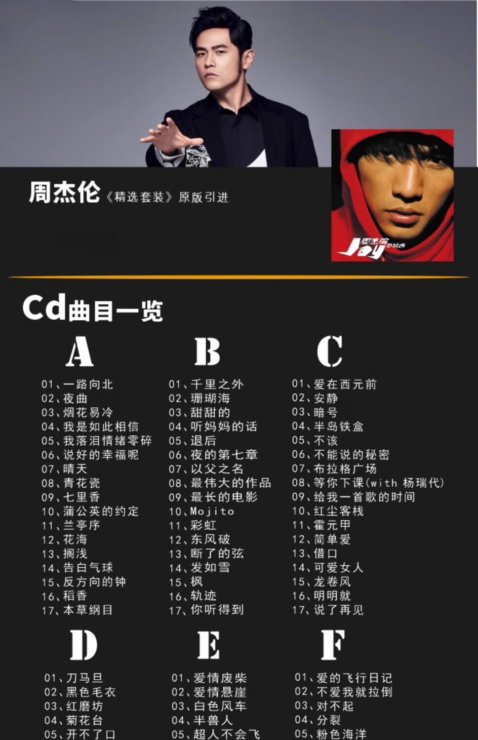Jay Chou cd disc JAY car vinyl disc album lossless sound quality selected songs high-quality pop music 6CD Jay Chou lossless 6 discs - General