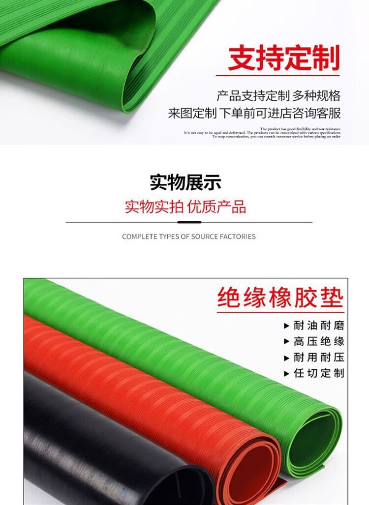 Distribution cabinet insulating mat, insulating rubber mat, high voltage distribution room, 35kv distribution room floor mat, rubber mat, insulating rubber sheet, black stripe, 3mm, 1m*5m, withstand voltage 6KV