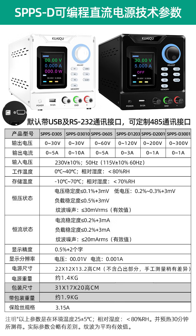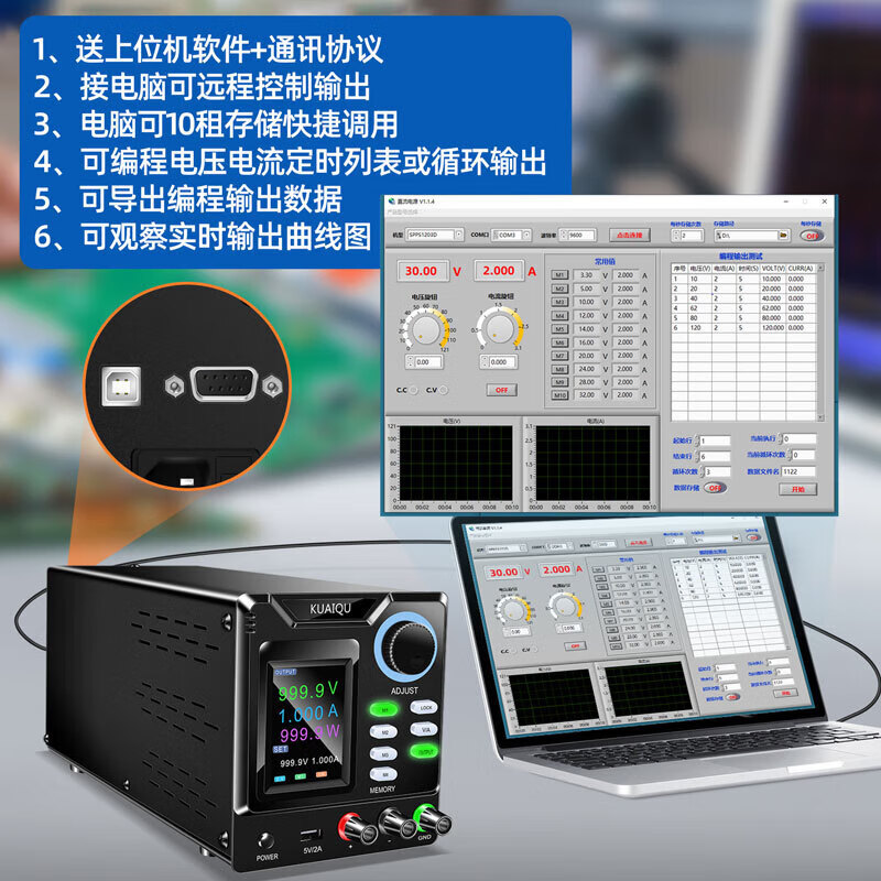KUAIQU programmable USB/232 DC regulated power supply 400V600V800V1000V1A high voltage test constant current power supply 1000V1A SPPS-D10001-232