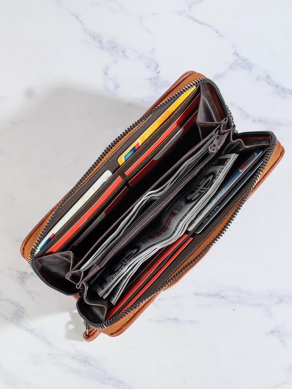 Scarecrow 2025 New Genuine Leather Light Luxury Women's Wallet Retro Personalized Color Rubbed Multi-Slot Long Bag for Girlfriend Wife Mom Mother Gift Retro Brown