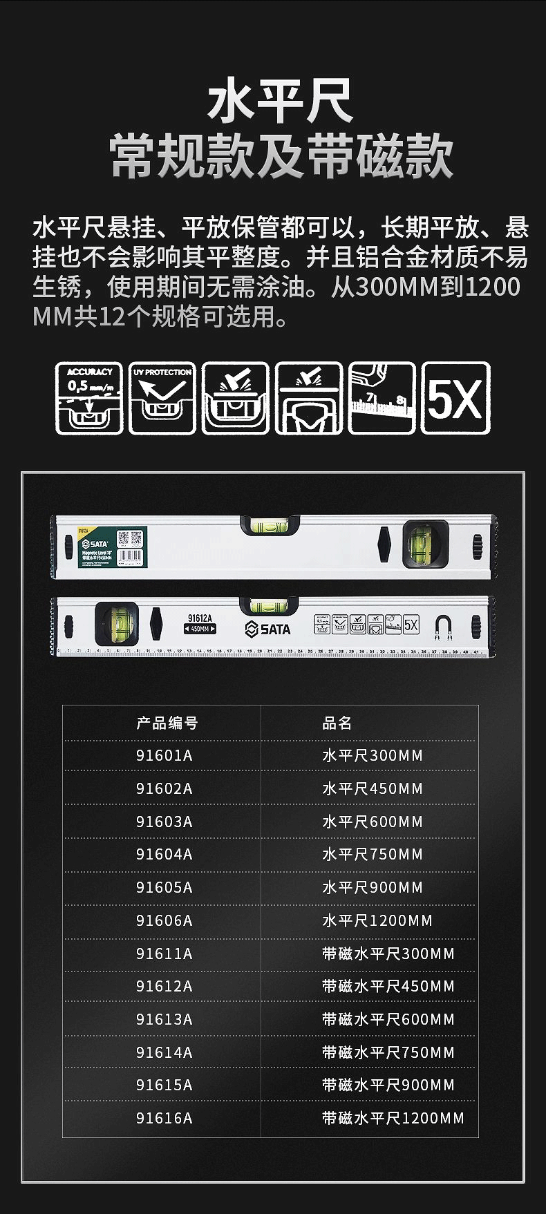 Star Star level high-precision small level ruler measuring ruler with magnetic vertical detection ruler balance ruler 91601A_300MM_12_