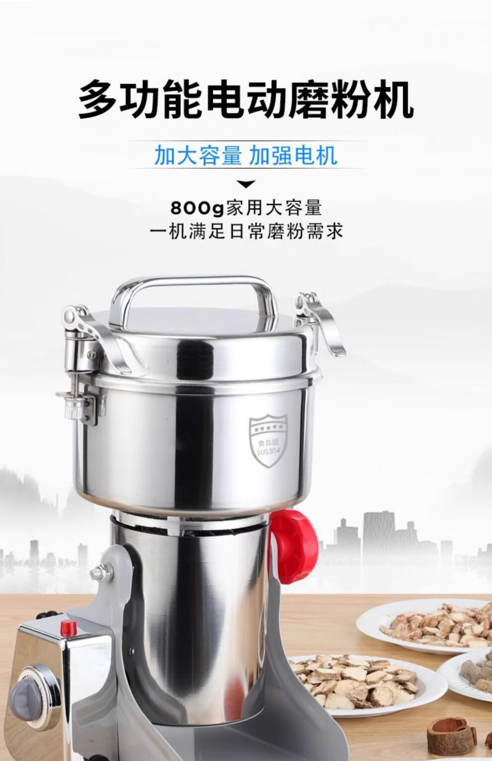 OEMG German Chinese herbal medicine crusher ultra-fine grinding household small electric dry grinder multi-functional crushing grinder Lingsheng 800g copper motor 430 crushing bin_