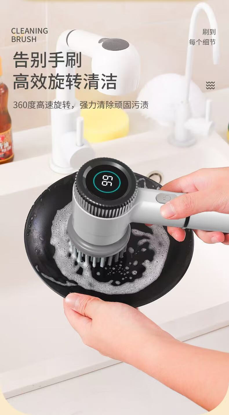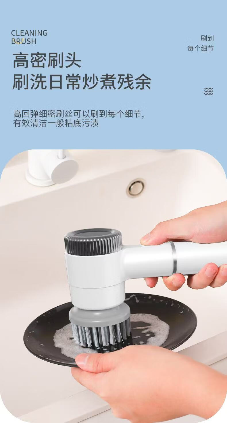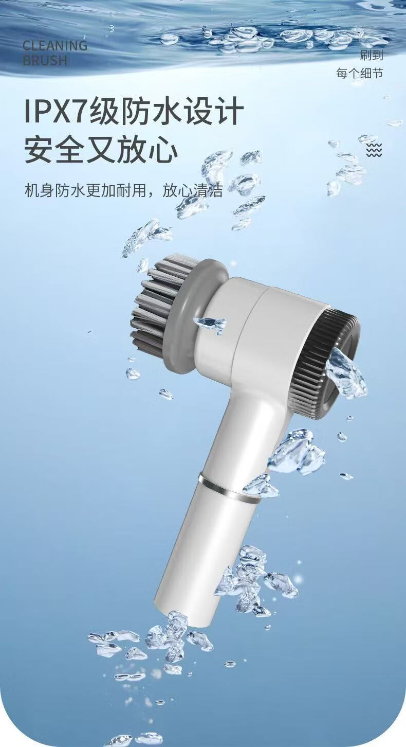 Royalstar multifunctional electric cleaning brush, household shoe scrubbing brush, fully automatic dishwashing brush, shoe cleaning brush, cleaning brush that does not hurt your hands, silver gray, upgraded electric brush set + five replacement heads