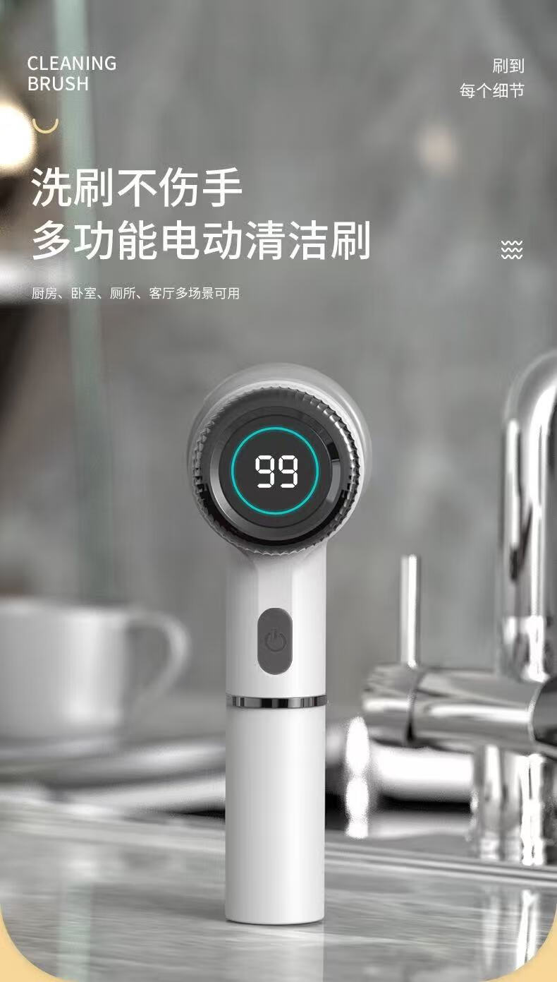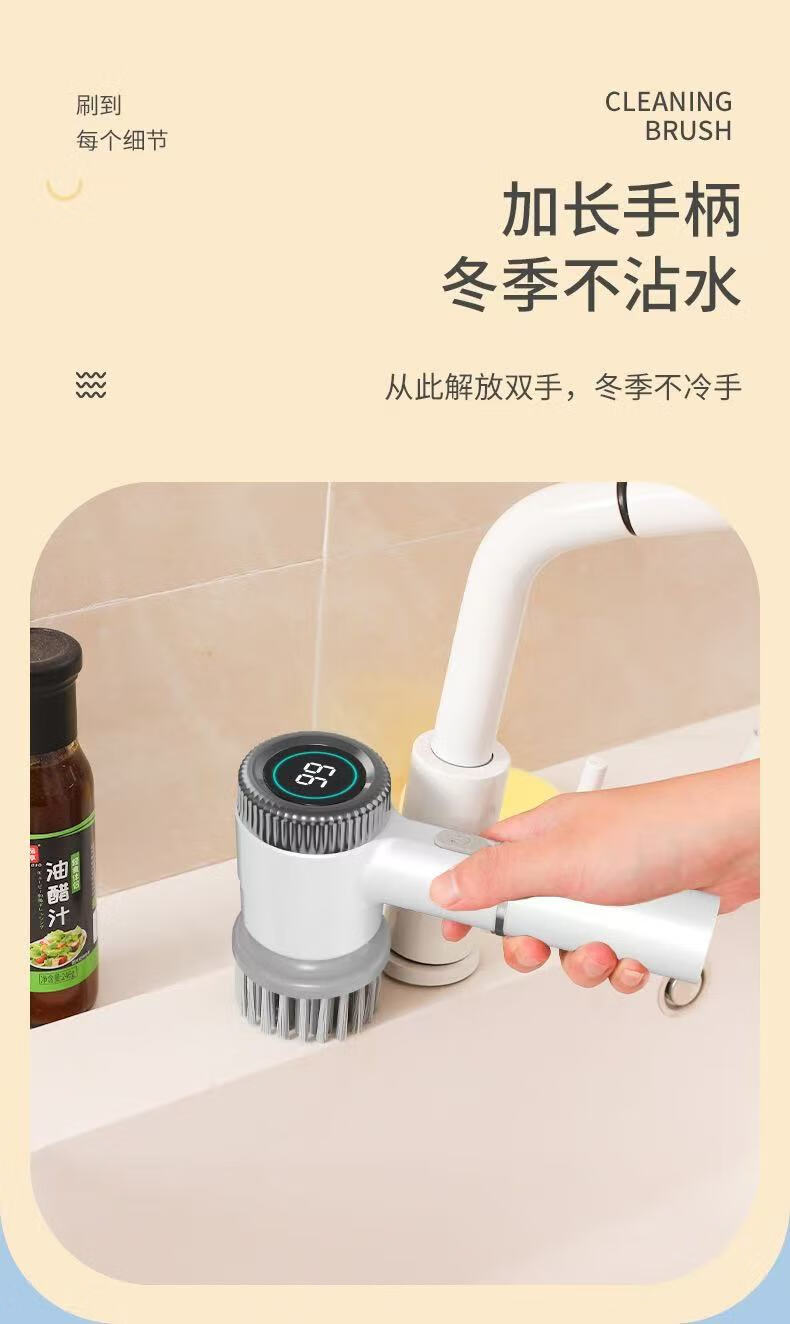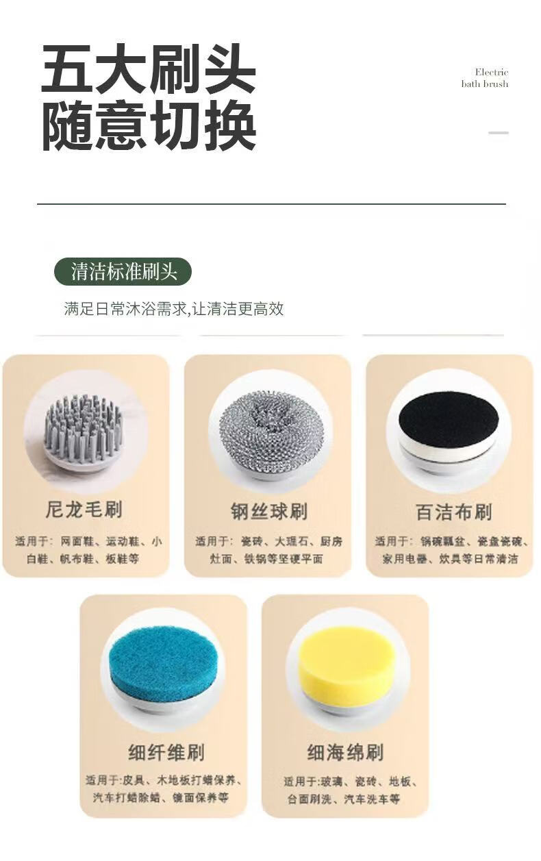 Royalstar multifunctional electric cleaning brush, household shoe scrubbing brush, fully automatic dishwashing brush, shoe cleaning brush, cleaning brush that does not hurt your hands, silver gray, upgraded electric brush set + five replacement heads