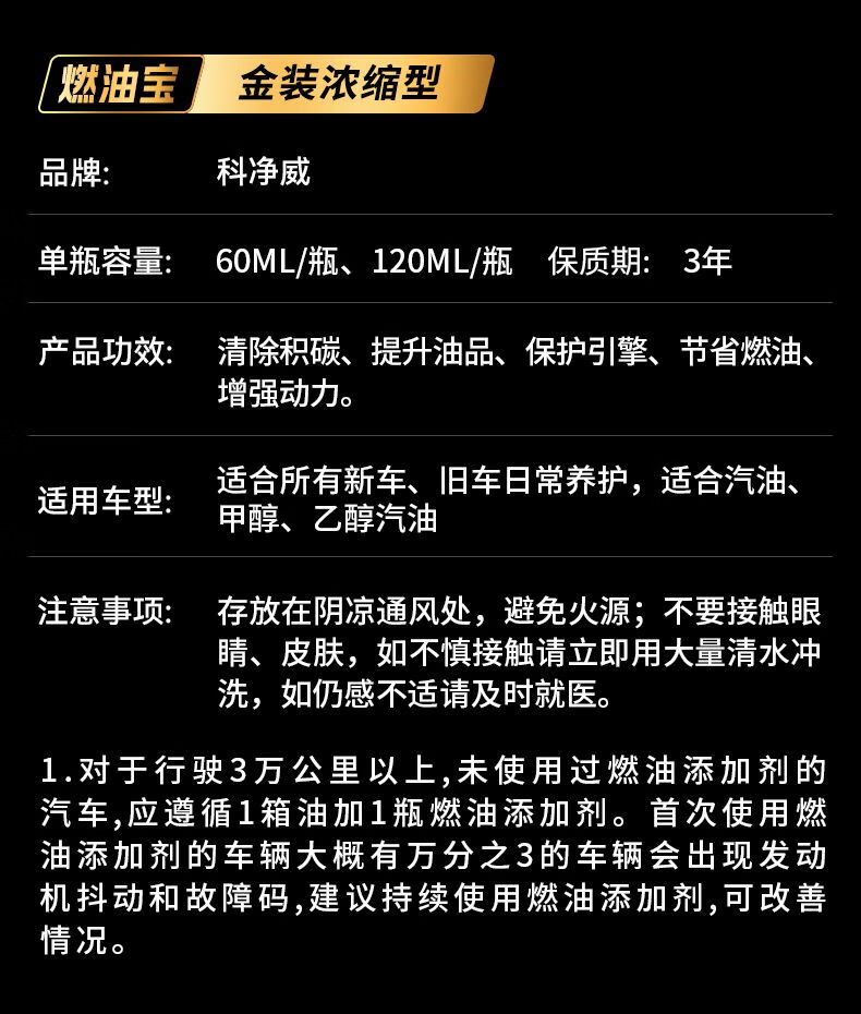 Kejingwei fuel treasure removes carbon deposits and is suitable for Camry Corolla Highlander Asia Dragon and Ralink Crown 0-20,000 kilometers 60ml*3 bottles of fuel treasure