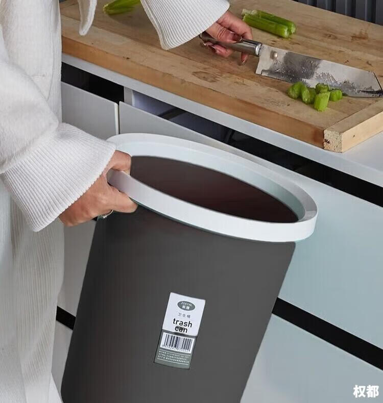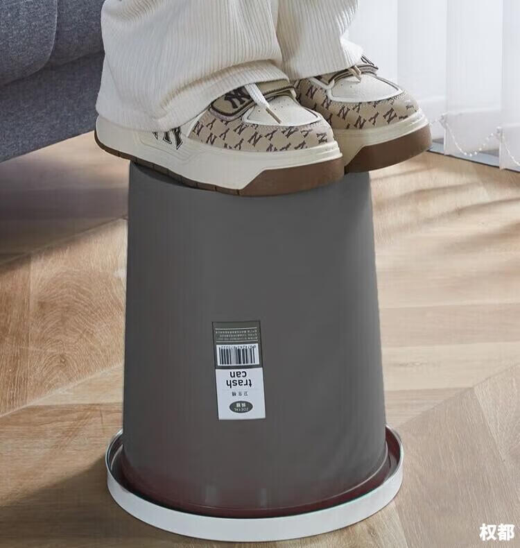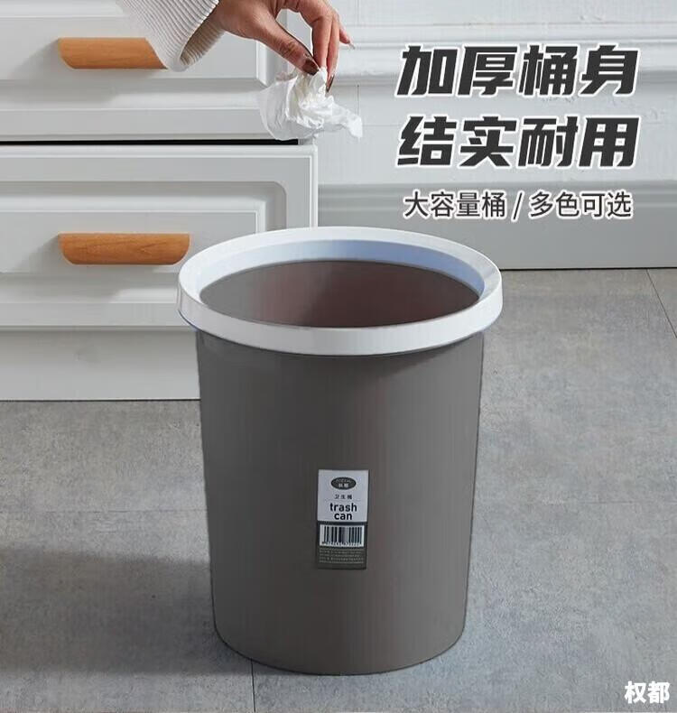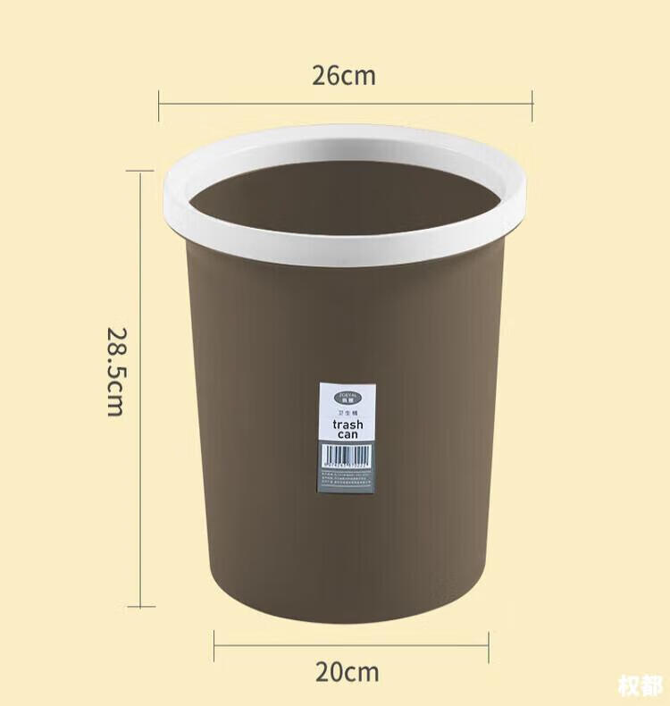 Trash can press ring household thickening living room kitchen bedroom large bathroom lidless paper basket brown 1 pack