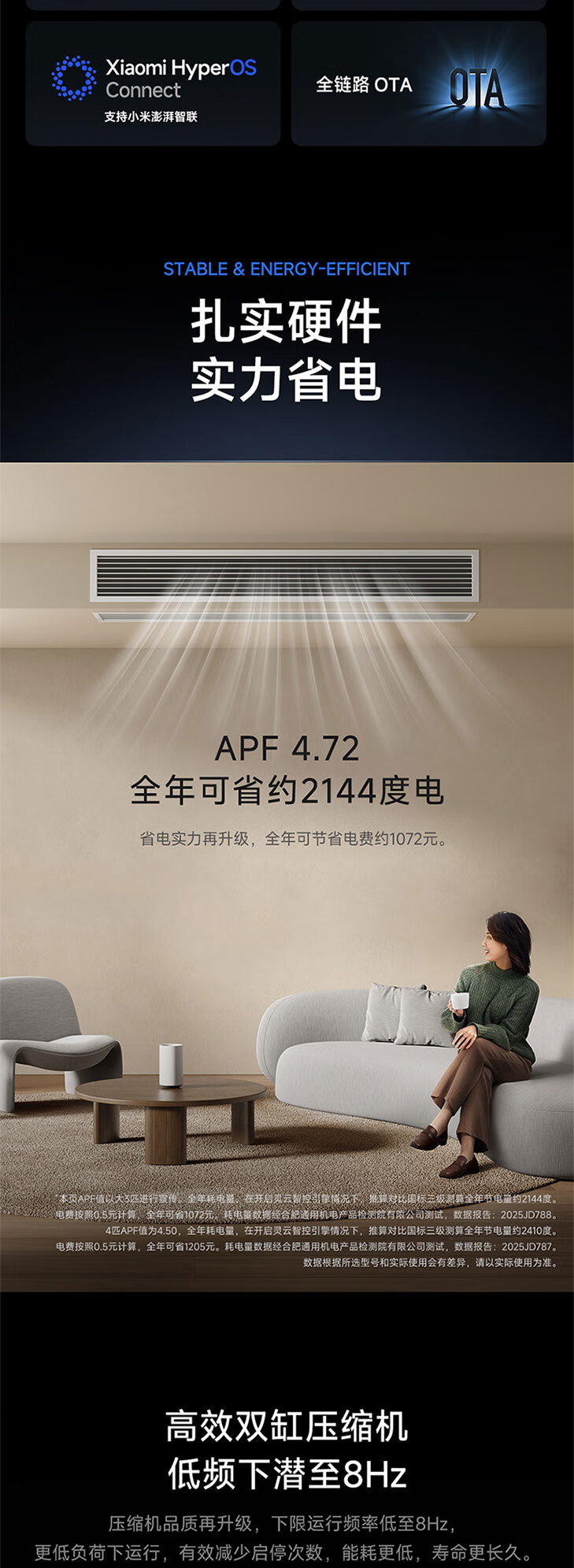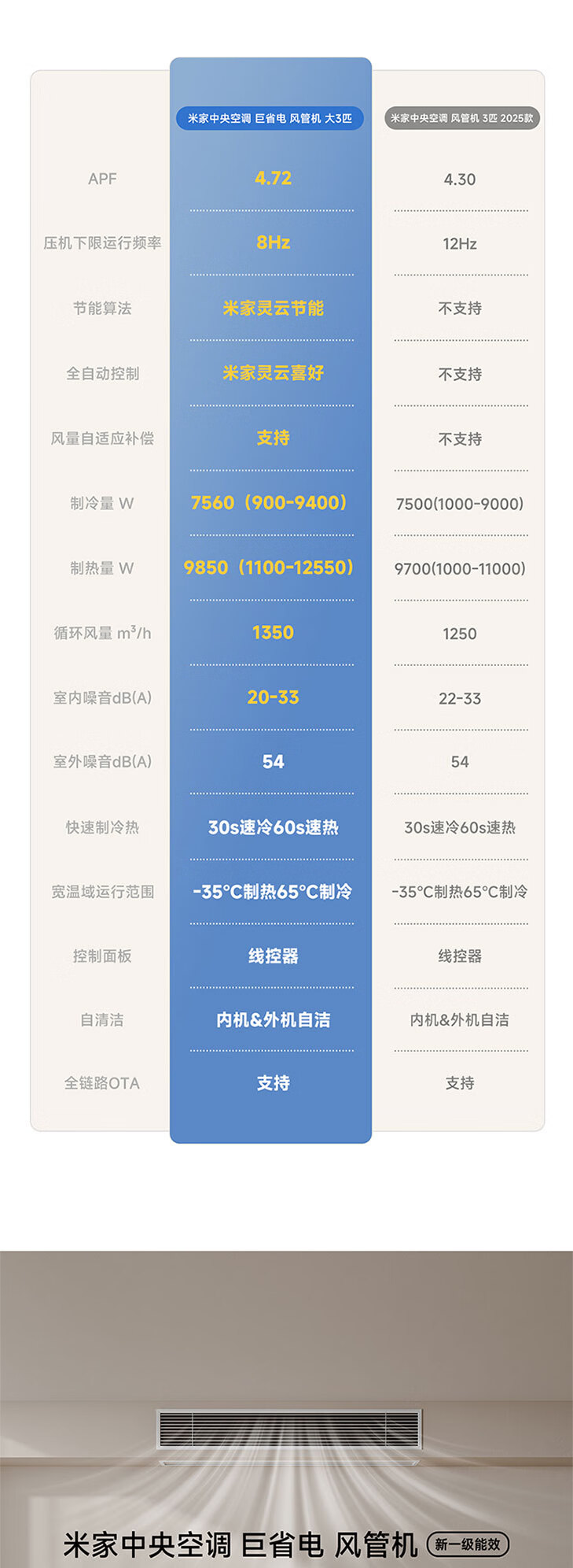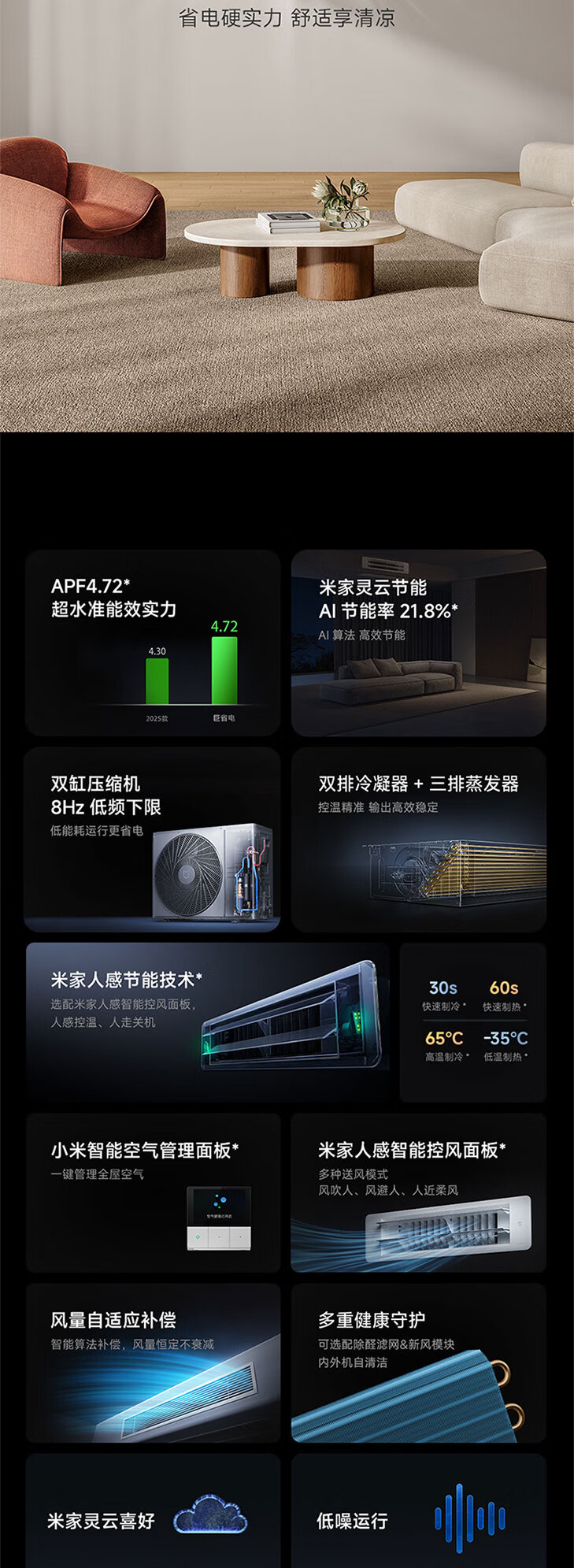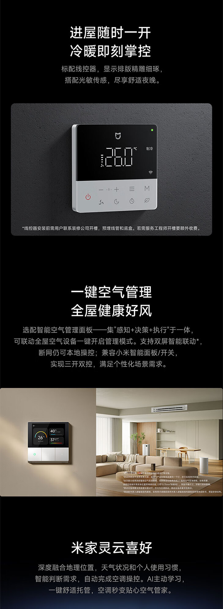 Xiaomi central air conditioner 3 hp Pro one-to-one duct machine Mijia full DC variable frequency multi-split air conditioner Super first-class energy efficiency 3 hp 75FW-OC20/N3B1 3 hp super first-class energy efficiency