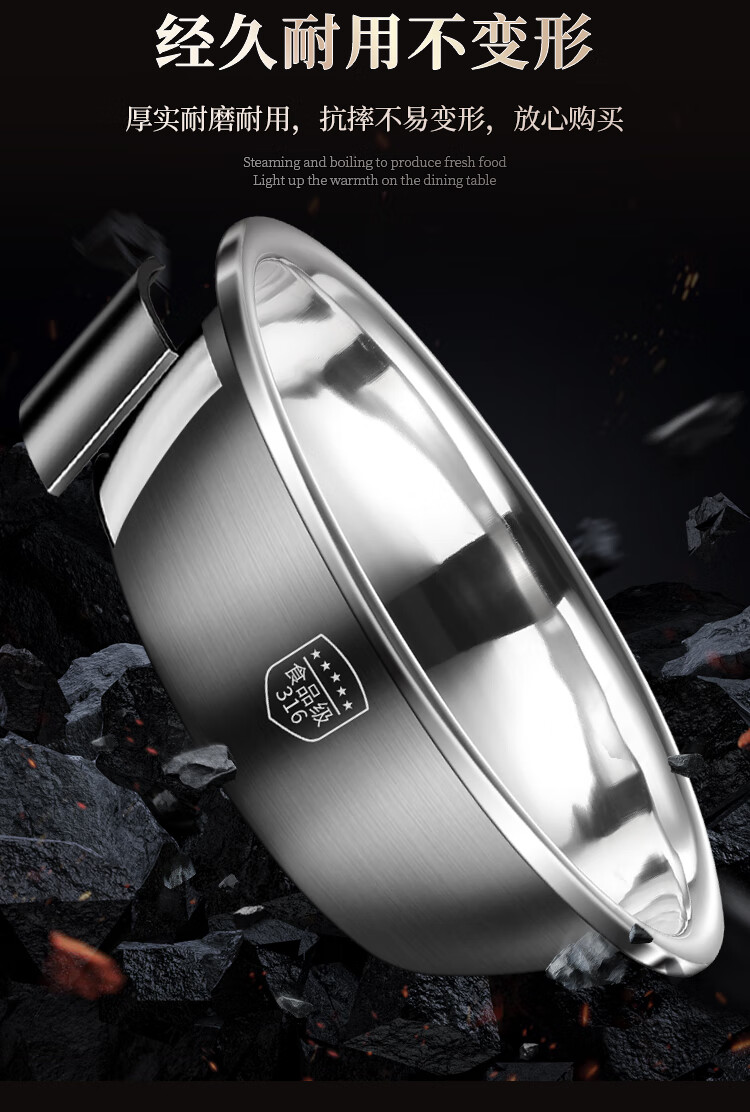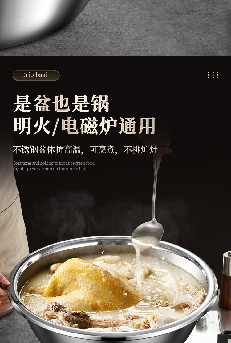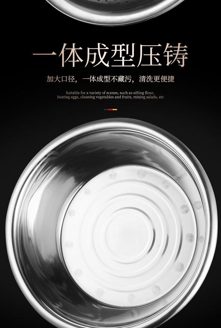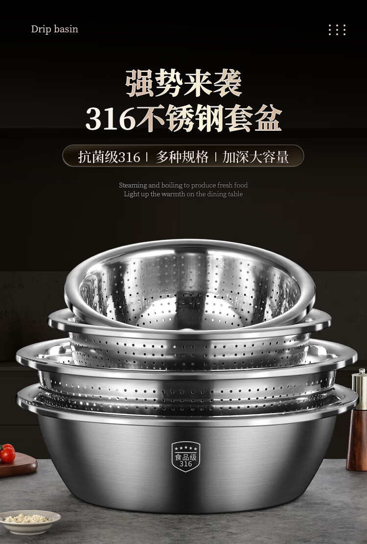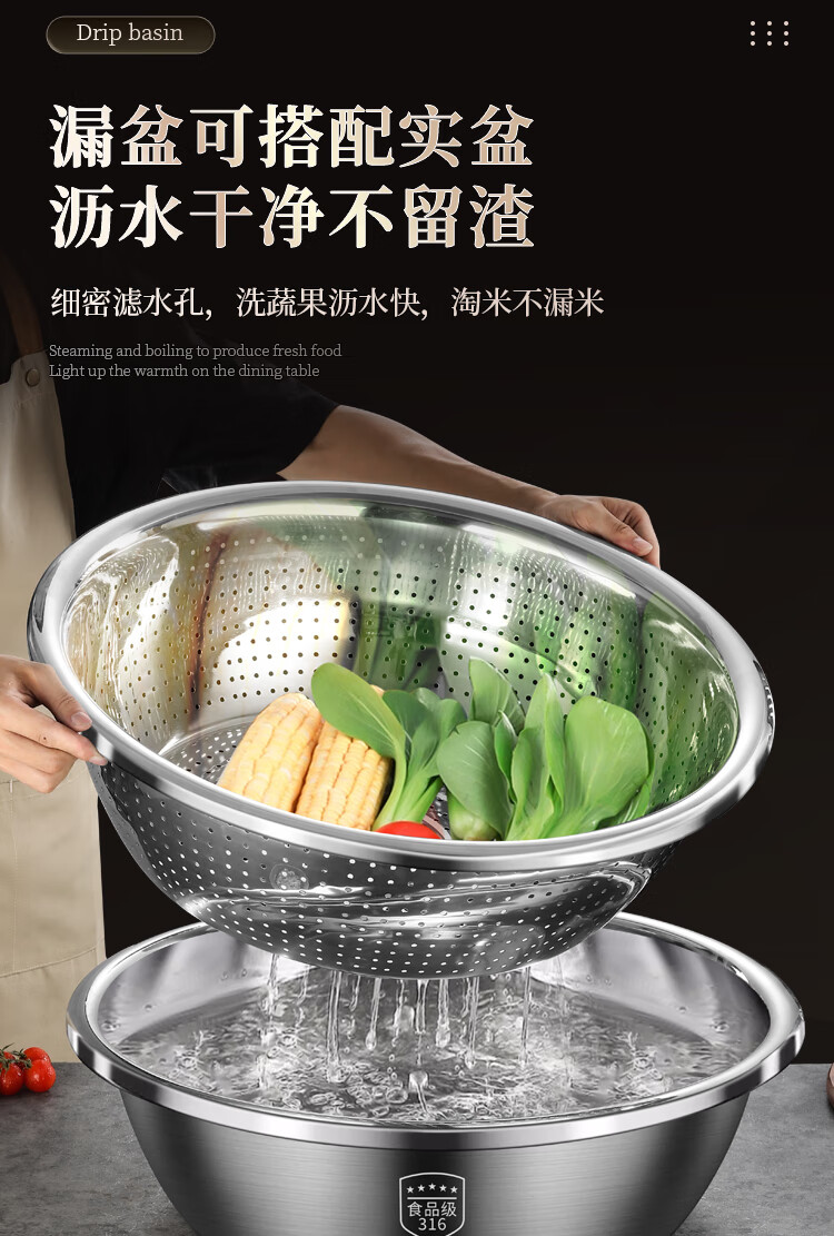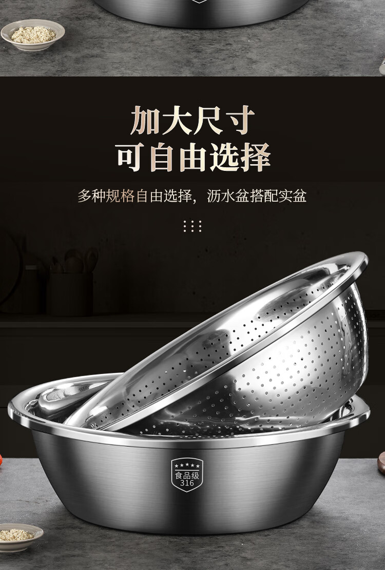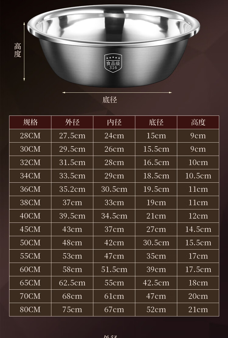 Food grade 316 stainless steel basin for home kitchen egg-beating and basin for washing vegetables and baking extra large basin extra thick soup basin 316 steel solid basin 28cm
