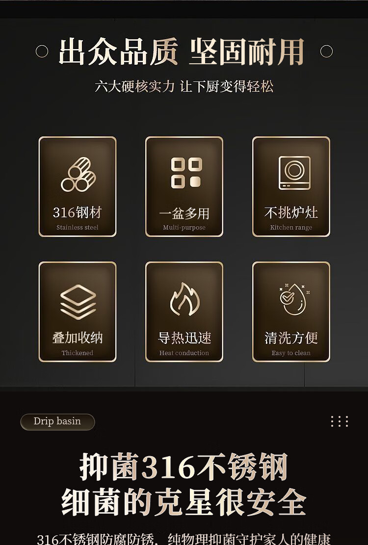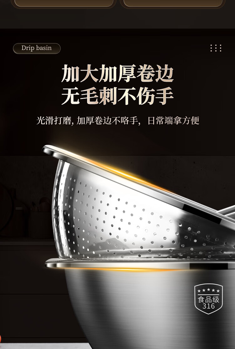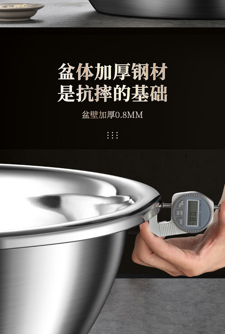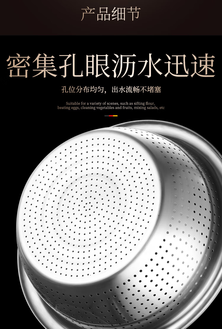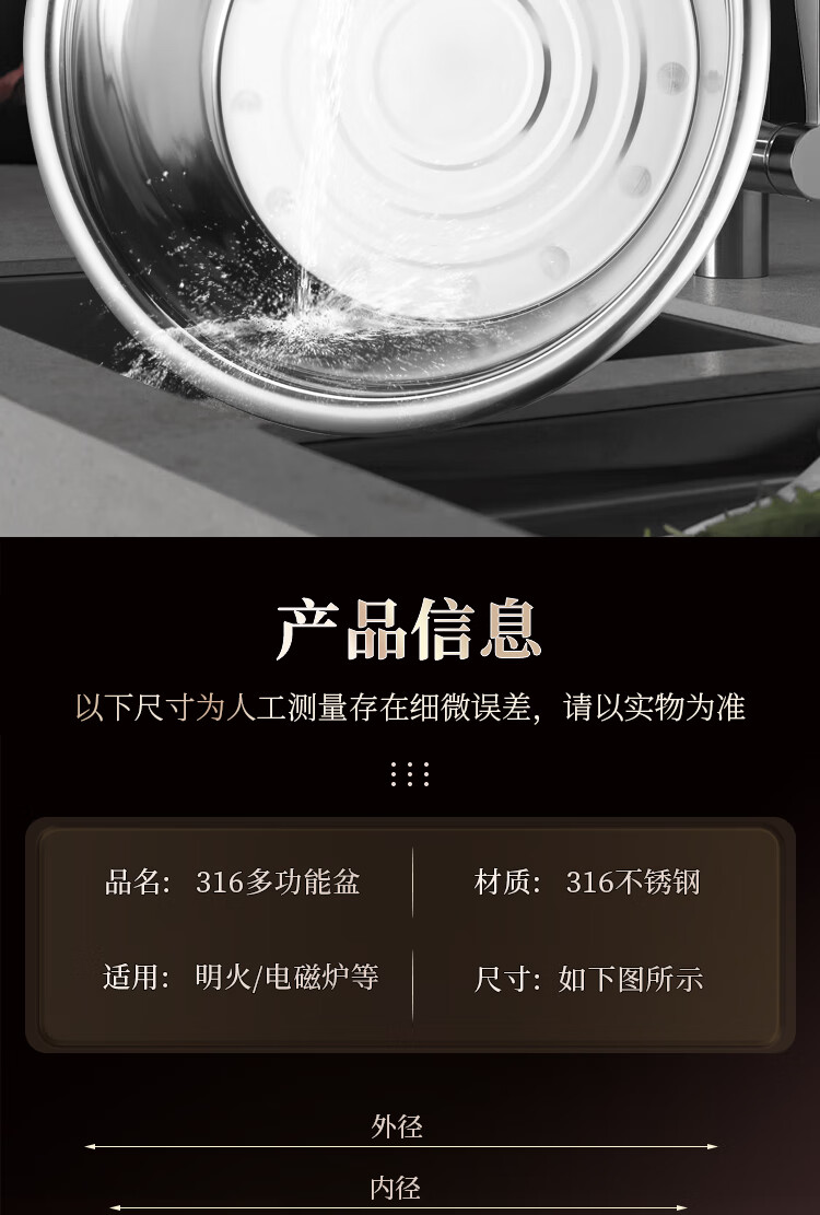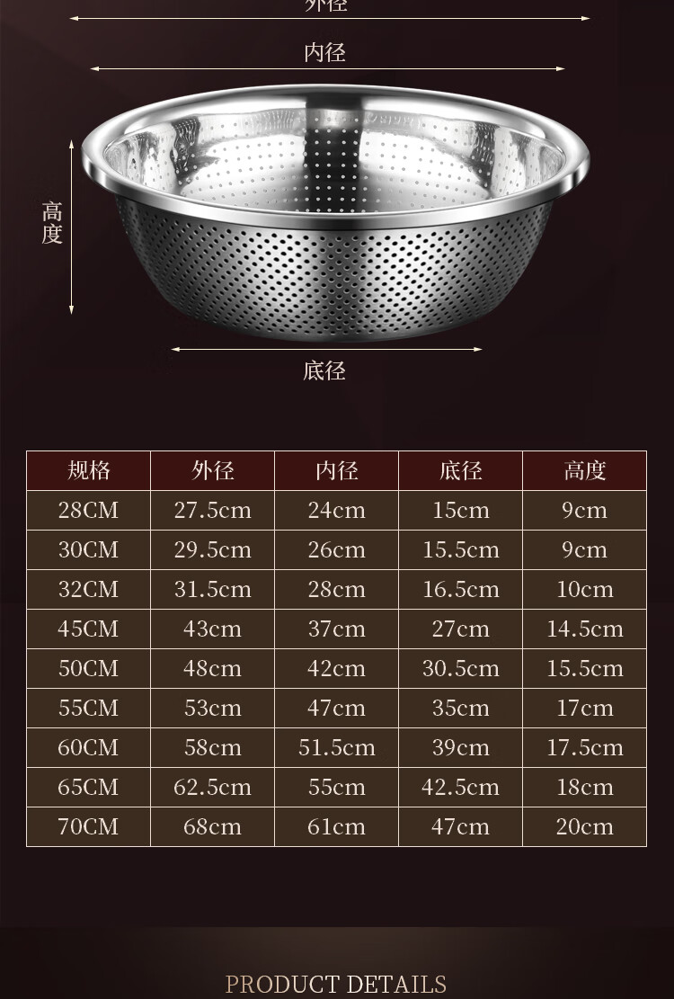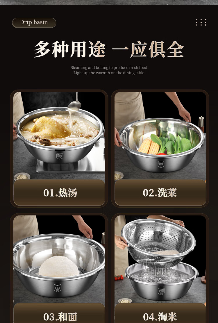 Food grade 316 stainless steel basin for home kitchen egg-beating and basin for washing vegetables and baking extra large basin extra thick soup basin 316 steel solid basin 28cm