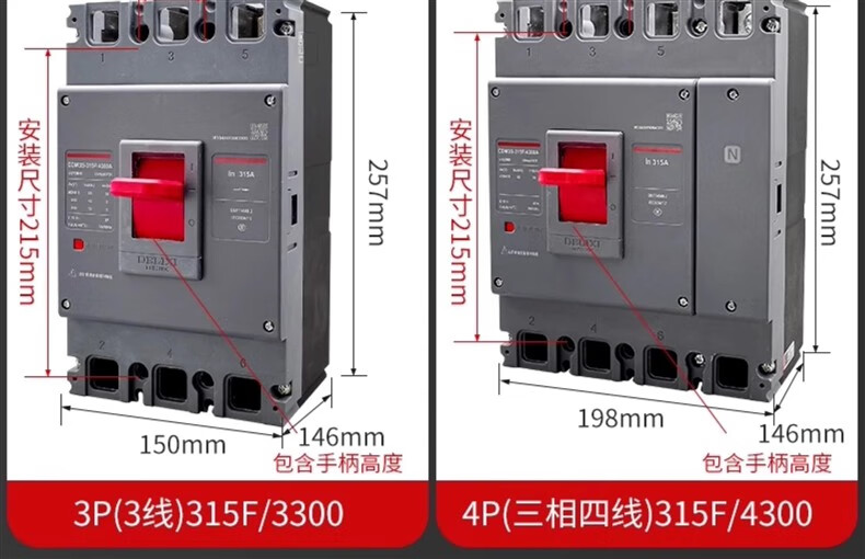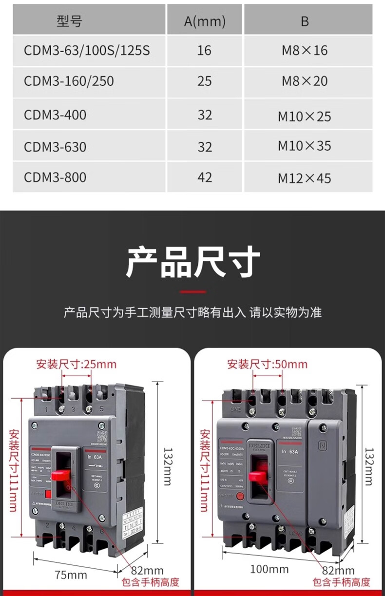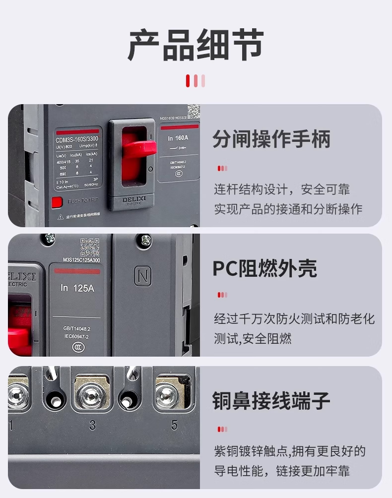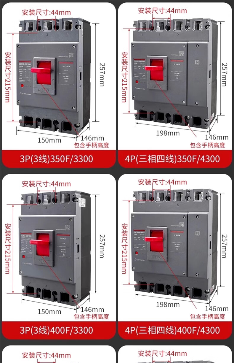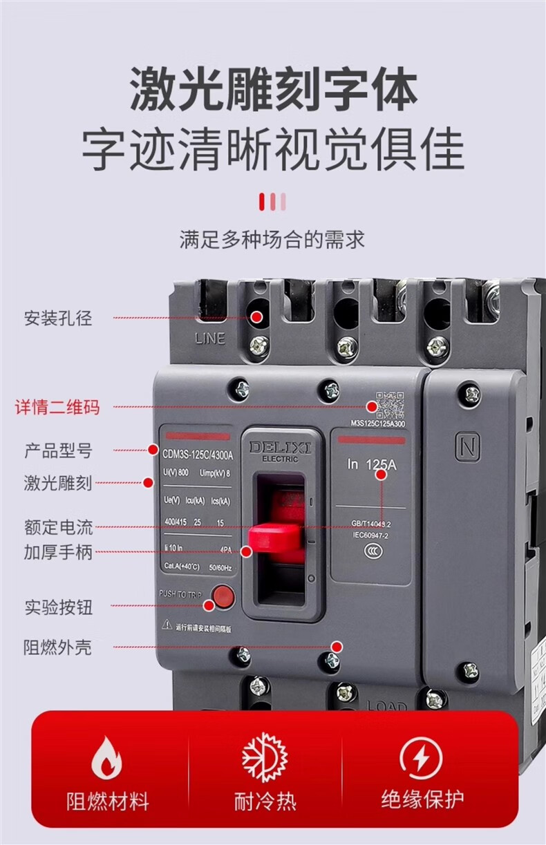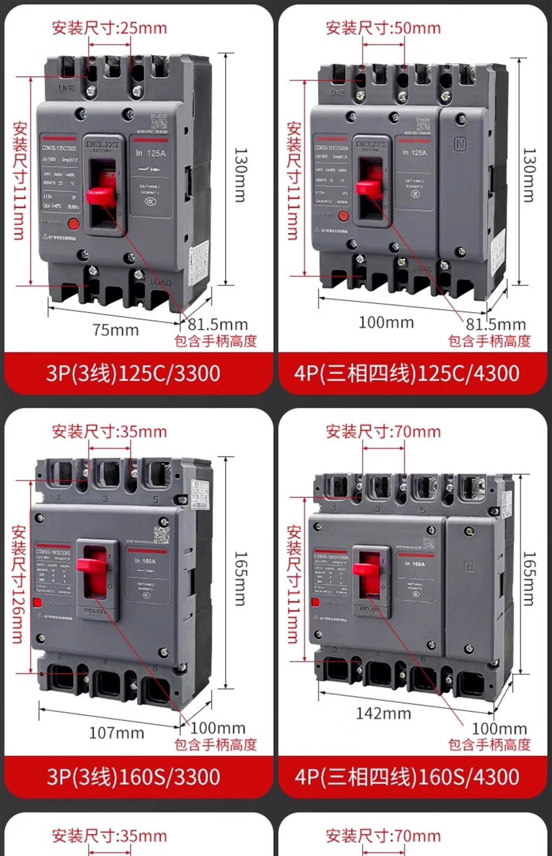 Delixi plastic case circuit breaker air switch CDM3 CDM3S 63A100A125A250A 1000A 3P