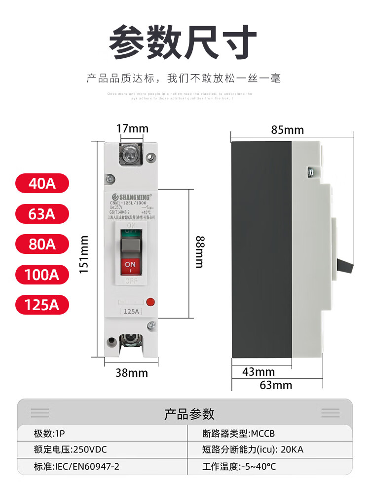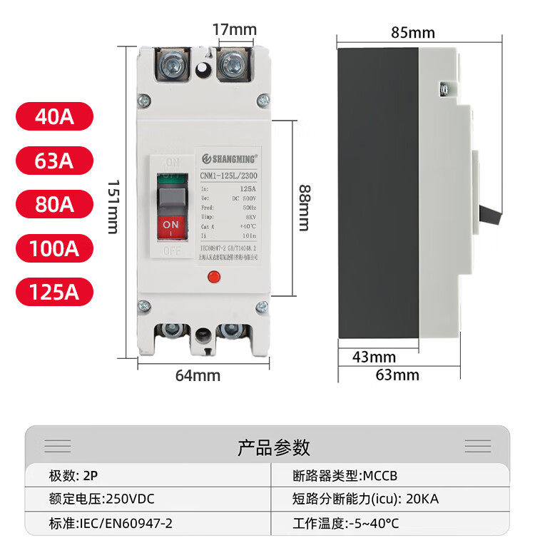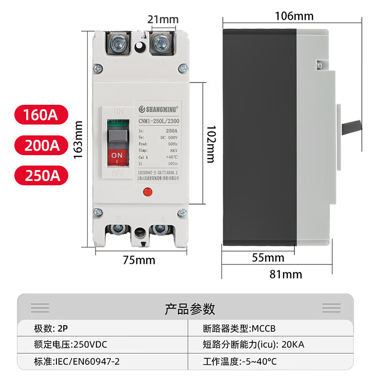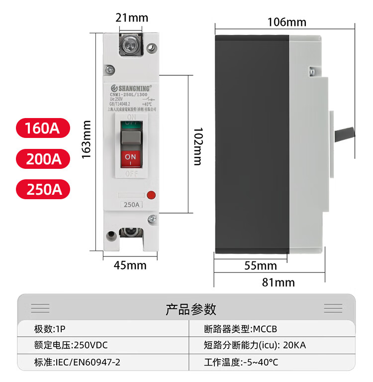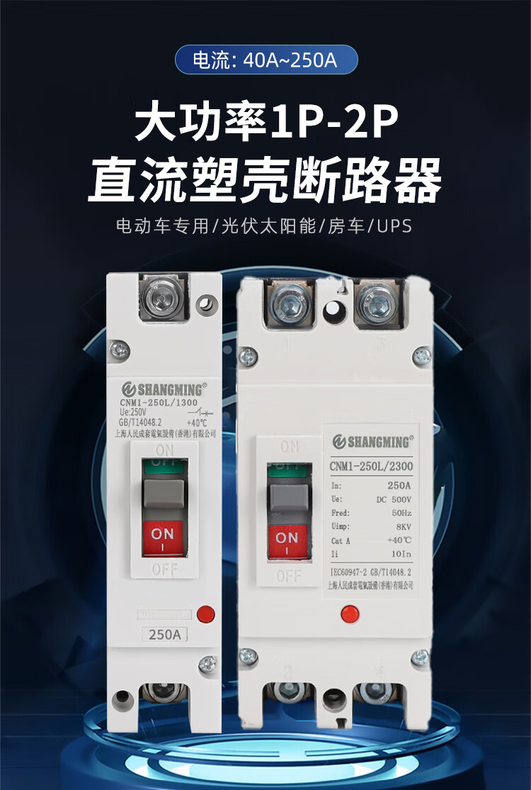 Shanghai People's DC air switch molded case circuit breaker 2P125A200A250ADC500V 2P 100A