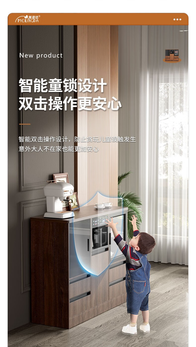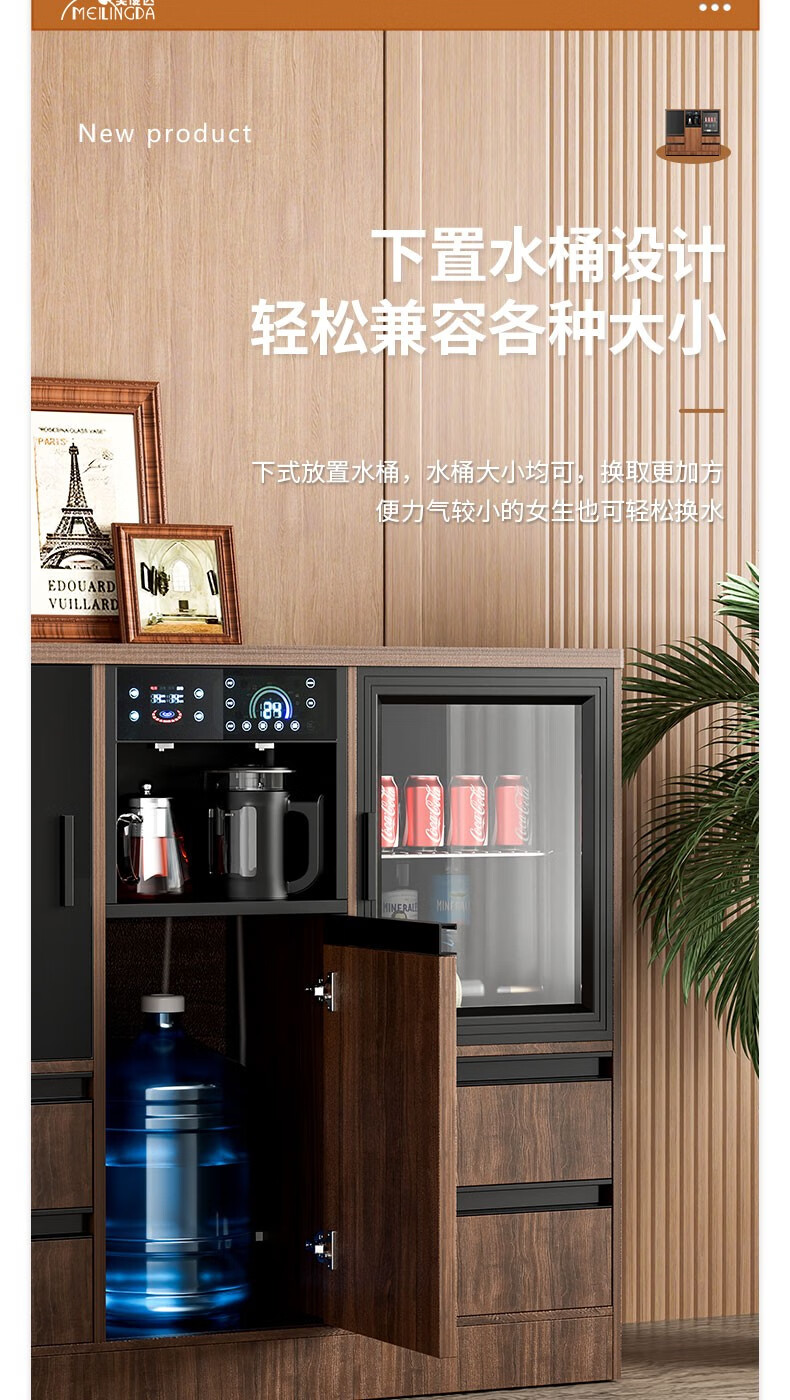 Meilingda 2025 new home smart voice solid wood fully automatic tea bar mechanism ice machine refrigerator refrigeration bottle sterilizer cabinet sideboard high-end living room water dispenser tea integrated cabinet solid wood voice 837 walnut color (refrigerator refrigeration) instant cooling type