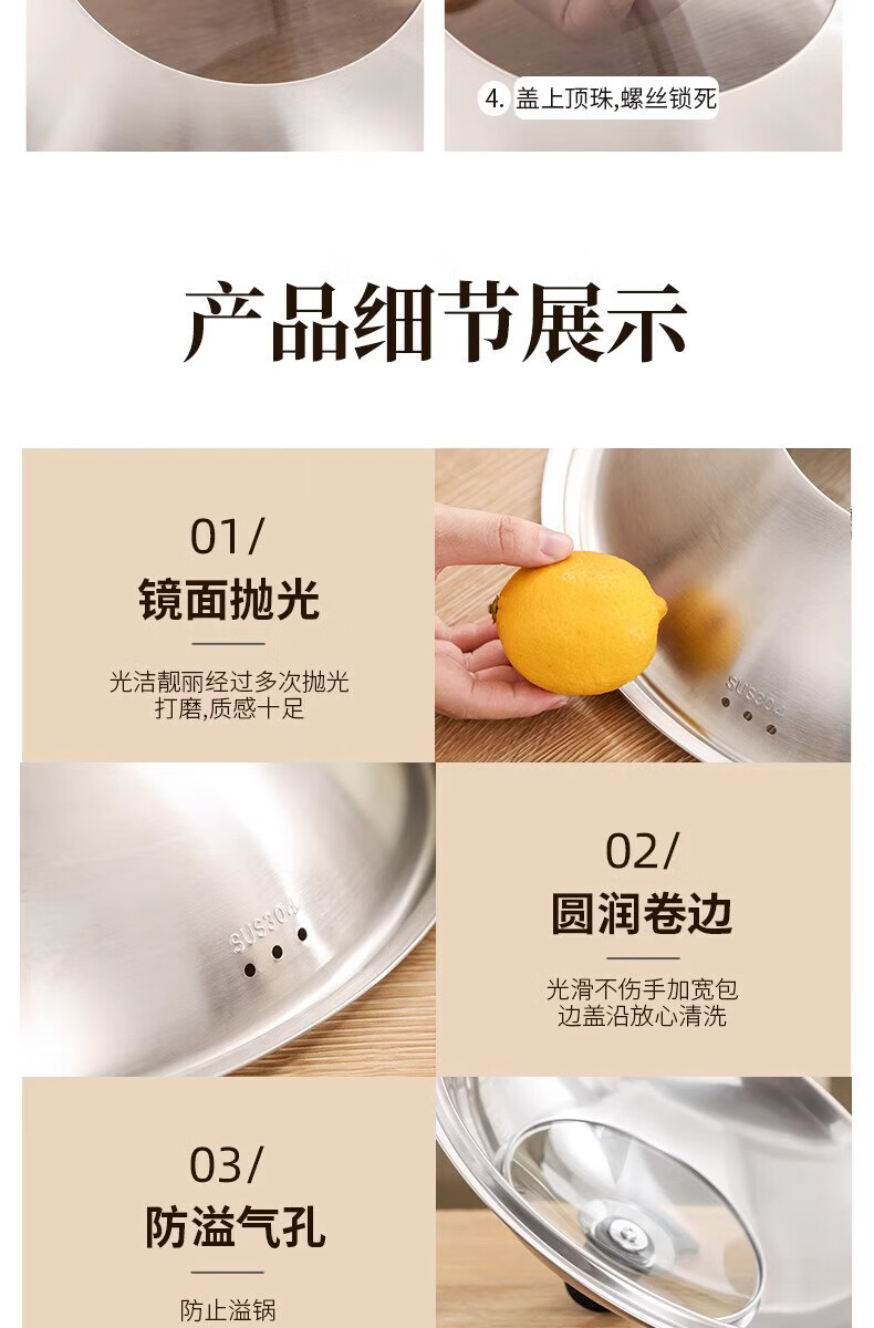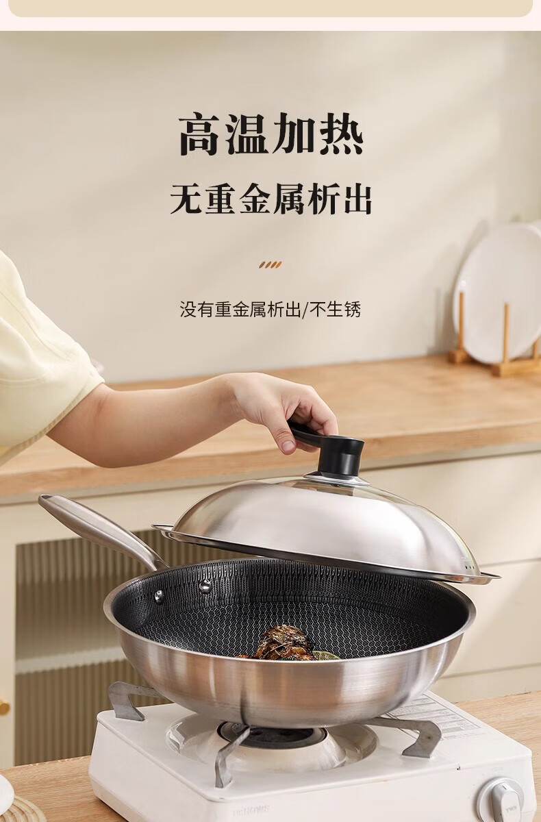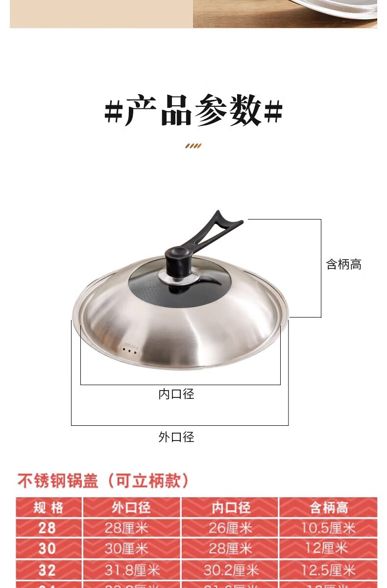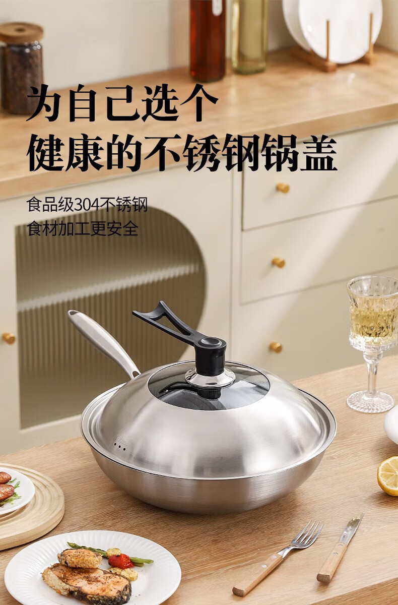 The same style as Fat Donglai recommended by Yangma, thickened pure 304 food-grade stainless steel pot lid, household separate wok, stir-fry pot, anti-scalding pot lid) 304 material 32cm