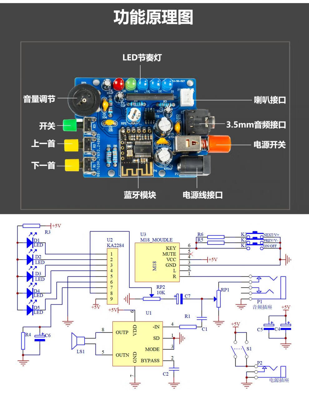 Bluetooth audio electronic DIY kit mobile phone amplifier speaker circuit board production teaching training TJ-56-527A kit