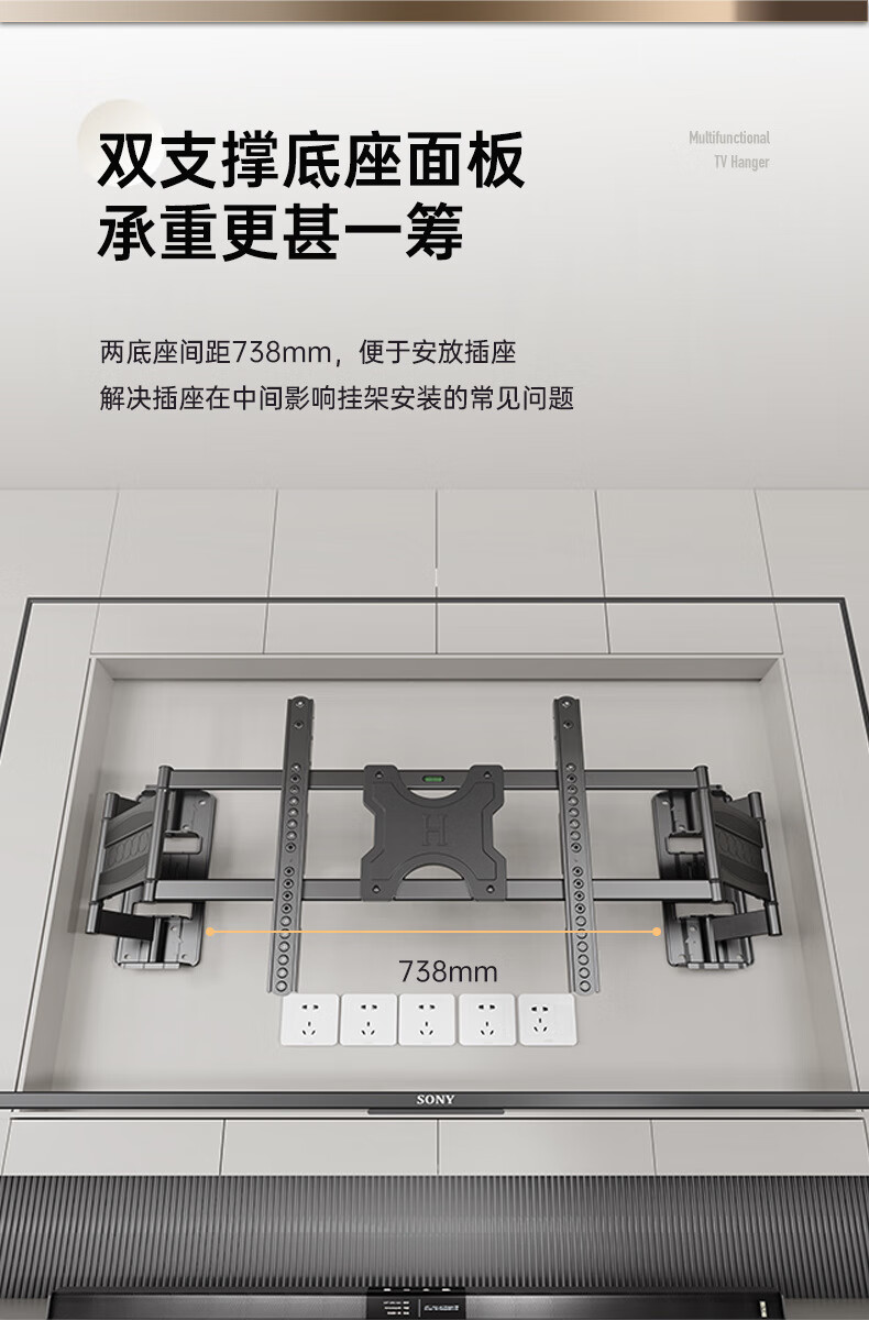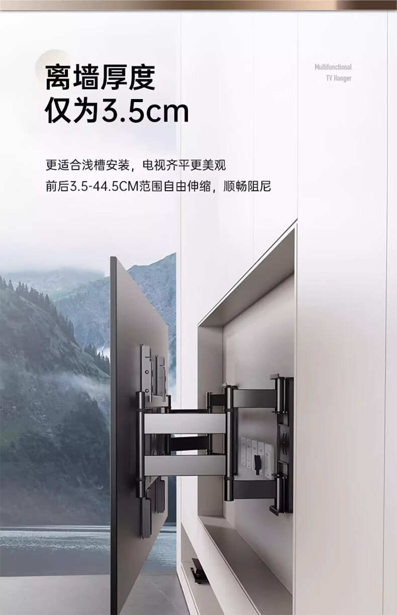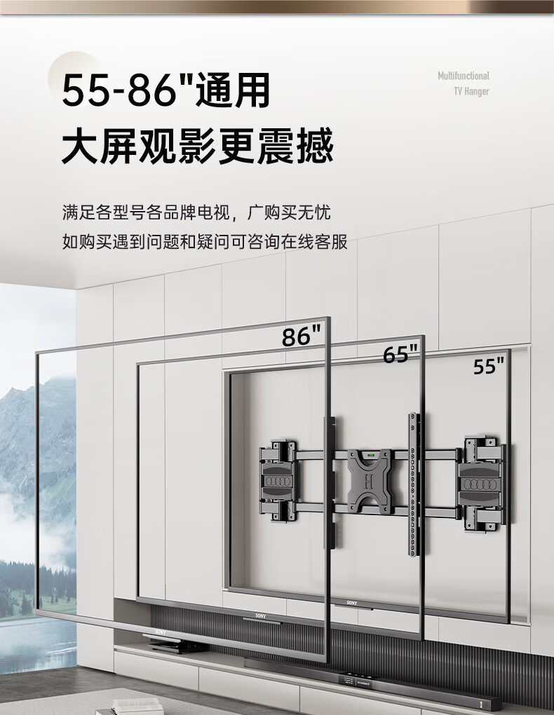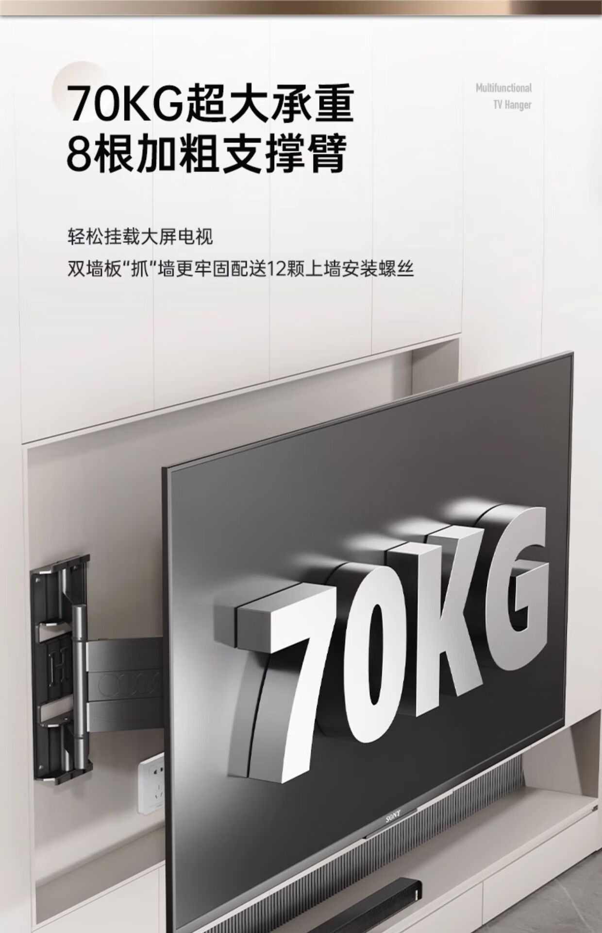 Beishi TV bracket thin TV telescopic hanger double wall rotating built-in non-blocking socket 8598 inches GH-75 32-75 inches universal double wall plate model is compatible