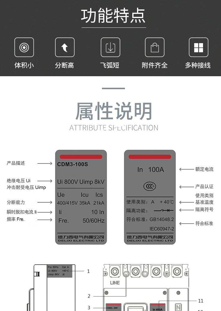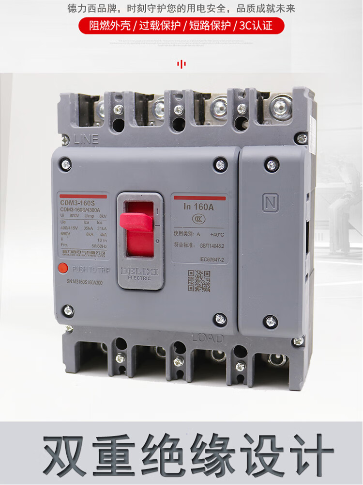 Air switch molded case circuit breaker 160A Delixi 3P4P100aCDM3 main switch three-phase four-wire 380V 1000A 3P
