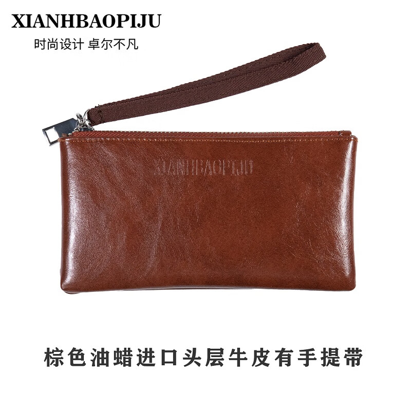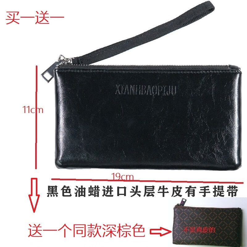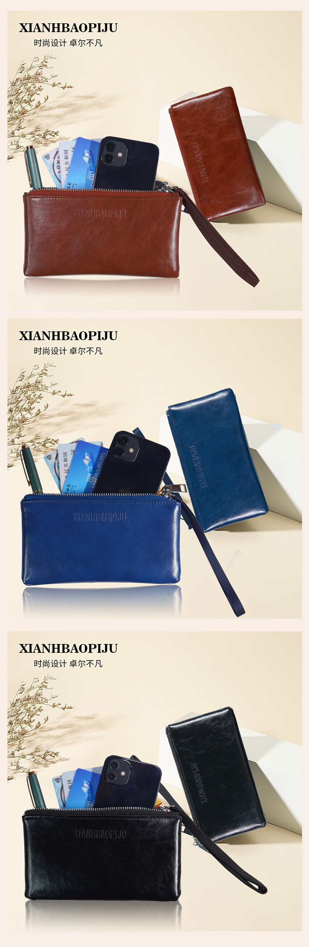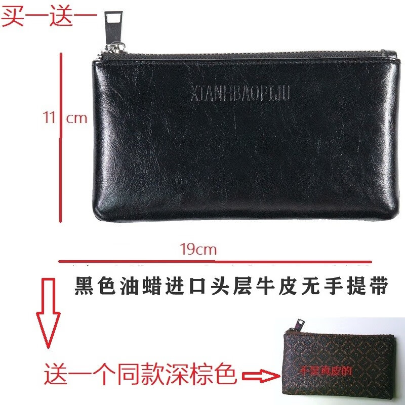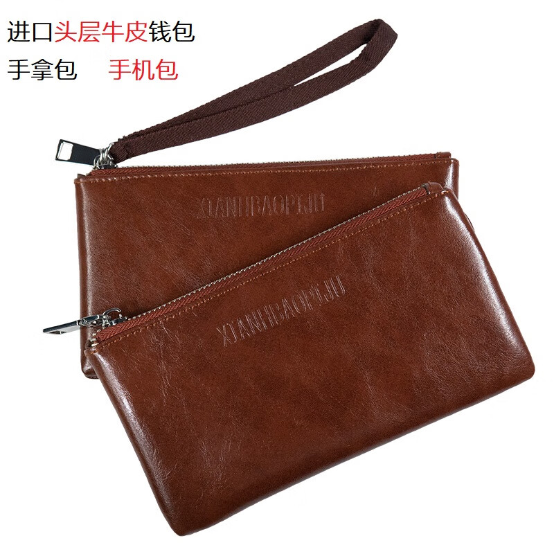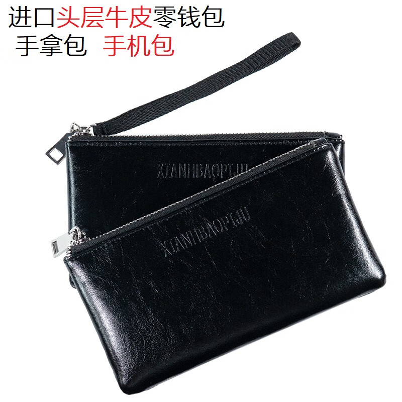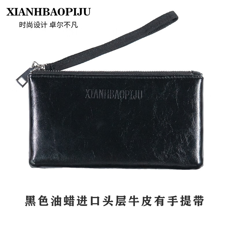 XIANHBAOPIJU02 imported first layer cowhide oil wax leather mobile phone bag clutch bag portable wallet large capacity handbag fashion cosmetic bag black oil wax imported first layer cowhide with hand strap