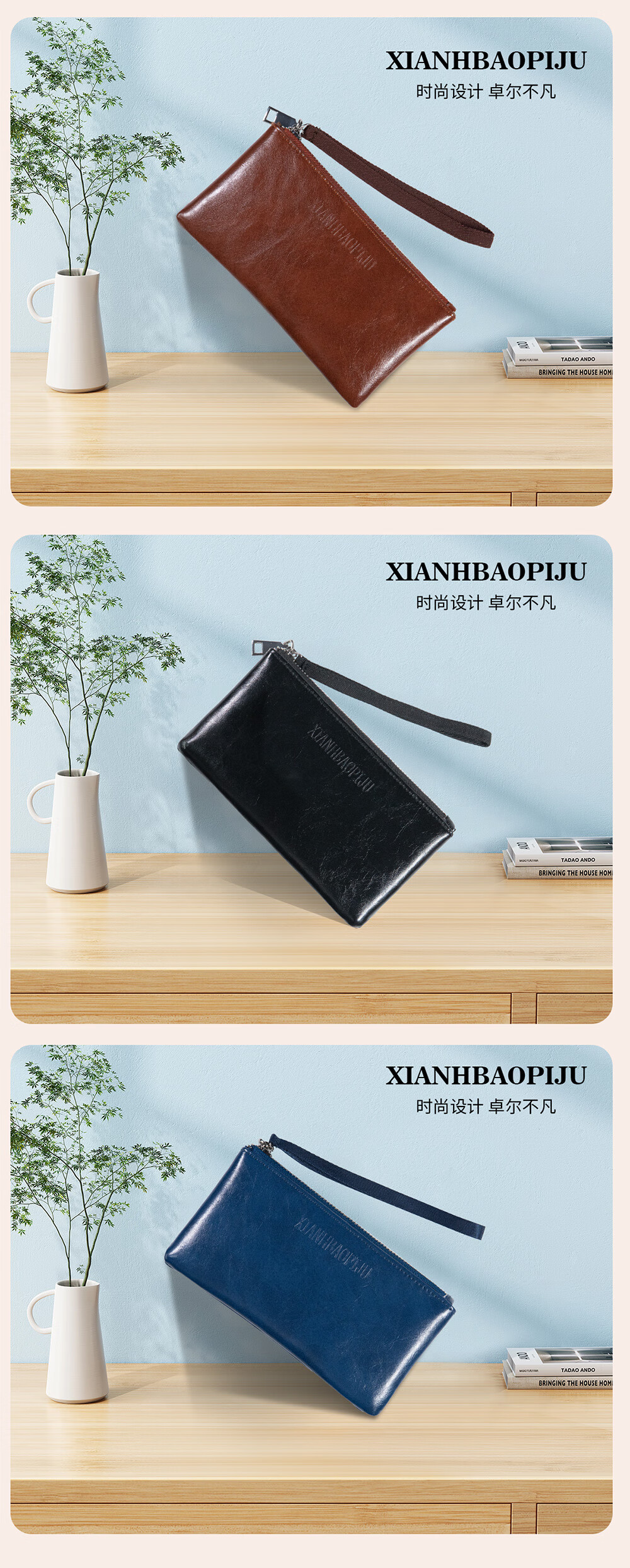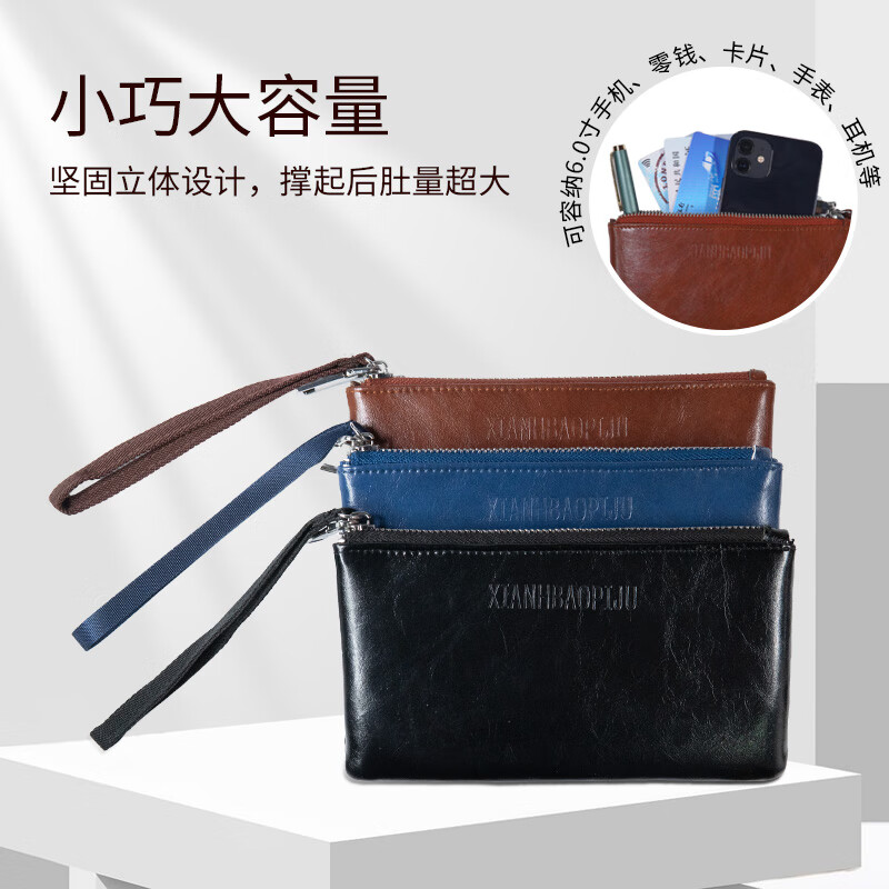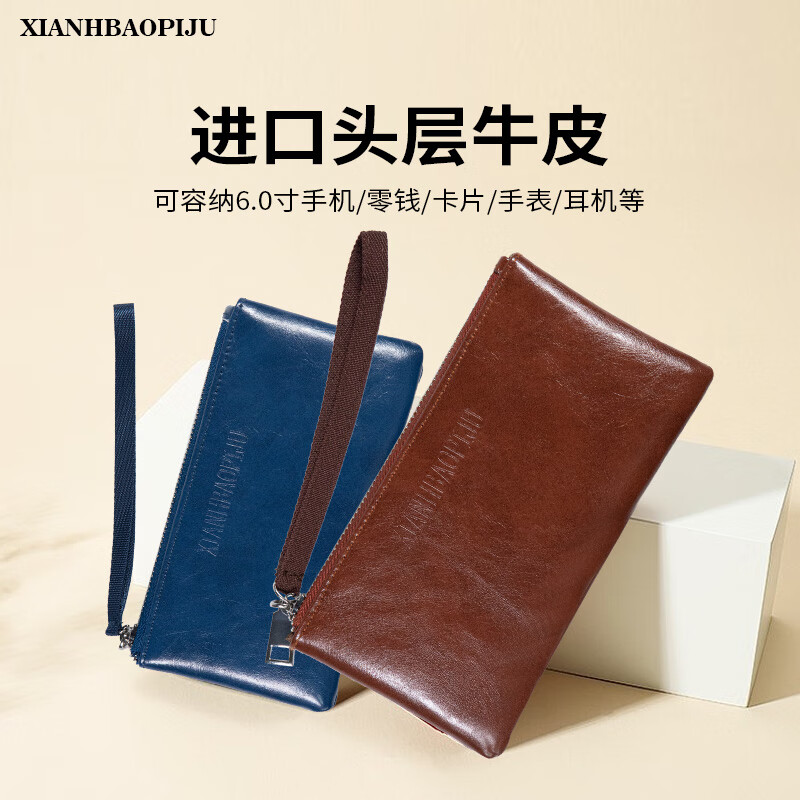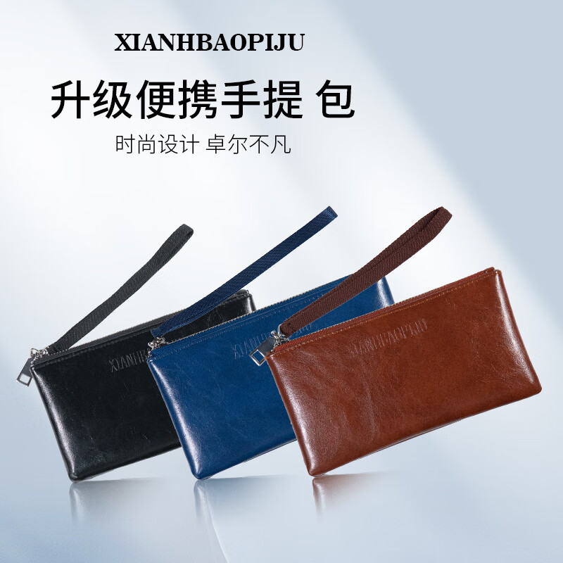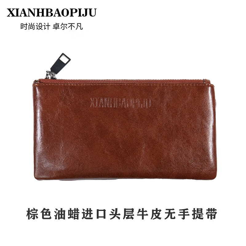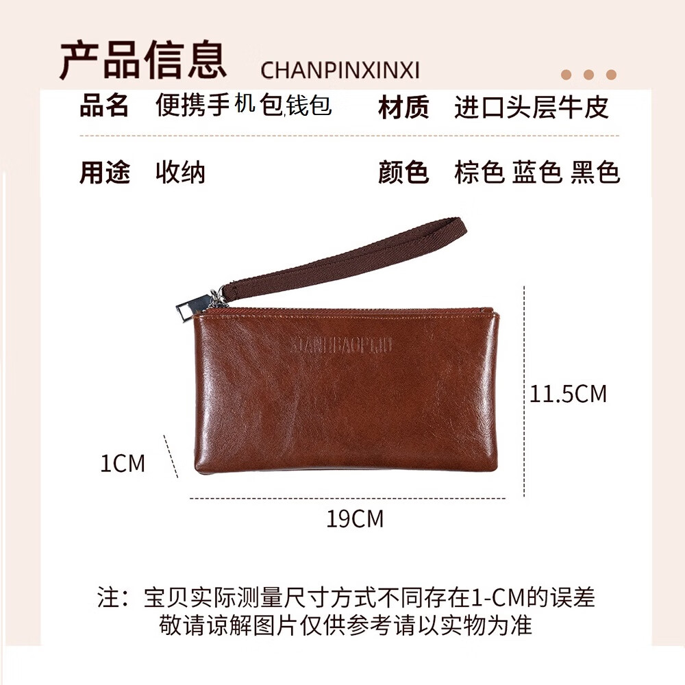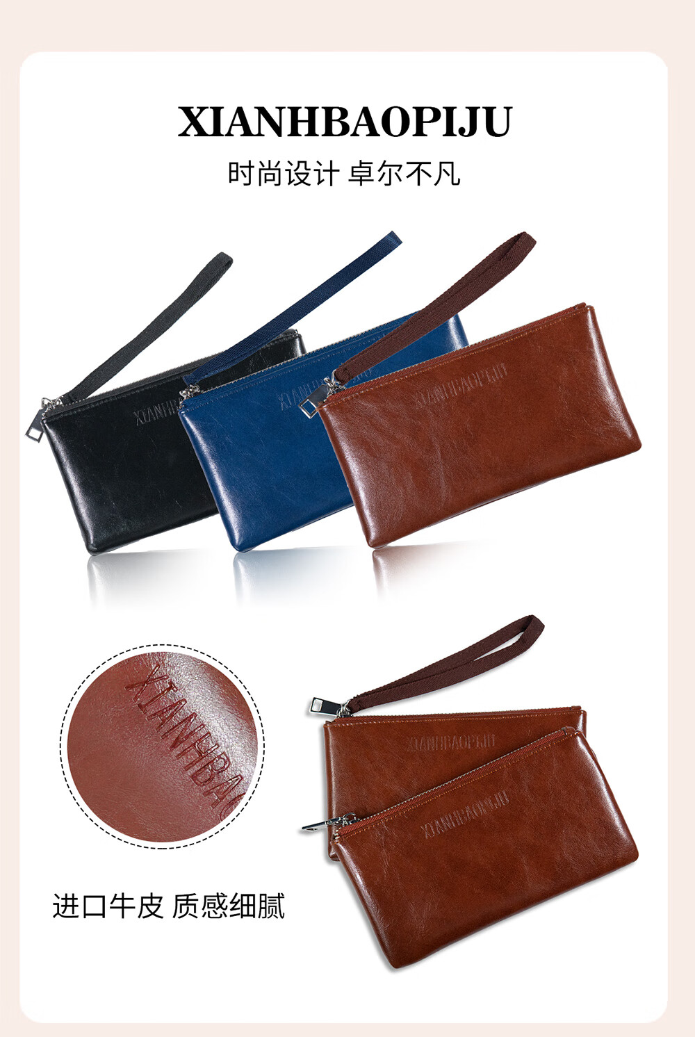 XIANHBAOPIJU02 imported first layer cowhide oil wax leather mobile phone bag clutch bag portable wallet large capacity handbag fashion cosmetic bag black oil wax imported first layer cowhide with hand strap