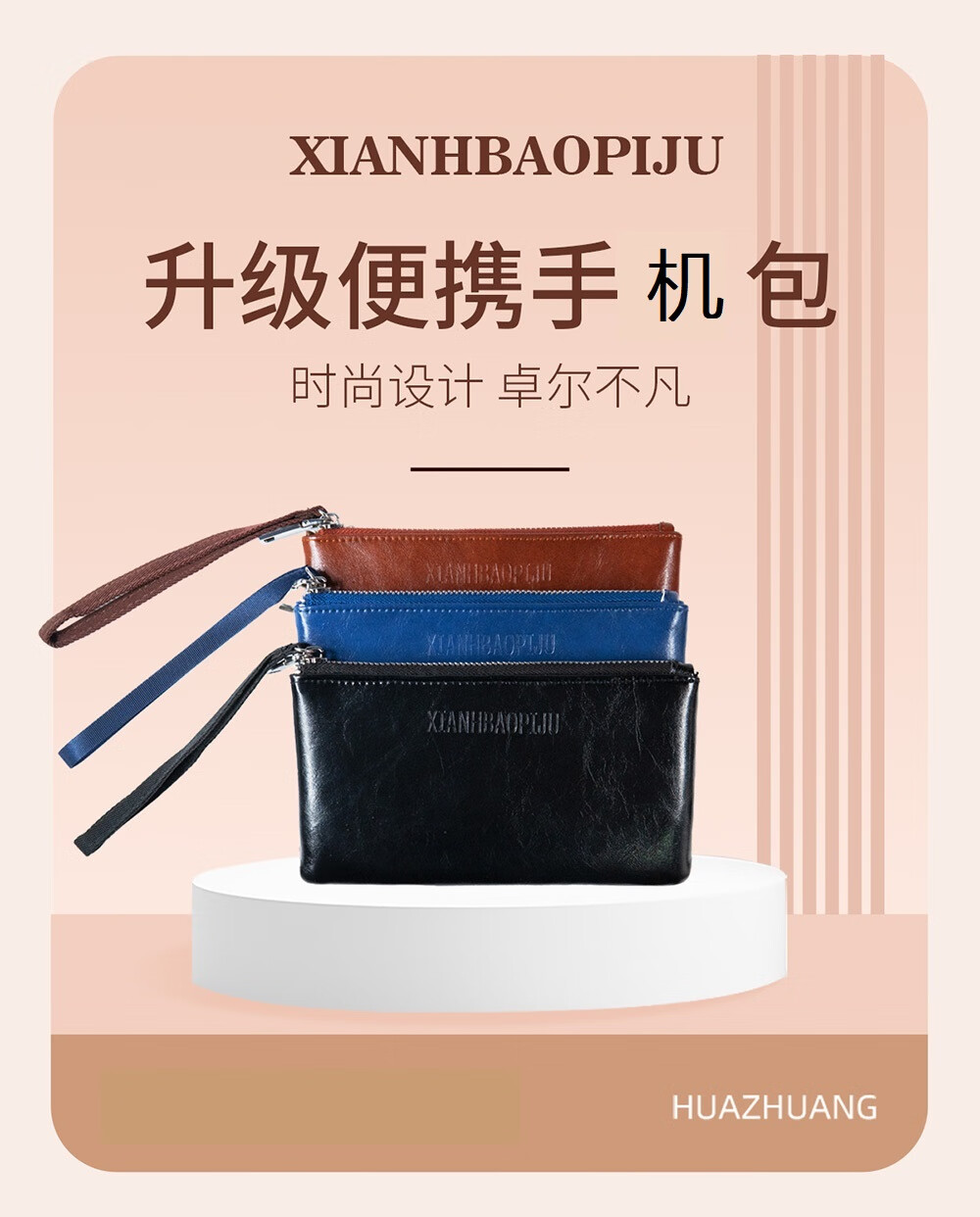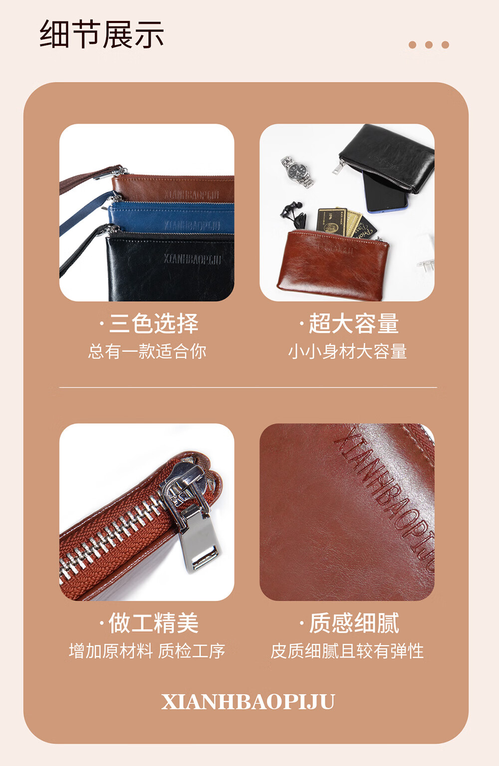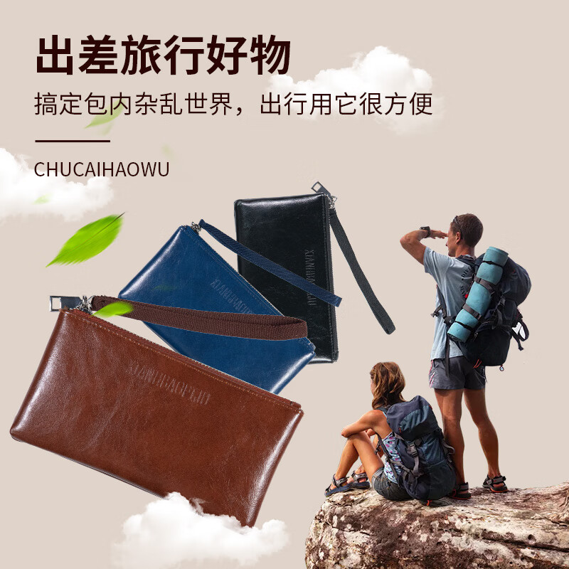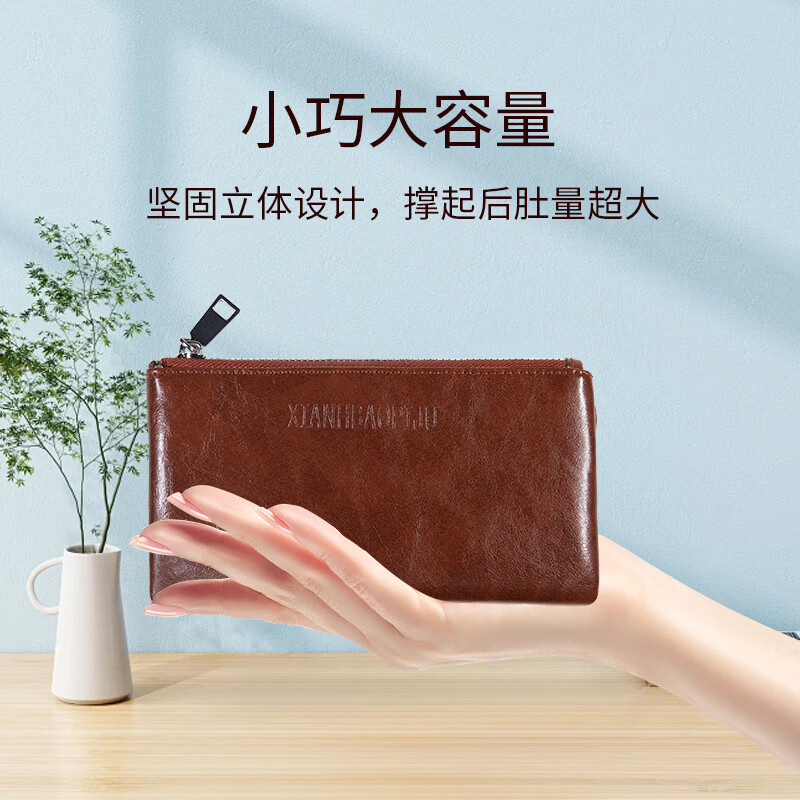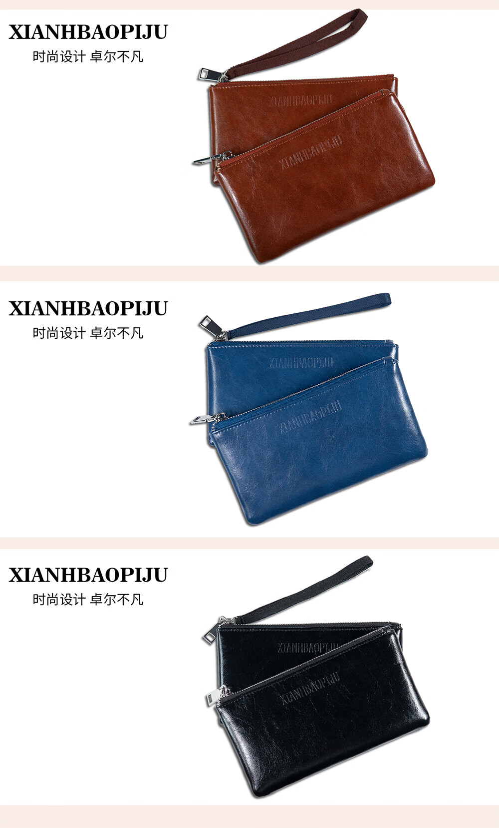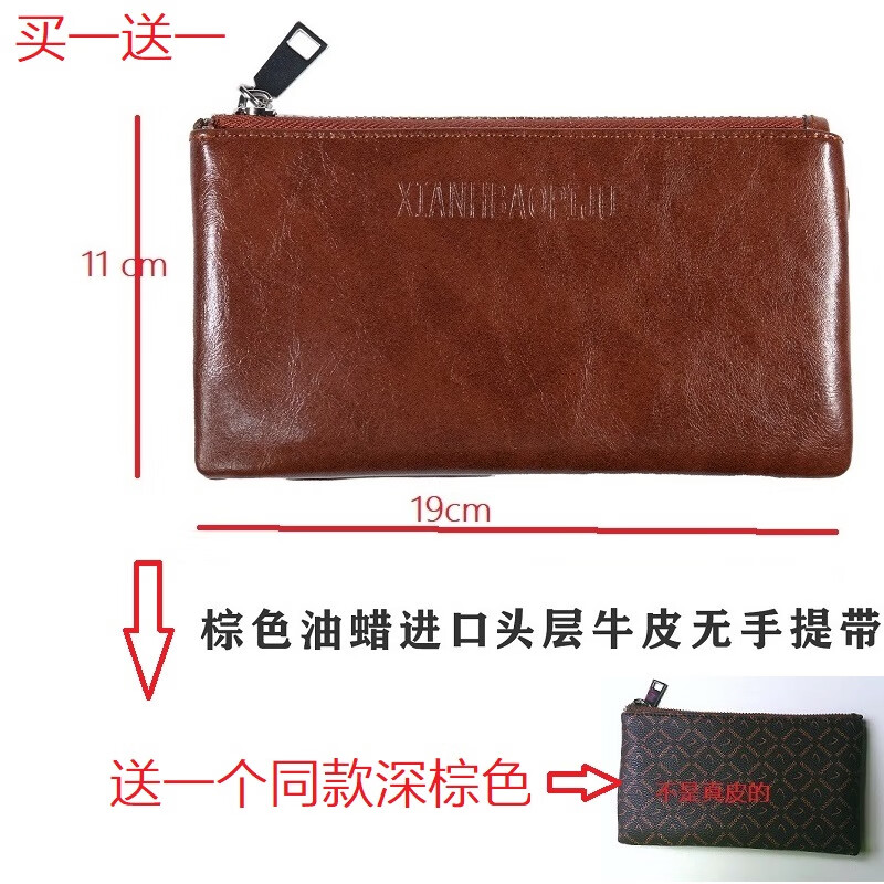 XIANHBAOPIJU02 imported first layer cowhide oil wax leather mobile phone bag clutch bag portable wallet large capacity handbag fashion cosmetic bag black oil wax imported first layer cowhide with hand strap