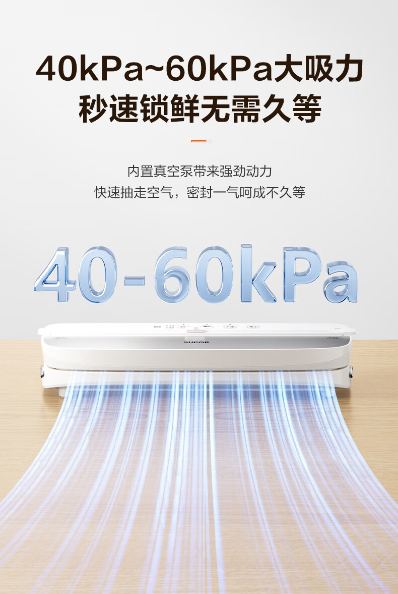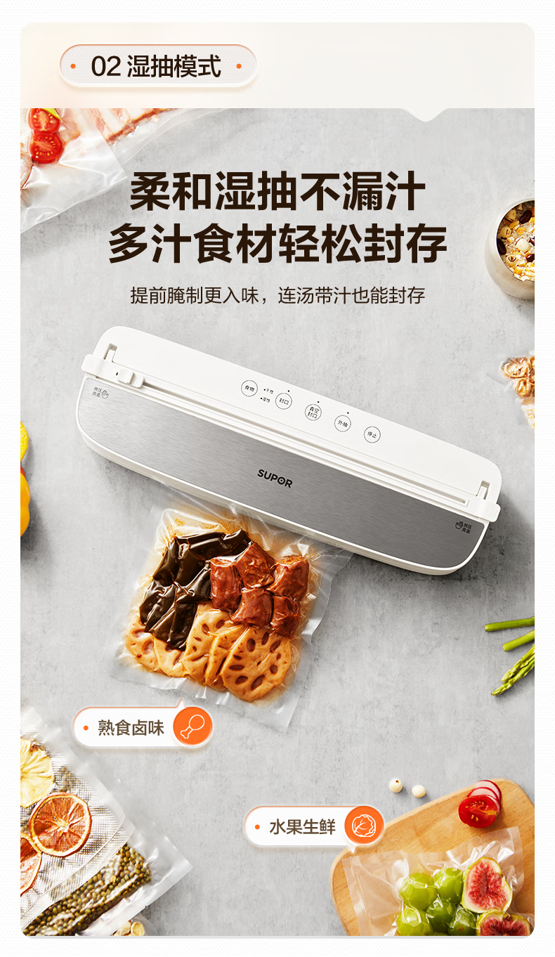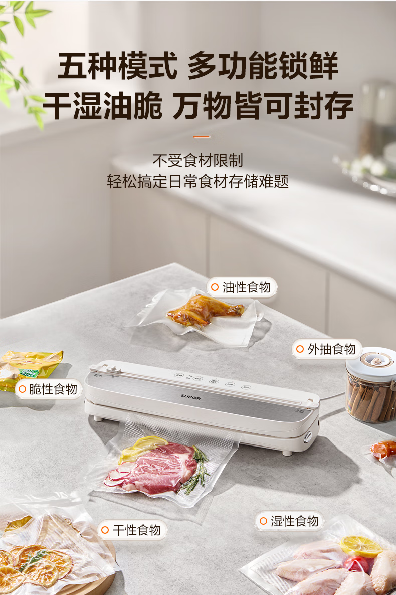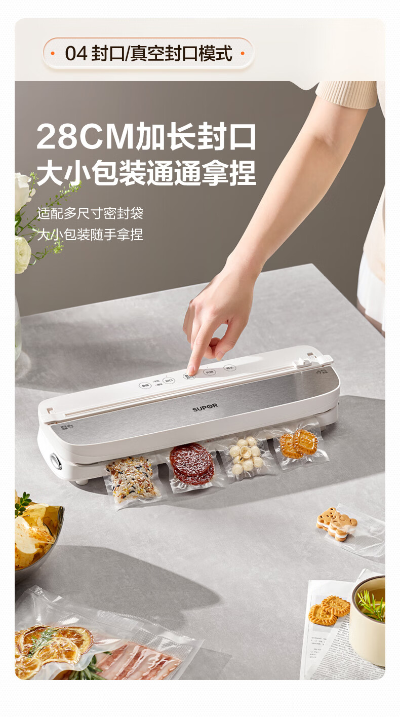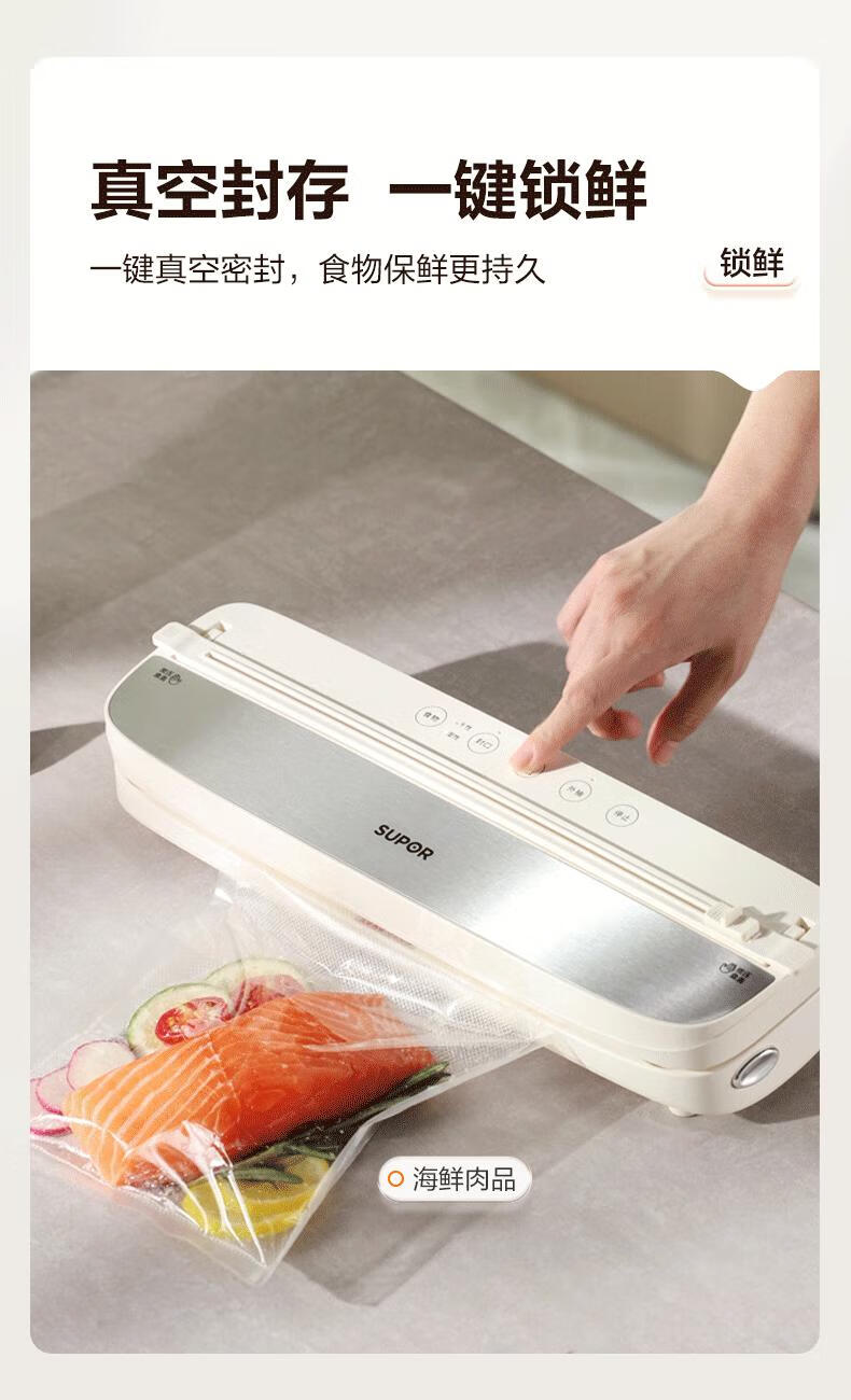 Supor Supor vacuum sealing machine fully automatic household small fresh food packaging sealing 2025 new plastic sealing machine SF001 knob + touch model + 100 pieces of vacuum bags
