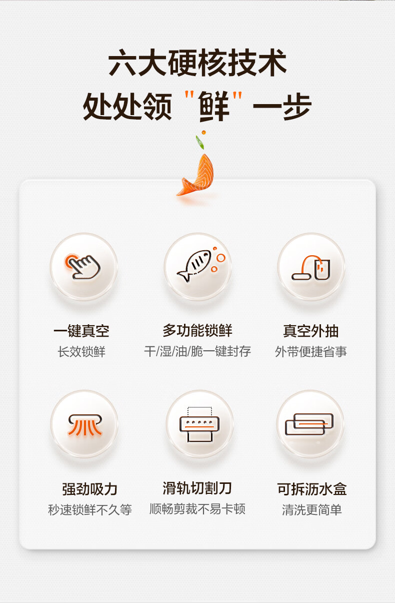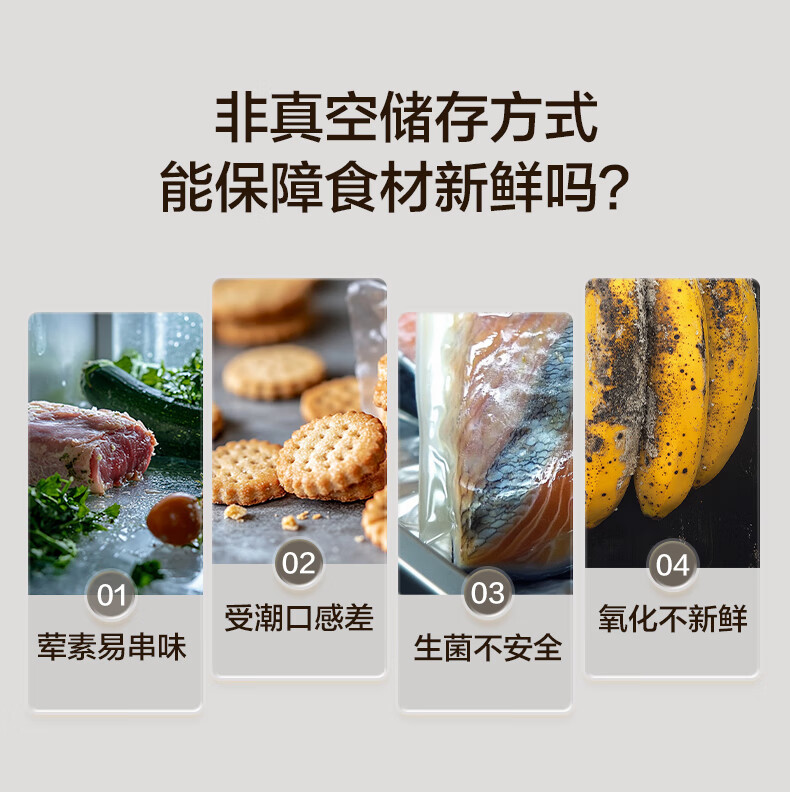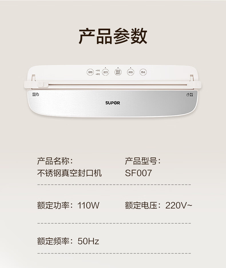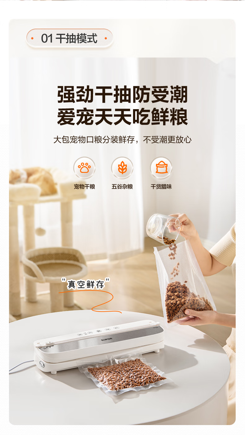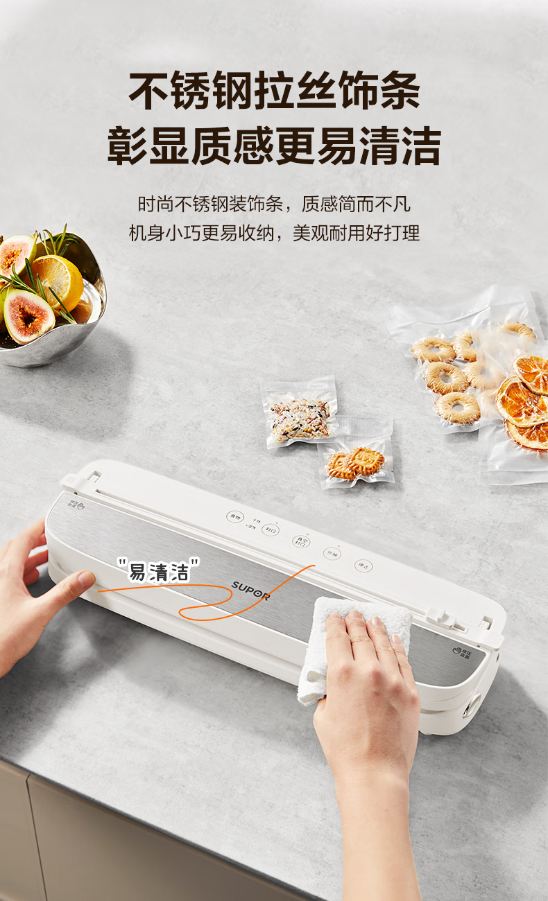 Supor Supor vacuum sealing machine fully automatic household small fresh food packaging sealing 2025 new plastic sealing machine SF001 knob + touch model + 100 pieces of vacuum bags