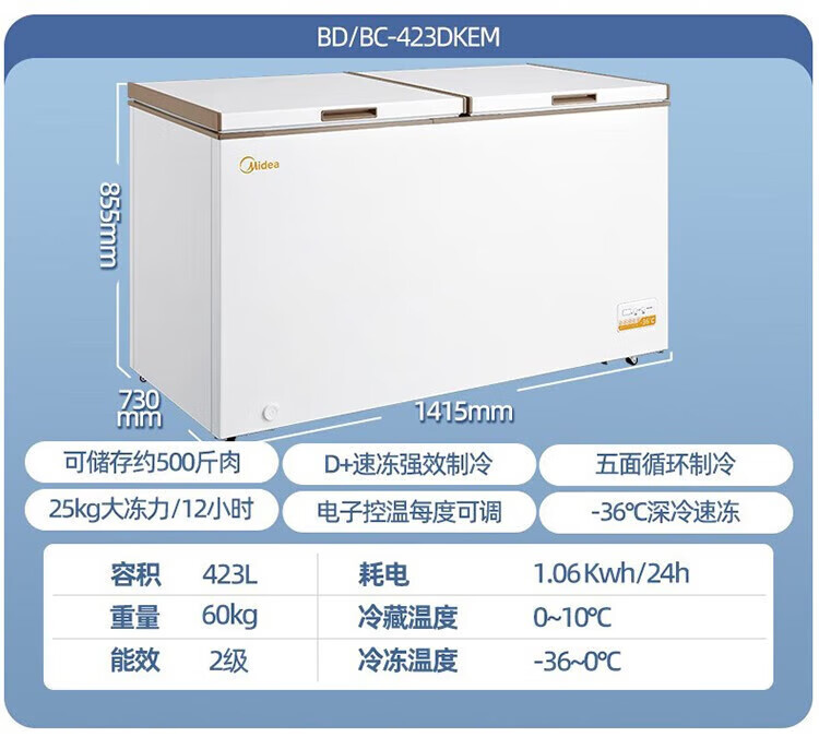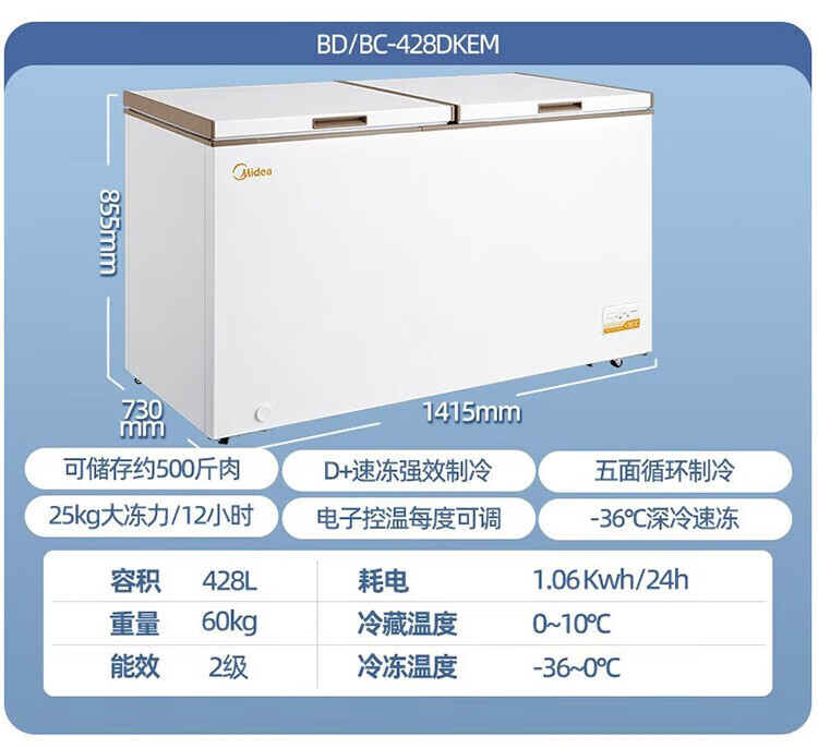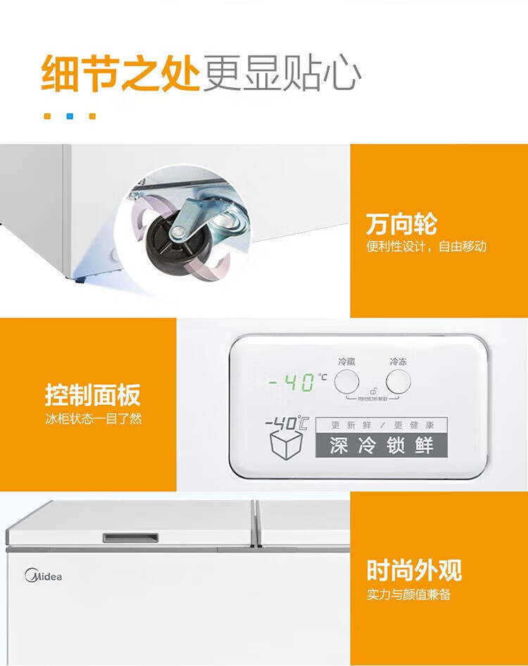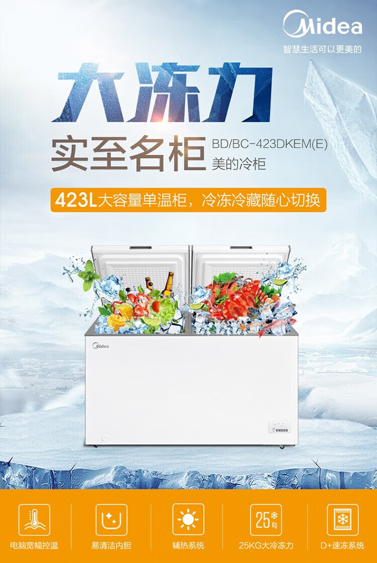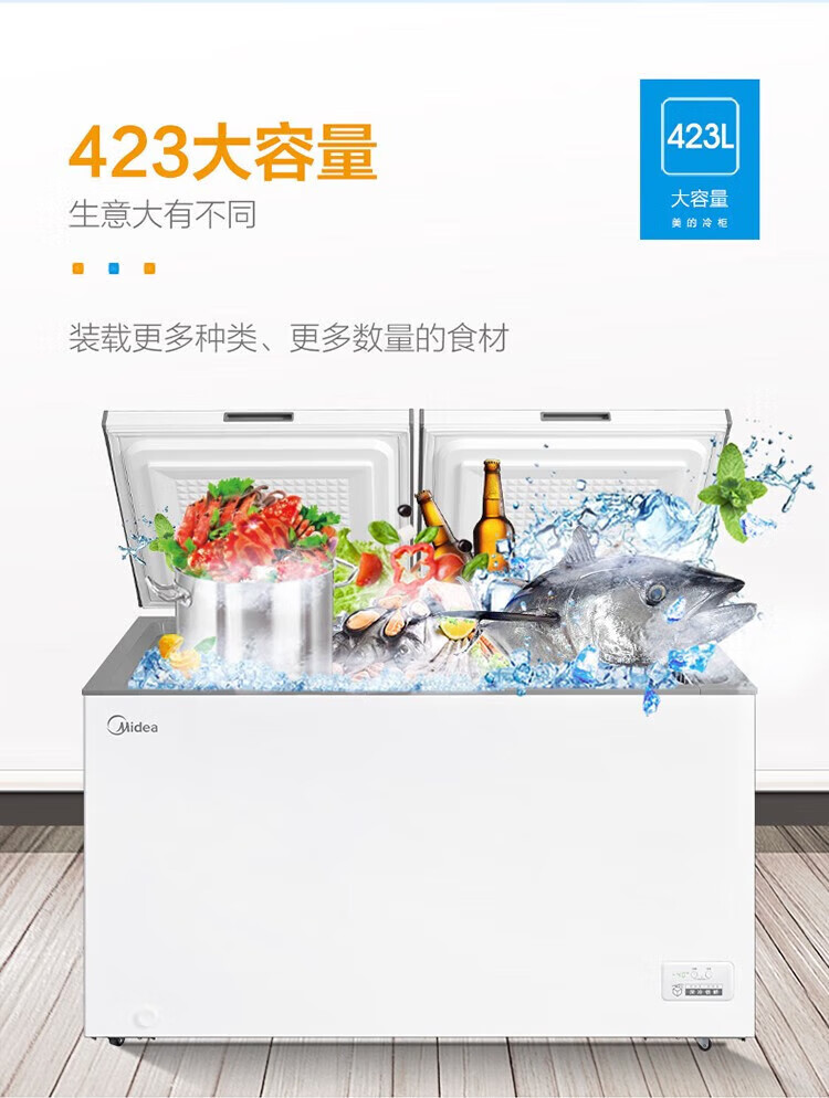 Midea top-opening large-capacity freezer deep-cooling quick-freezing and fresh-keeping energy-saving single-temperature refrigeration and freezing conversion freezer horizontal household BD/BC-301KM (E) randomly sent 300 301L